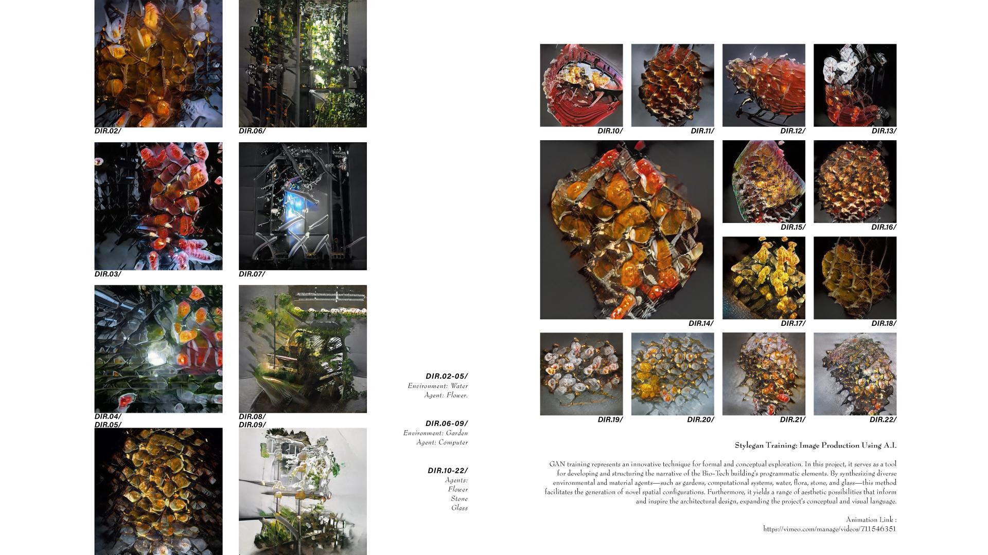 By 2069, AI regulates air, water, and light to sustain soil-less greenery throughout the building, dissolving boundaries between machine and ecology. Plants become integral façade components, replacing inert cladding with living systems and demonstrating a future where technology and nature are mutually supportive.