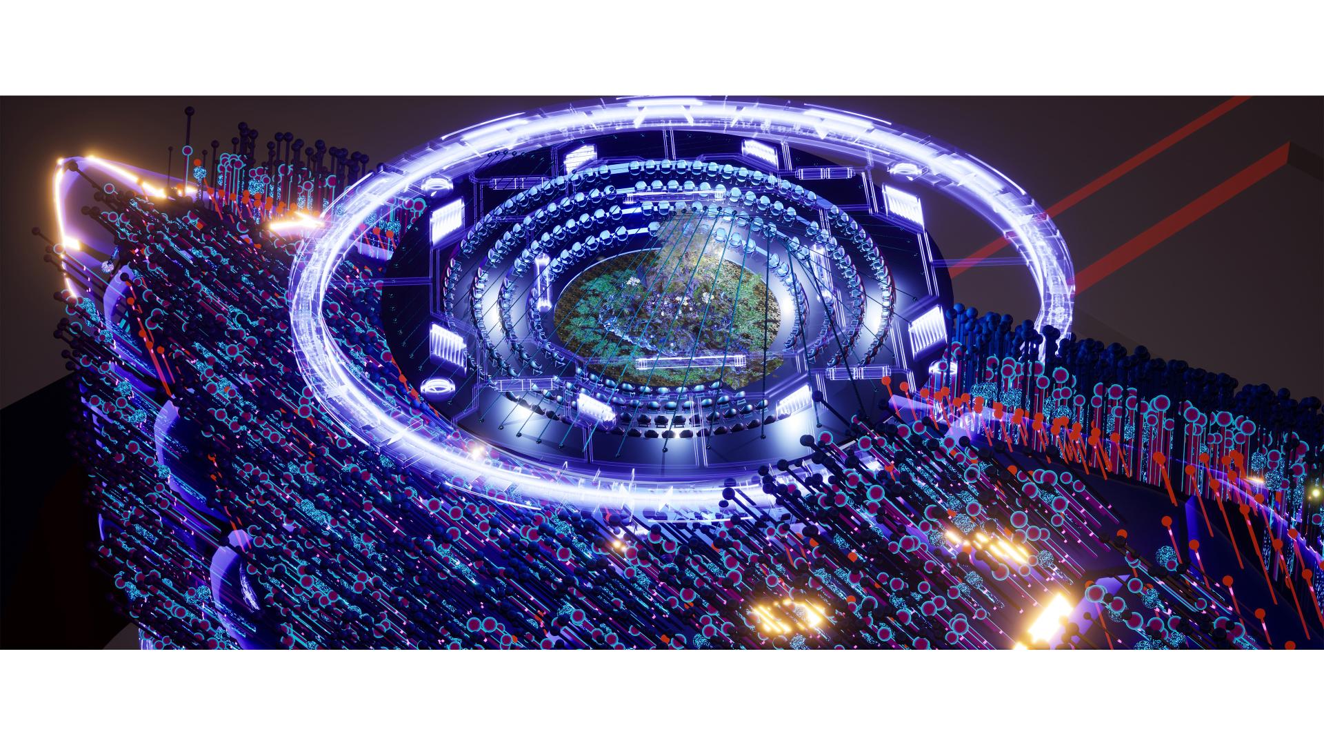 The project transforms data into architecture. Thousands of Bio-Module units wrap the façade, storing cultural and scientific knowledge—languages, ecosystems, and processes—while forming a protective double layer against harsh extraterrestrial conditions. Spherical vacuum chambers simulate weightlessness for everyday rituals such as walking, eating, and sleeping, preparing inhabitants for cosmic life.