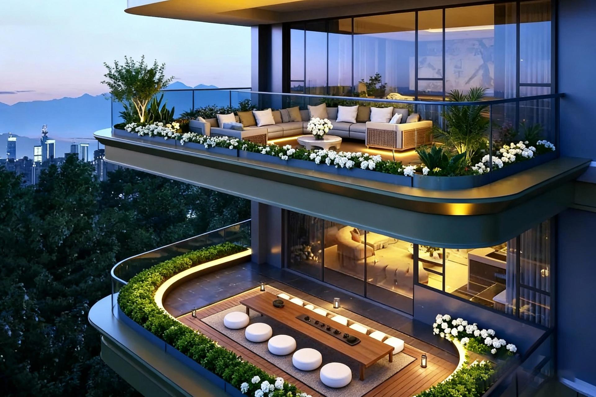 Each floor is equipped with open elevated balconies, replacing traditional enclosed designs. This not only improves the living experience but also adds three-dimensional depth to the facade—when viewed from a distance, the white aluminum railings and glass curtain walls together form a rhythmic "grille grid" pattern.