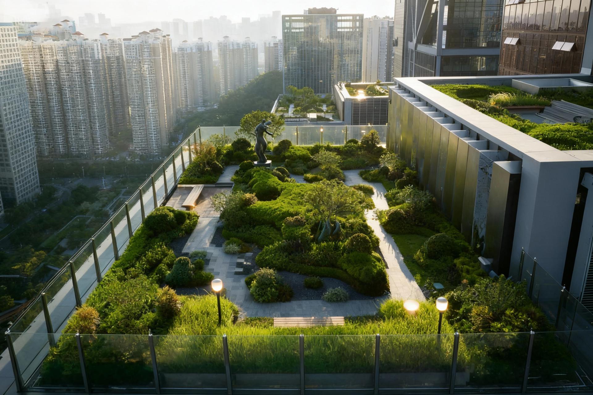 The entire site comprises three high-rise buildings (street-facing) and two groups of low-rise connected structures, presenting a typical "high-front, low-rear" layout: the street-facing high-rises fulfill an urban display function, while the rear low-rise buildings focus on fostering community atmosphere. The rooftop gardens reflect an ecological priority concept, meeting residents' desire to connect with nature and mitigating the sense of constraint often associated with high-density living.