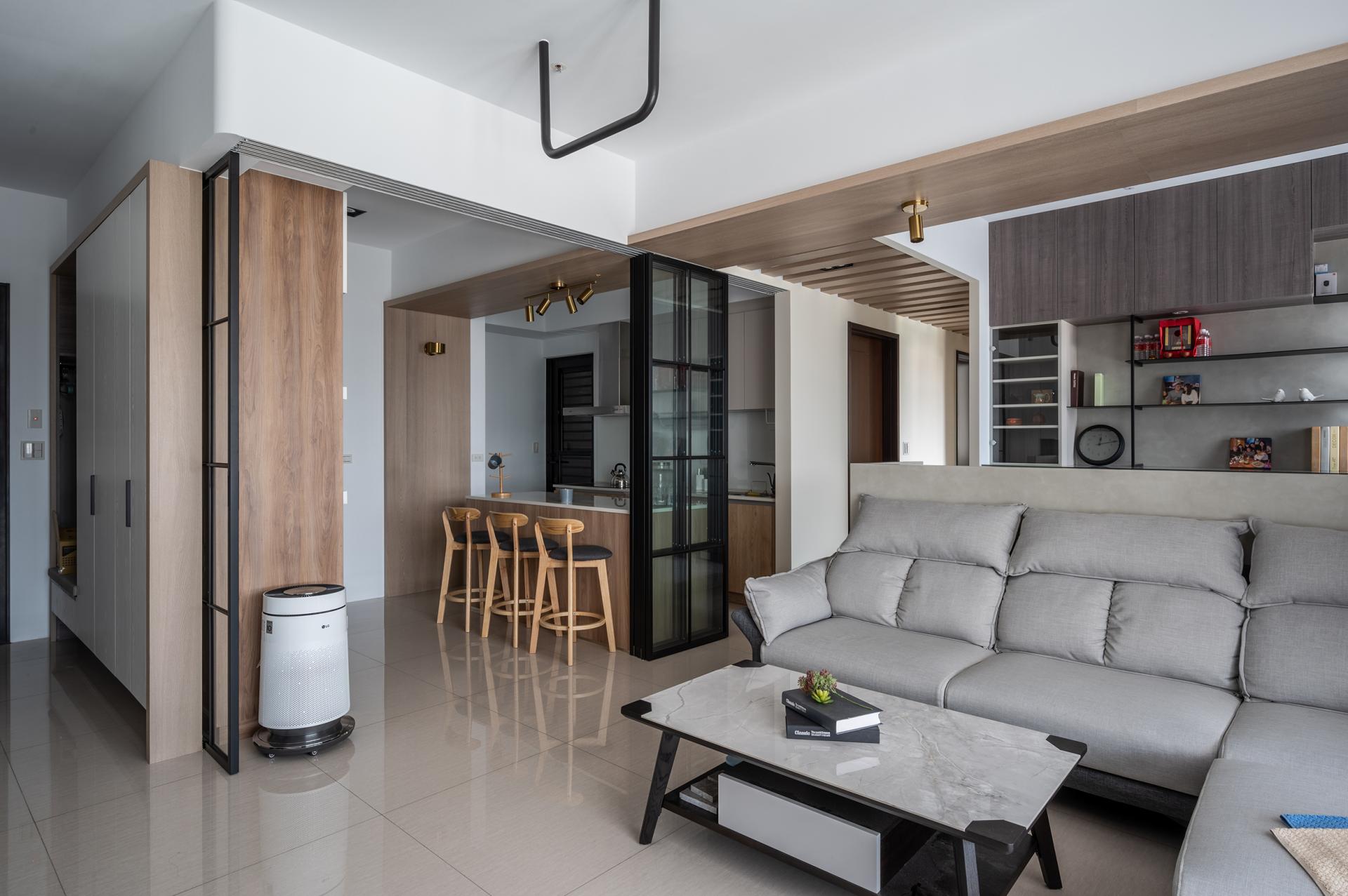Located on the eighth floor, the residence enjoys expansive river views. The 178.5 square meters home is planned as four rooms, a living room, and a dining room. The design adopts a modern style, responding to the homeowner’s lifestyle of hosting gatherings and exercising at home by integrating social interaction, relaxation, and physical activity within a unified living space.