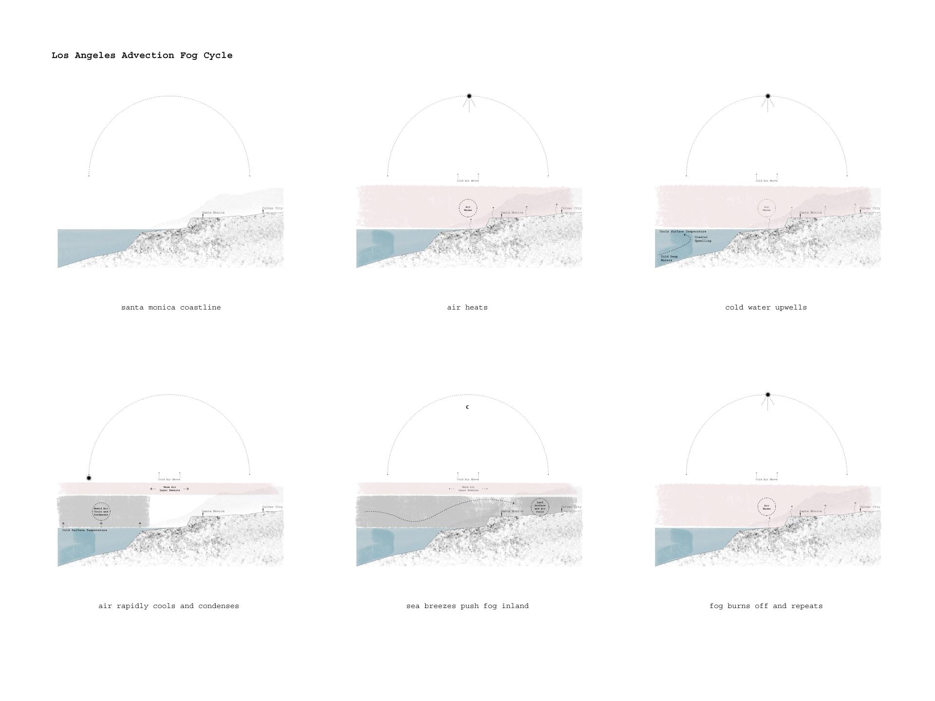 For millennia, coastal fog sustained the ecosystems of the Los Angeles basin, nourishing the vegetation and soils whose moisture fed natural springs where Indigenous communities gathered, long before the city buried its waterways beneath asphalt. Today, that fog still arrives consistently every summer during the very months when the city's water systems are most stressed. Atmospheric Springs asks a simple question: what if the city learned to harvest it?