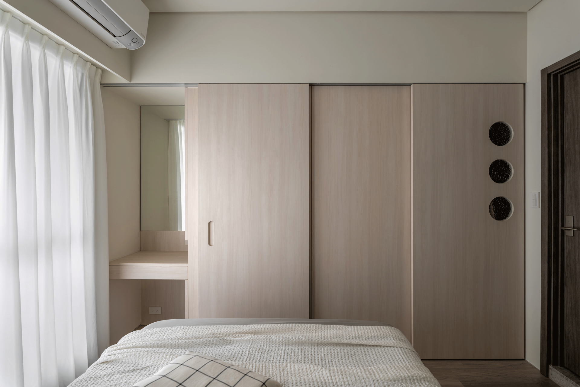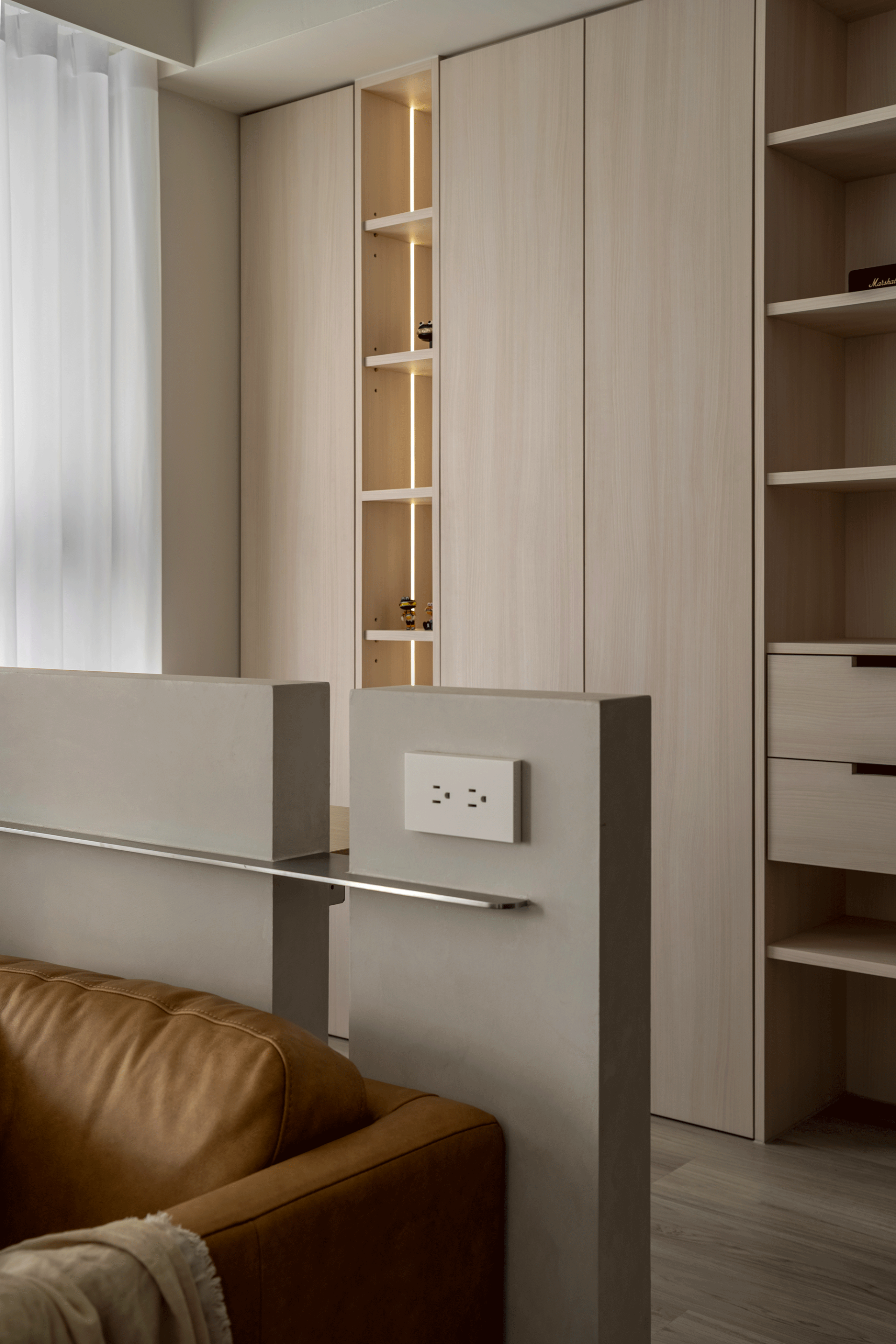 The project is a newly completed apartment. The homeowners favor Japanese minimalism and hoped for a home that naturally slows the rhythm of daily life, rather than a space driven by functions or formal expression.