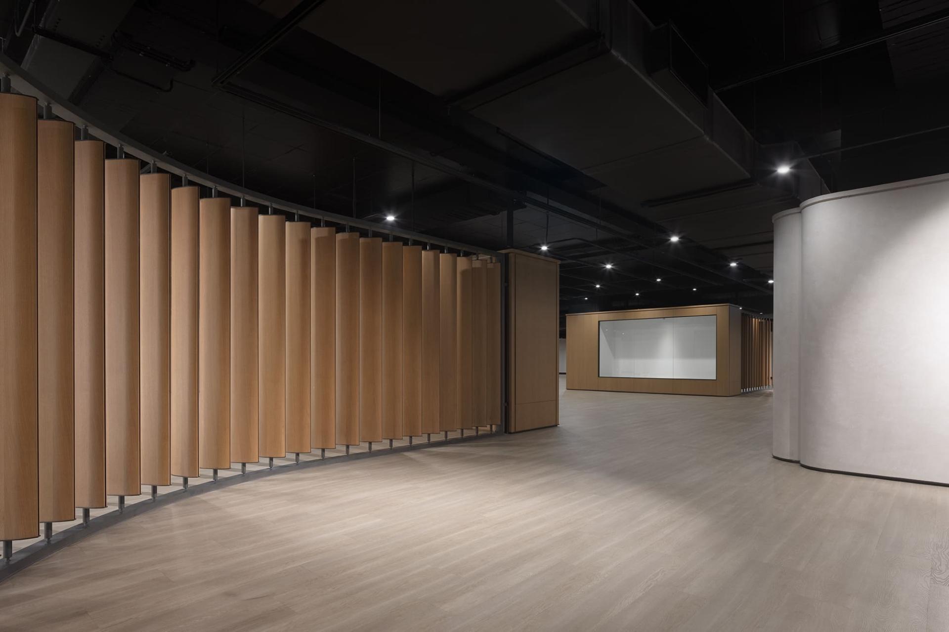 Transitioning to the second floor, one will notice that the exhibition environment adopts a neutral and restrained design vocabulary. Here, minimalist Chinese-style arches artfully frame spaces, delineating zones and guiding the viewer's journey. The backdrop, artfully composed of black, white, and wood tones, effectively minimizes distractions from any equipment, allowing the exhibits to take center stage.