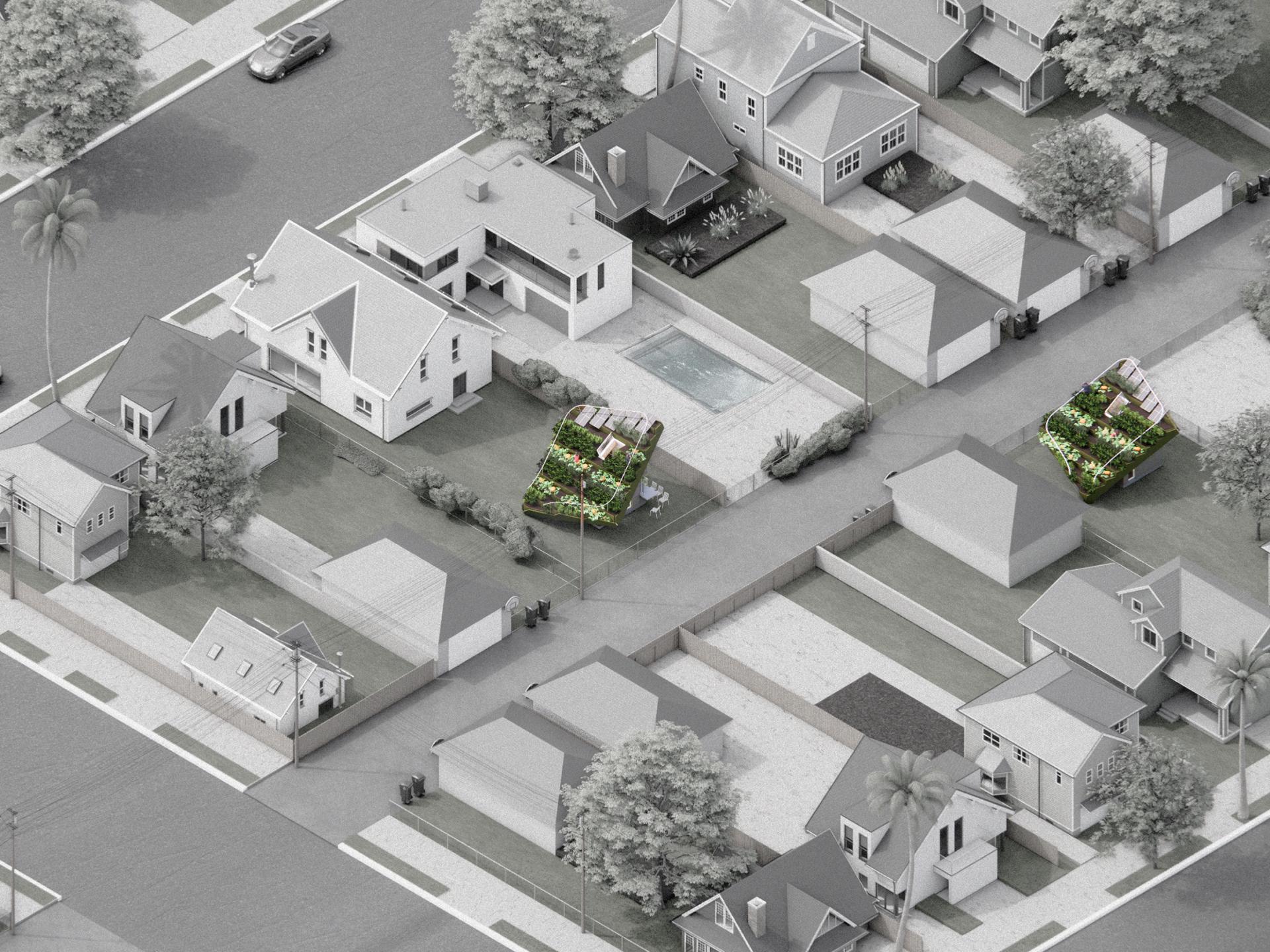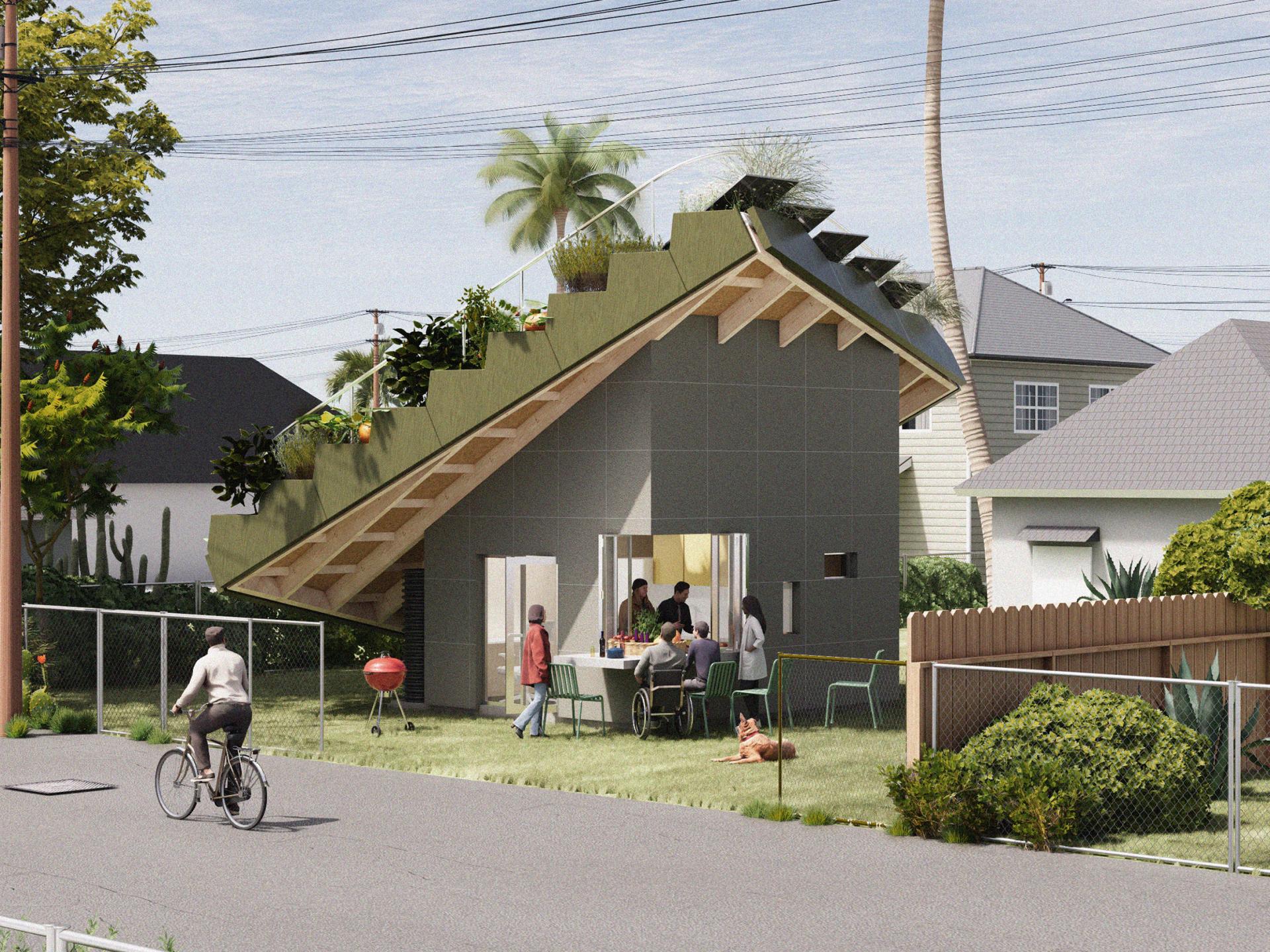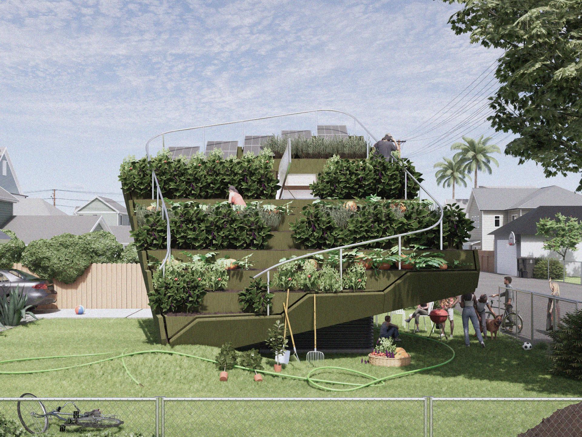 This modular microhome proposal reimagines Los Angeles’ single-family backyard as a site for both habitation and cultivation. Responding to the city’s pressing housing shortage and food accessibility issues, the design integrates architecture and landscape to create a microhome that simultaneously functions as a microfarm.