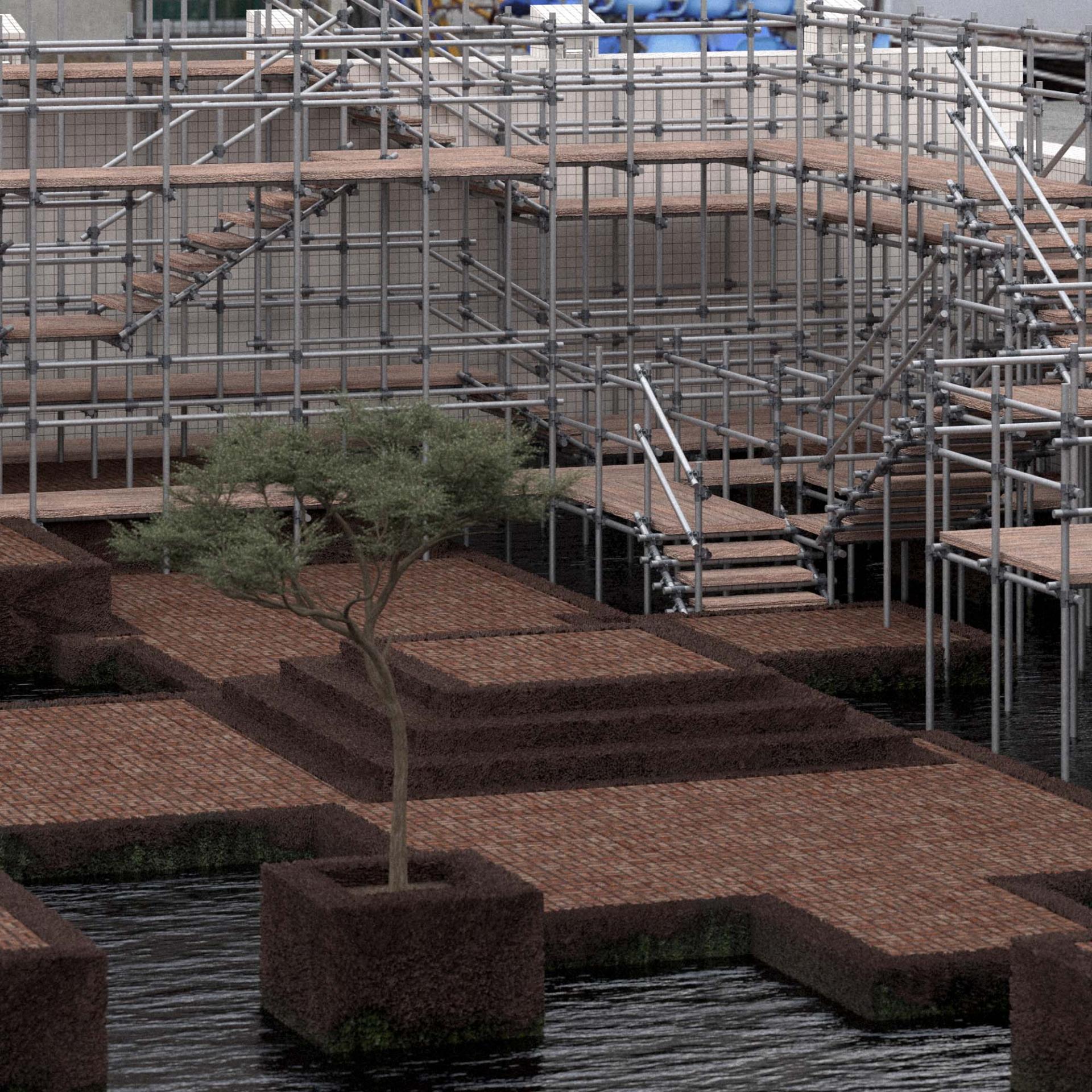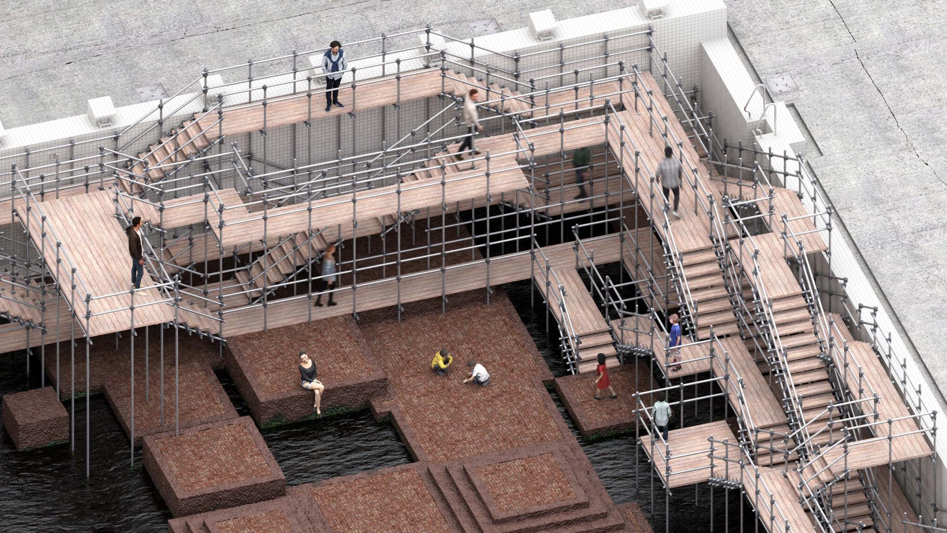 In this project, we had the opportunity to reopen the pool as a public space. The design is not meant to criticize the loss of urban memory, but to start a discussion. While keeping the original pool mostly unchanged, we placed a series of maze around it. At the same time, we designed a set of water features at the bottom of the pool.