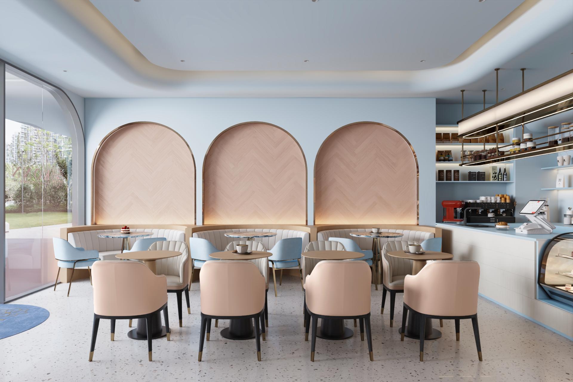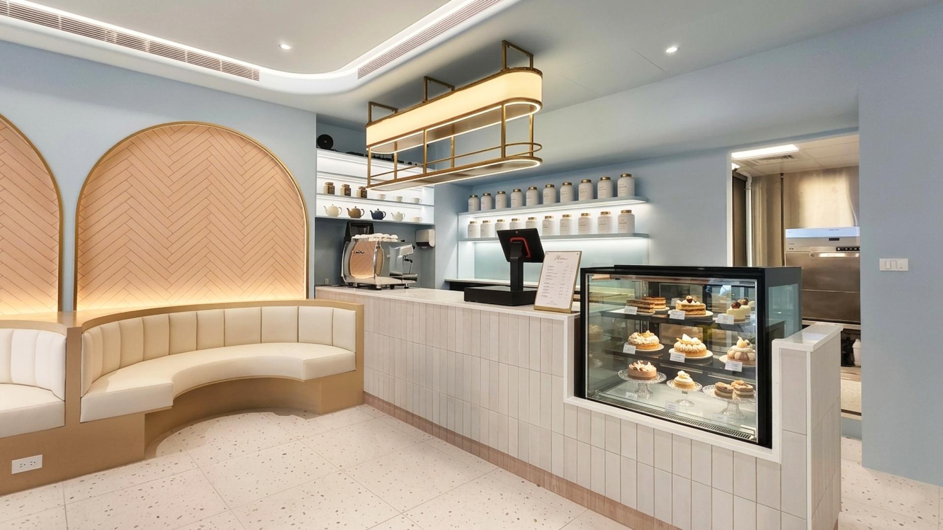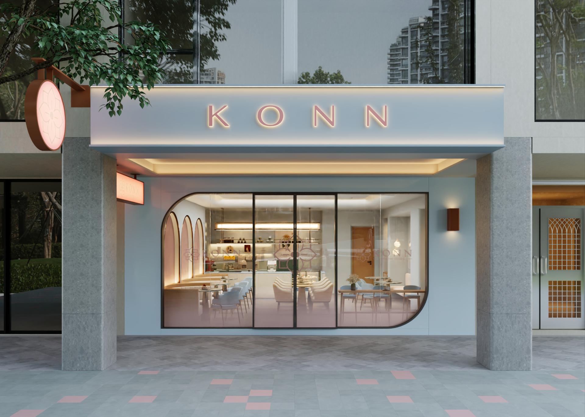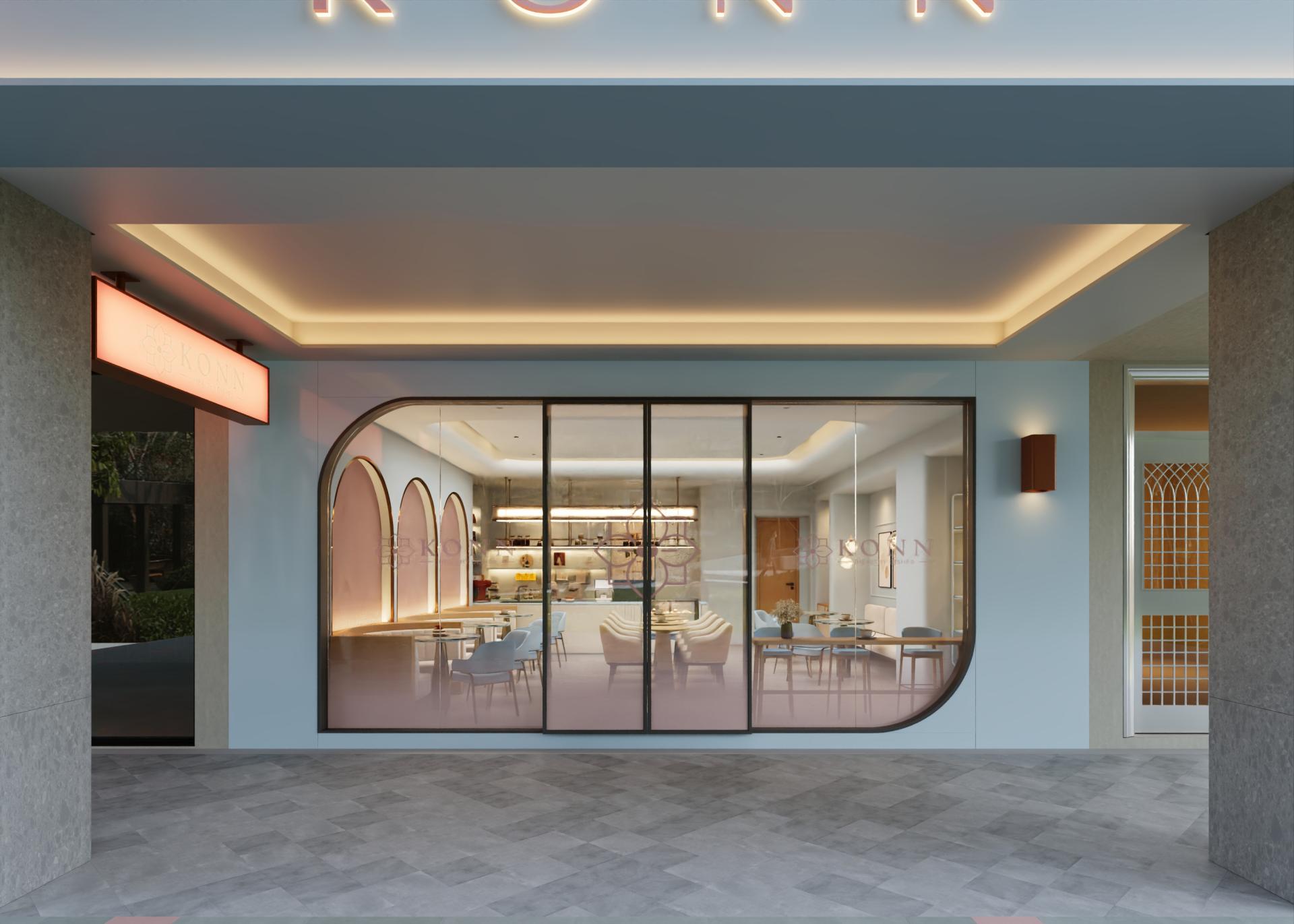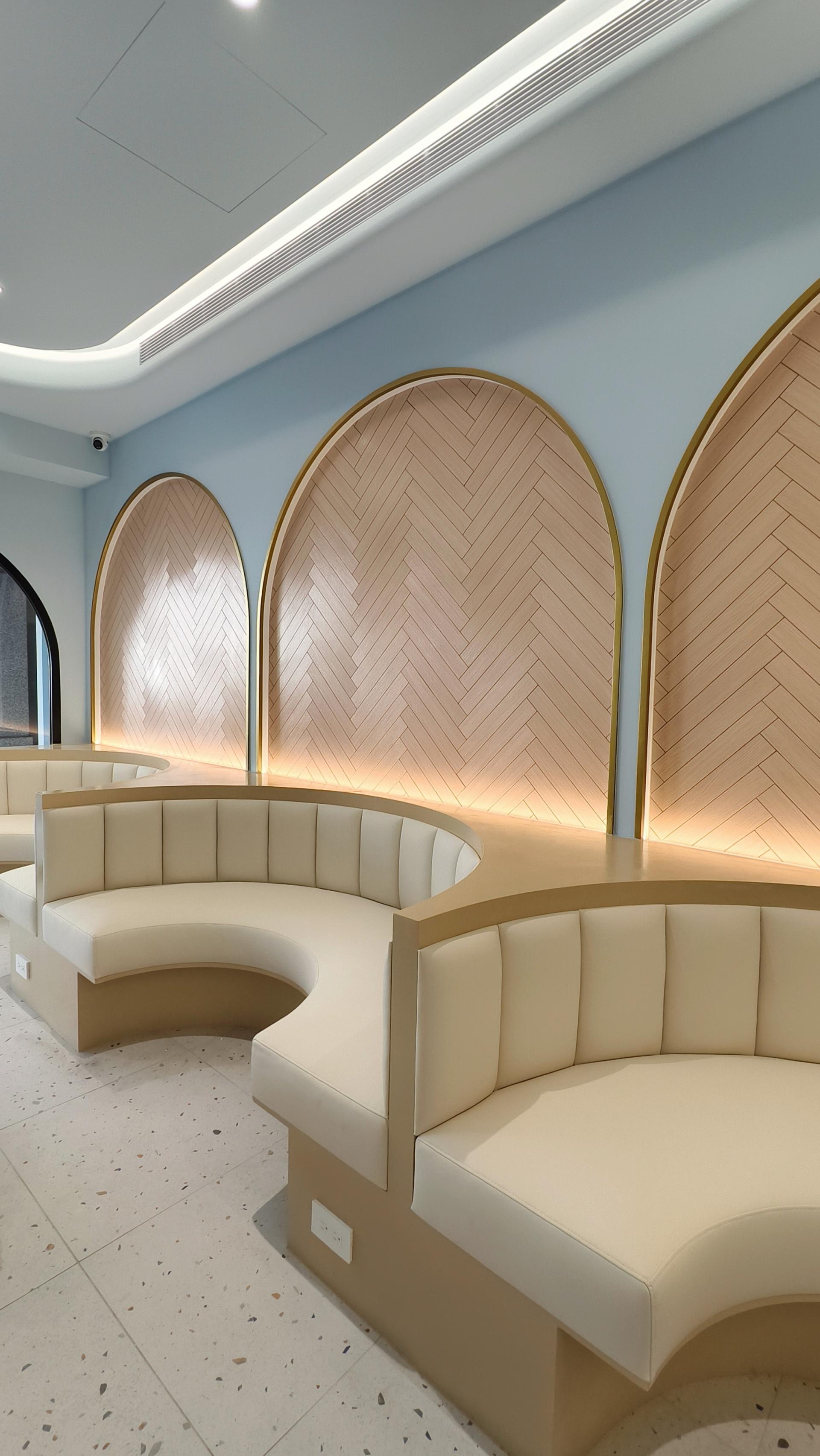 The sofa area features an arched backdrop as a visual focal point, combining modular detailing with layered lighting to create a dramatic yet refined spatial scene. Framed by an underlying “image-driven aesthetic,” every element—from spatial composition to food presentation—is designed to be visually engaging and shareable. The entrance acts as a transitional threshold, defined by neon lighting and softened geometries, guiding users from the intensity of the city into a calmer, more balanced state.