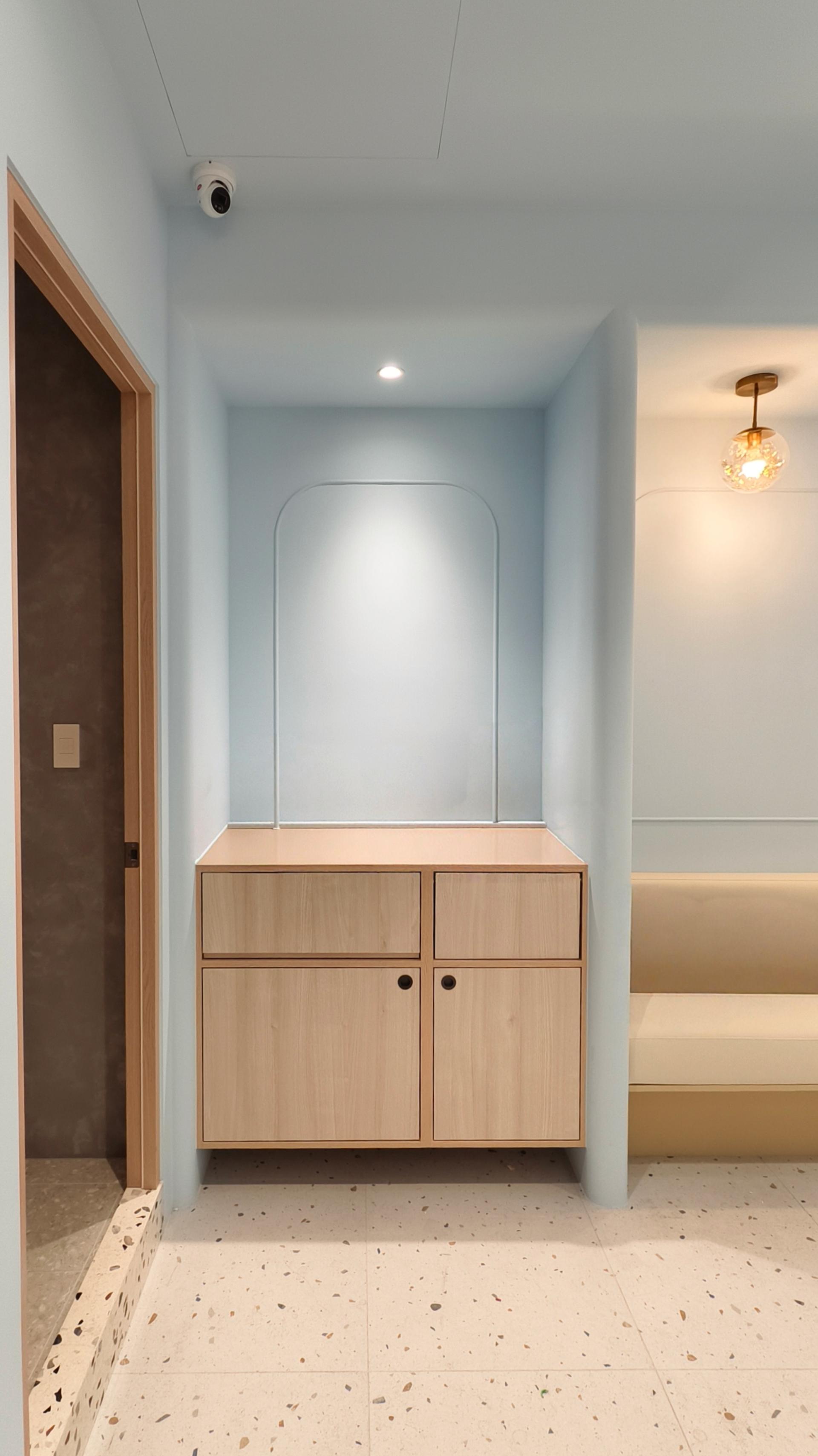 Spatially, the design is guided by the themes of “lightness” and “flow,” translating the abstract idea of wellness into a tangible spatial experience. A soft blue palette forms the primary visual language, evoking clarity and purity, while accents of soft orange introduce warmth, vitality, and emotional balance. Color is not merely decorative, but serves as a subtle medium for shaping users’ perception and mood within the space.