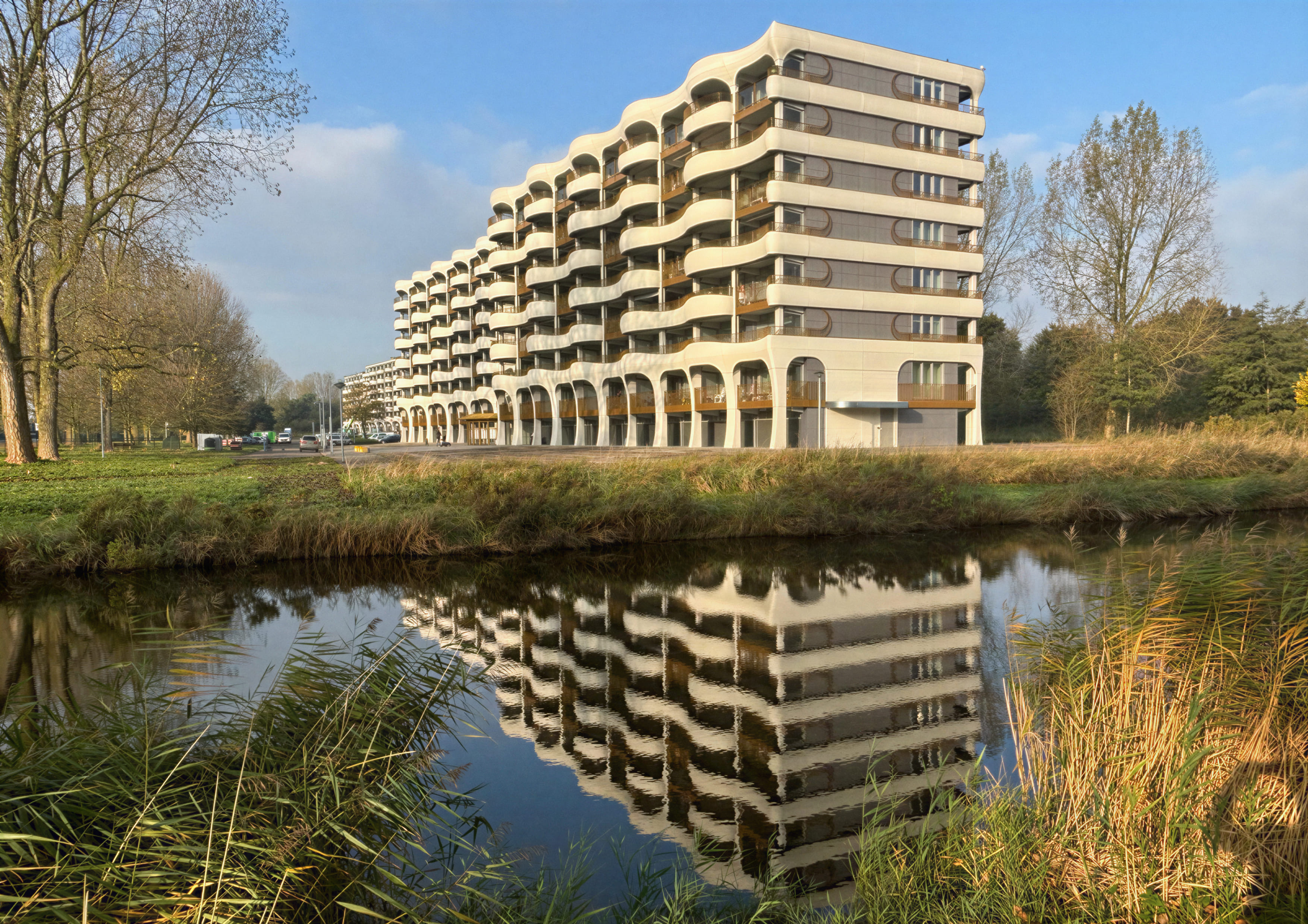 In Den Helder, in the north of the Netherlands, an unprecedented renovation project has successfully transformed two monotonous 1970s apartment buildings into striking, contemporary structures. Comprising 154 units, these gallery flats went through a spectacular metamorphosis without relocating the residents. The core of the transformation was the pioneering use of 3D concrete printing, which allowed the project team to extend the buildings' lifespan by at least fifty years while simultaneously upgrading their sustainability, modern comfort, and aesthetic appeal.