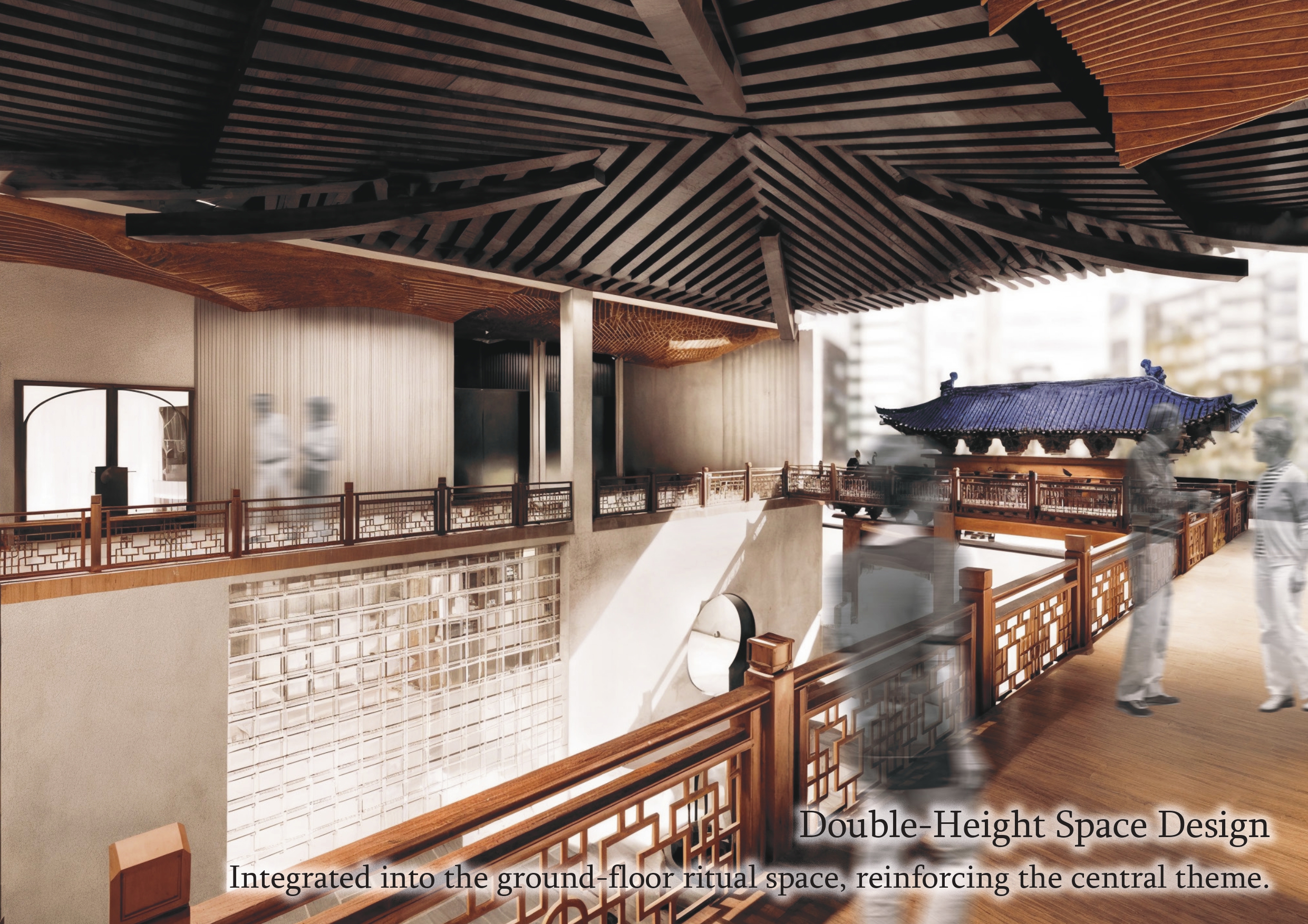 The core of the design is a system of "Circular Paths" that weave together ritual, memory, and daily life. By integrating spatial zoning, the project addresses the complex challenge of maintaining the privacy of bereavement while inviting the public into a shared cultural experience. The architectural language utilizes "Double-Height Spaces" and "Circular Circulation" to create visual and spatial permeability, ensuring the site feels approachable rather than isolated.