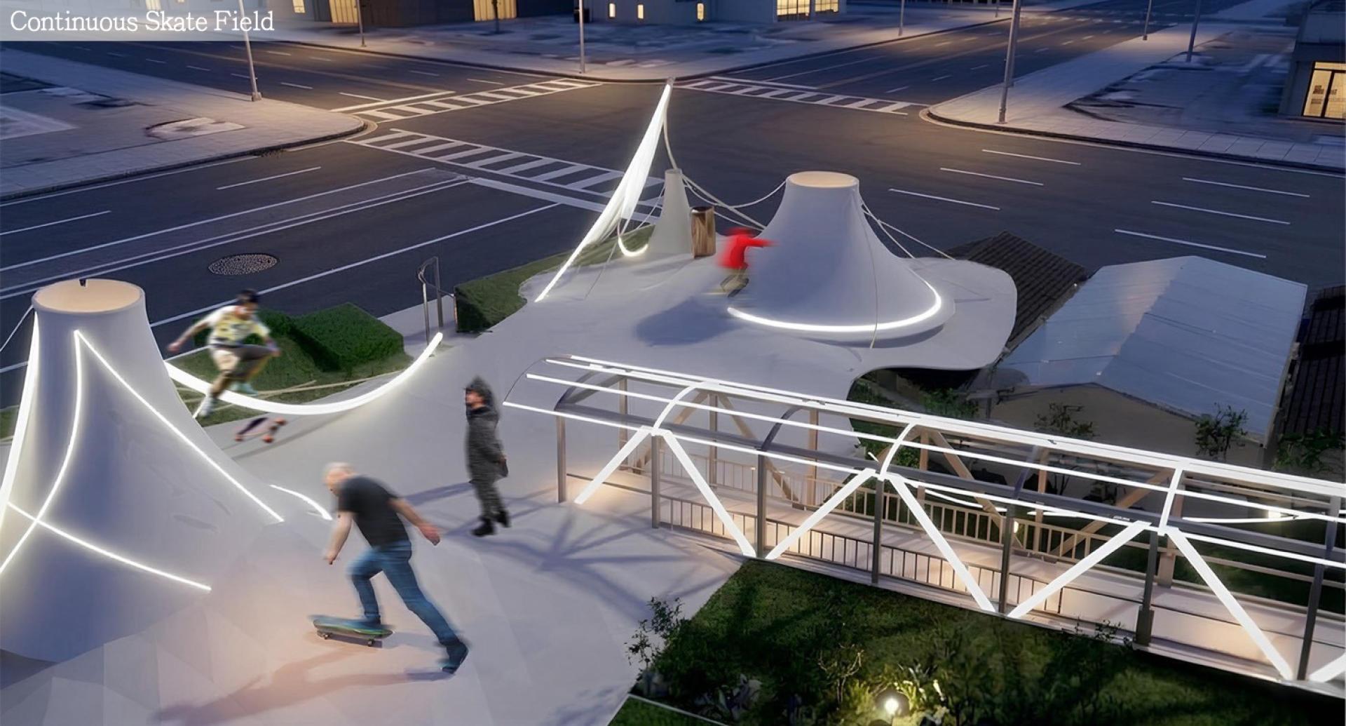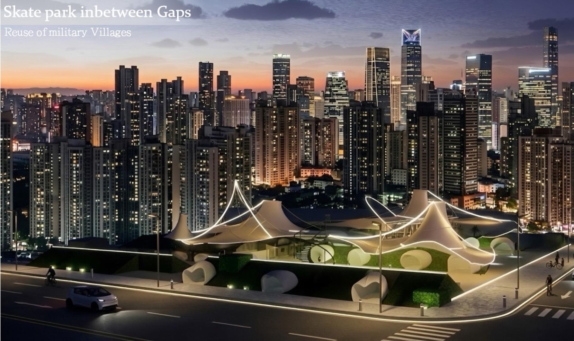 In the relentless expansion of Taipei’s urban core, the traditional military village has shifted from a place of residence to a landmark of memory. Yet, these spaces often remain relics, struggling to resonate with the modern lifestyles of the younger generation. 44 South Village, nestled within the city's high-intensity commercial district, stands as a vibrant paradox: a fragment of history suspended against a backdrop of modern skyscrapers, representing a unique urban landscape where the past and the future coexist in silent tension. This project serves as a pioneering strategic model for heritage regeneration, urban public space planning, and cultural activation. By utilizing Sports Culture as a catalyst for historical intervention, it establishes a replicable framework for the adaptive reuse of military dependents' villages and the revitalization of urban cultural identity. Leveraging the distinctive sloping topography and architectural fabric of the site, the design introduces a high-contrast hybrid program: a professional skateboarding arena integrated with an immersive private cinema. This synergy creates a unique urban sanctuary where Movement and Stillness coexist, transforming a static historical site into a vibrant social hub. The design logic is defined by three fundamental dualities. First, Temporal Contrast: a fluid skateboarding trajectory weaves through the heritage buildings, facilitating a seamless transition between modern vitality and historical memory. Second, Spatial Contrast: the outdoor skate park embodies motion and energy, while the indoor private cinemas offer stillness and a slow-lived rhythm. Third, Experiential Contrast: externally, the space serves as a platform for physical challenge and social expression; internally, it provides a sanctuary for immersive contemplation and emotional depth. Our mission is to bridge the functional gap between historical preservation and the daily lives of contemporary youth. By weaving the fluid energy of subculture into the preserved environment, the design fosters a new cross-generational dialogue ensuring that heritage is a living participant in modern urban life. It is a landscape where history meets the pulse of modern leisure. The unique topographical slope acts as a bridge for this cultural fusion, inviting the public to engage with architectural history in an active, sensory-driven way. This strategy revitalizes the collective memory.
