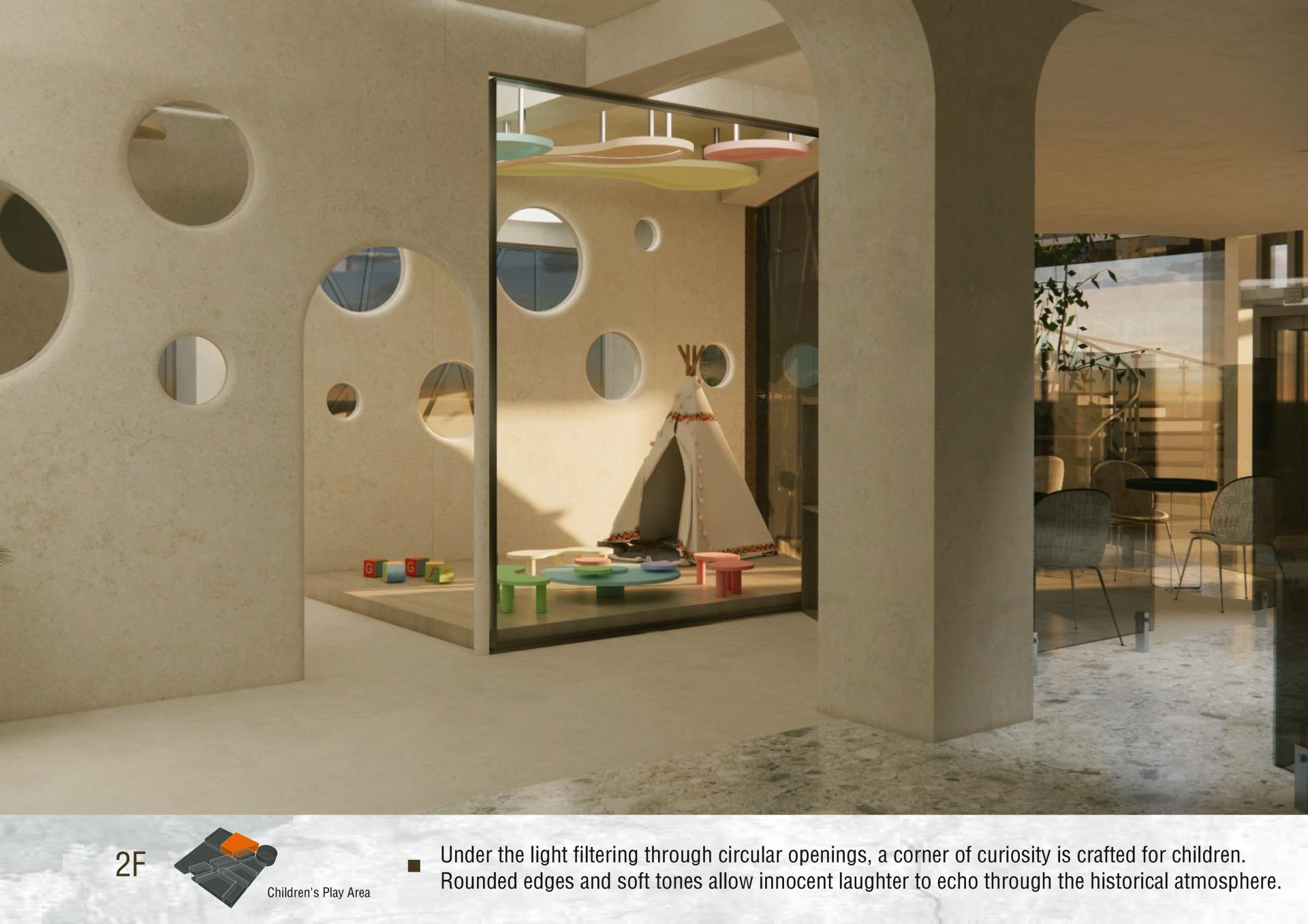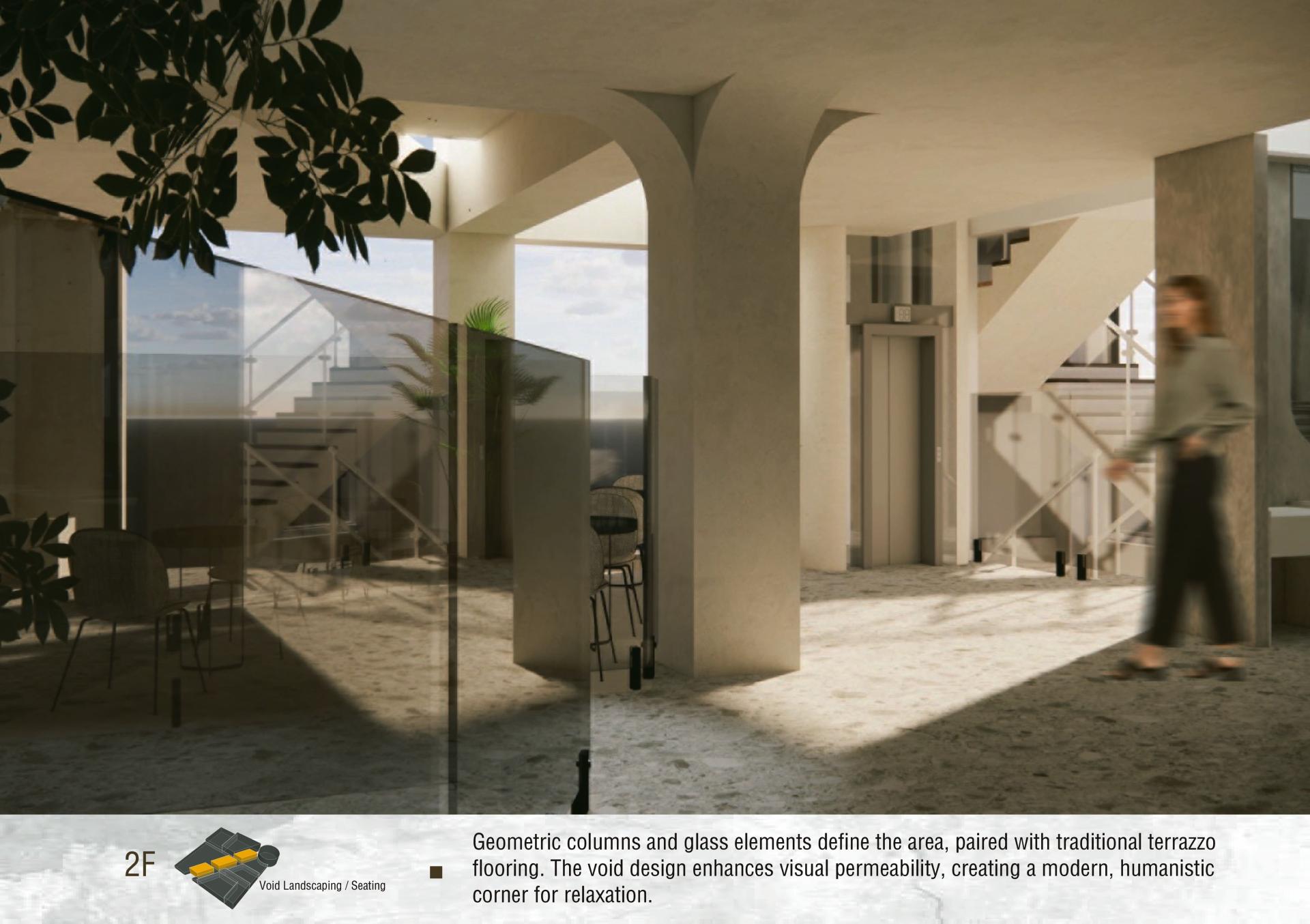 In an era of rapid technological advancement and fading traditions, this project seeks to bridge the cultural gap by reimagining local heritage through modern aesthetics. The core concept lies in a profound dialogue between the "new" and the "old," translating nostalgic elements into a minimalist spatial language. By utilizing traditional terrazzo flooring paired with geometric columns, the design constructs a field that is both contemporary and imbued with humanistic warmth.