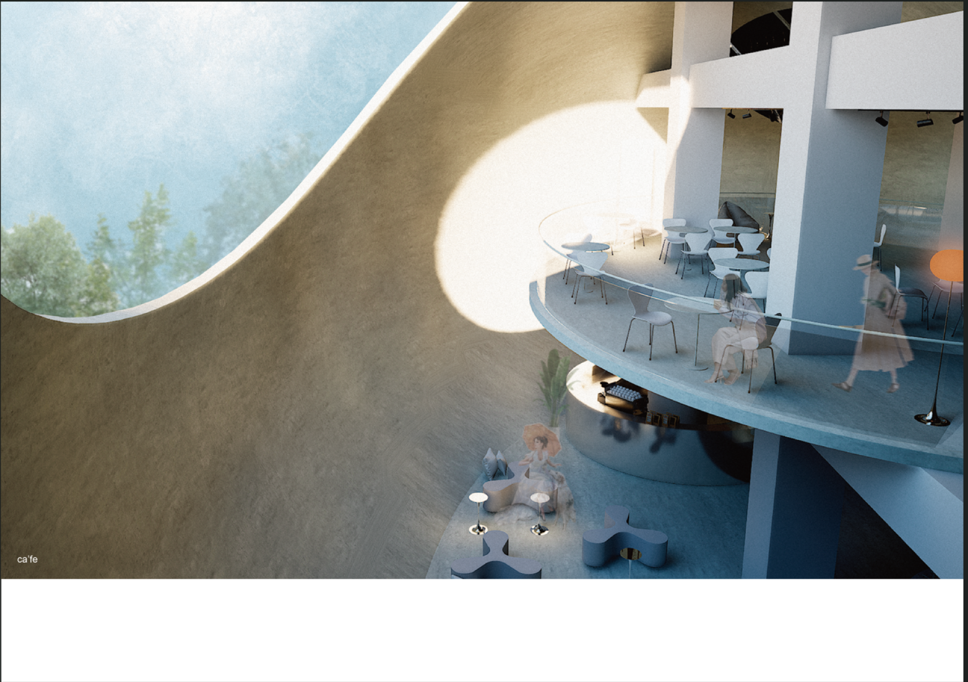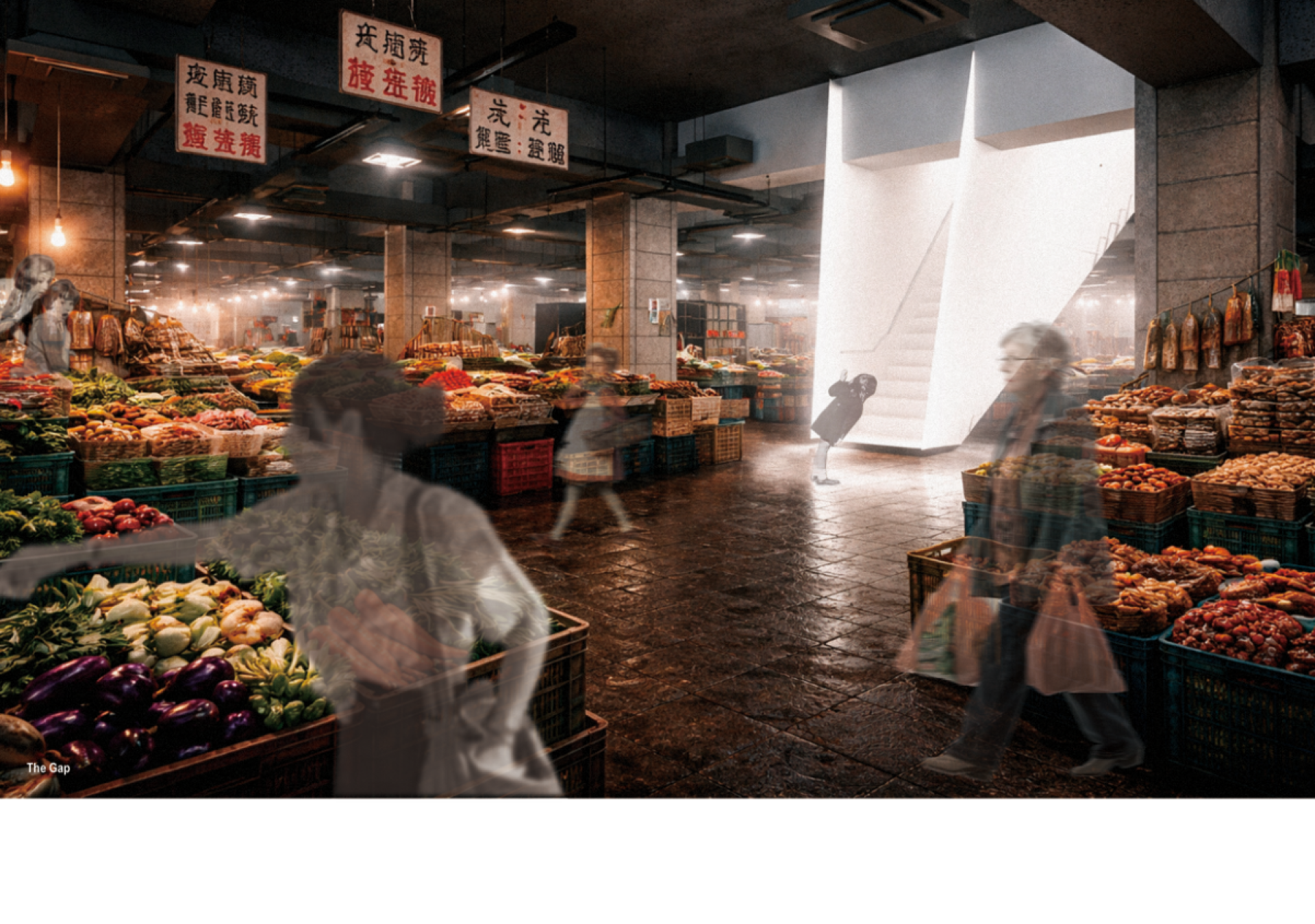 From sunrise to sunset, the city repeats its rhythm within a continuous 24-hour cycle. Street vendors calling out, footsteps passing by, brief conversations between strangers—these fragments form the everyday life of the city. Located in the Gongguan district of Taipei, the site sits within a building long occupied by a traditional market. The first and second floors are filled with stalls, narrow aisles, and dense flows of people. Sounds, smells, and movements overlap, creating a vibrant yet overwhelming urban routine. The Gap begins by carving a narrow opening within this ordinary setting. Emerging directly from the market, a thin spatial crack invites people to step away from the noise of daily life. As one moves deeper inside, the atmosphere gradually shifts. The chaotic energy of the market fades, replaced by a growing sense of calm. White spaces unfold like a quiet flood, dissolving the presence of the outside world. Within this sequence, visitors move through a series of spaces— a staircase carved like a slit, a café, exhibition rooms, a gallery, and a reading space. Each level further distances the visitor from the density of the market below. At the end of the journey lies a room with nothing inside. No objects. No commerce. No purpose. Only silence. Within the most crowded part of the city, The Gap creates a moment of pause— a brief escape from normal life.