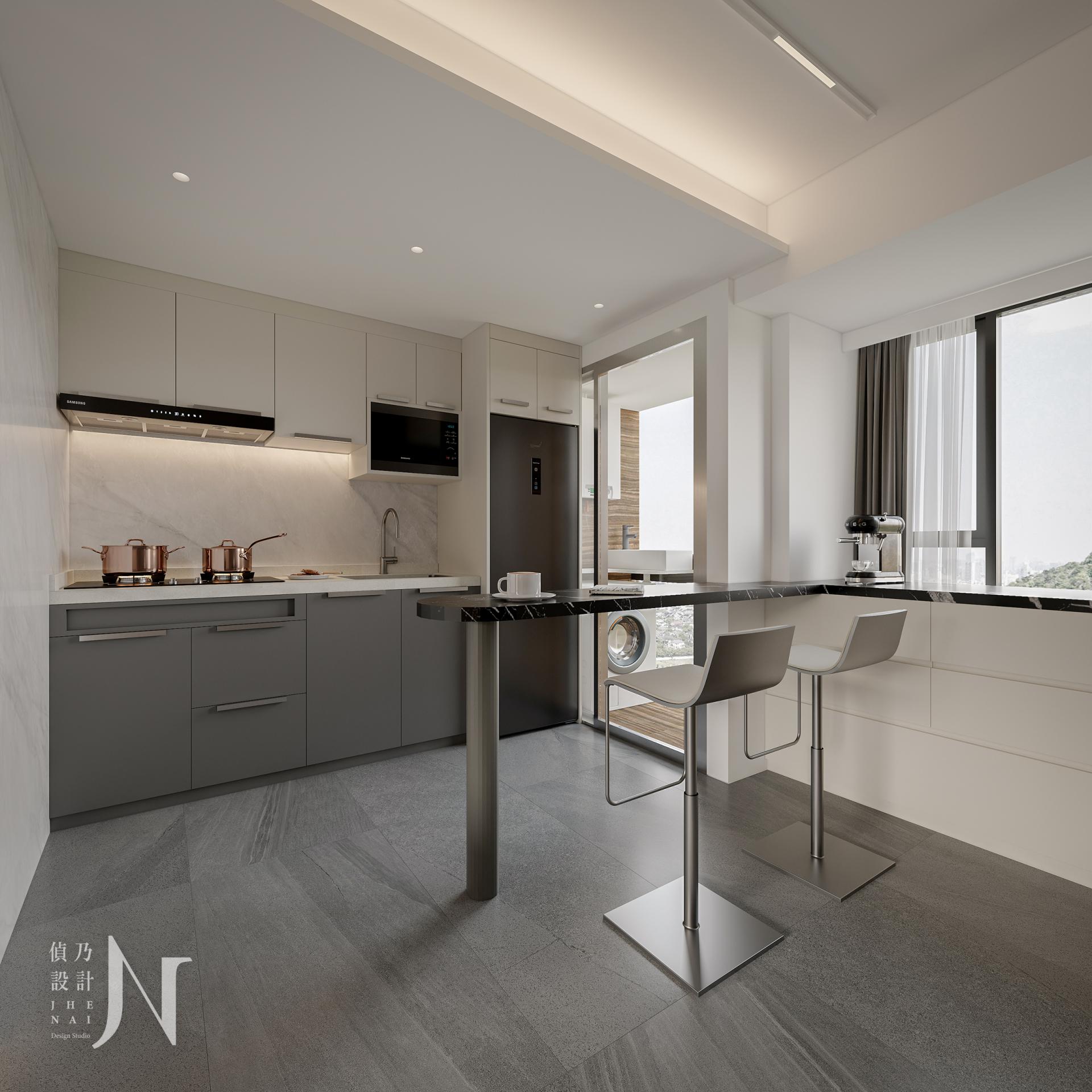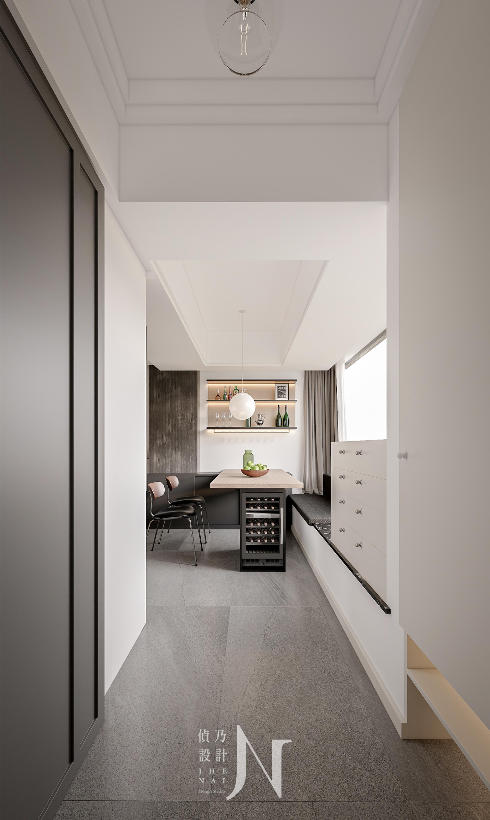 By removing the original kitchen partition wall, we opened up the living room layout—welcoming light and air to flow freely through the space. By concatenating the living room, dining area, mini bar, and kitchen, the space formed an open yet layered spatial rhythm.