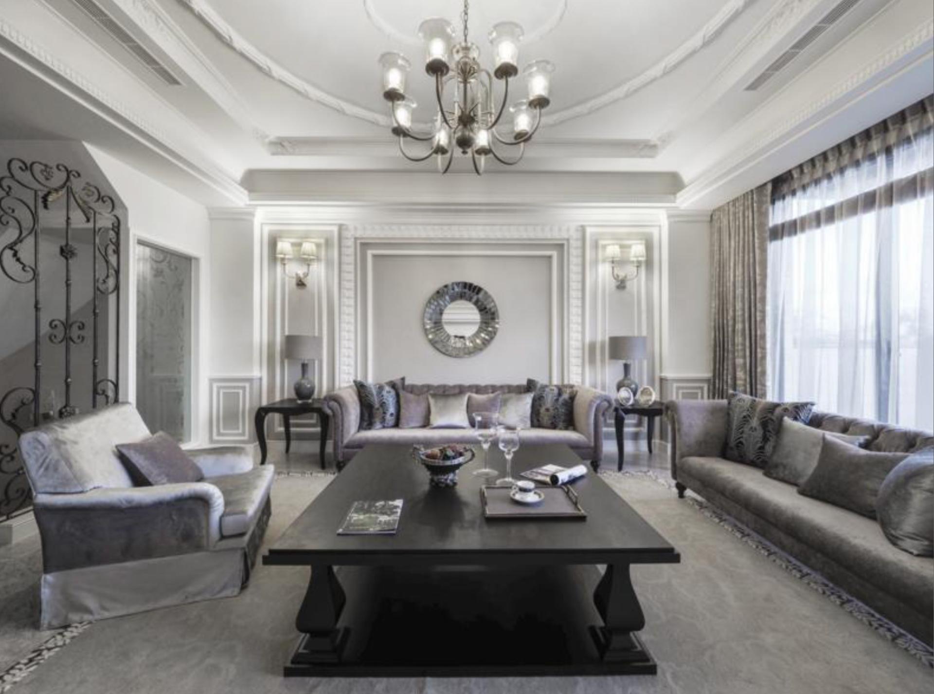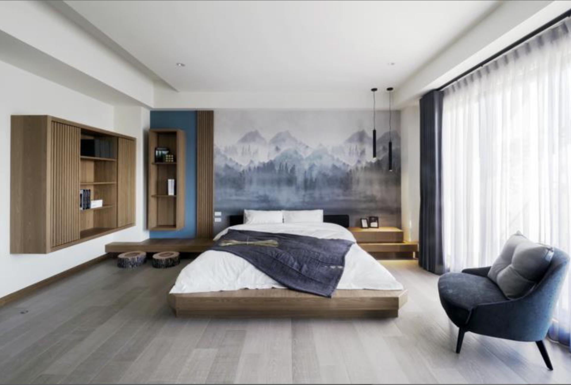 The theme embraces an understated aesthetic of “subtle sophistication.” Rectangular frames and circular carvings are used to define spatial boundaries, reducing the need for rigid partitions while enhancing the depth of field. Instead of conventional cabinetry, warm wooden built-ins are employed to elevate the sense of material richness. A distinctive feature lies in the rooftop sky garden, where a Japanese-style study is seamlessly integrated. Its grey-toned palette and refined transitions embody a cultural fusion that bridges East and West.