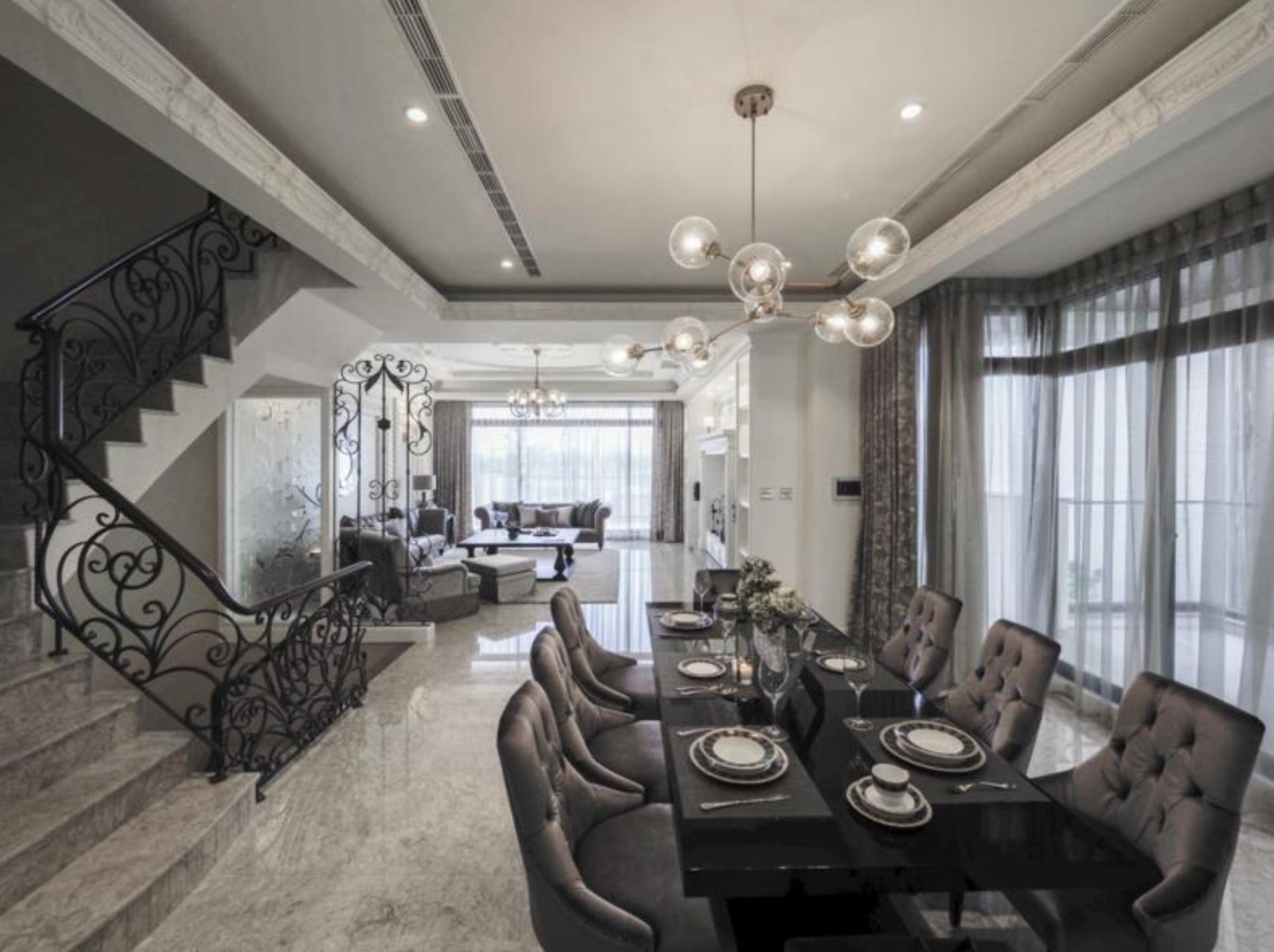 Nestled on the outskirts of Tainan, this show home was custom-designed for a high-level business executive, combining refined aesthetic sensibilities with spaces for social interaction. Surrounded by generous greenery and park views, the design centers on a “neo-classical” theme, blending grey tones with ornamental detailing. By incorporating the raw textures of stone, handcrafted woodwork, and carefully proportioned molding, the space exudes a quiet elegance where light and shadow dance fluidly between curtains and greenery, creating a welcoming yet composed atmosphere.