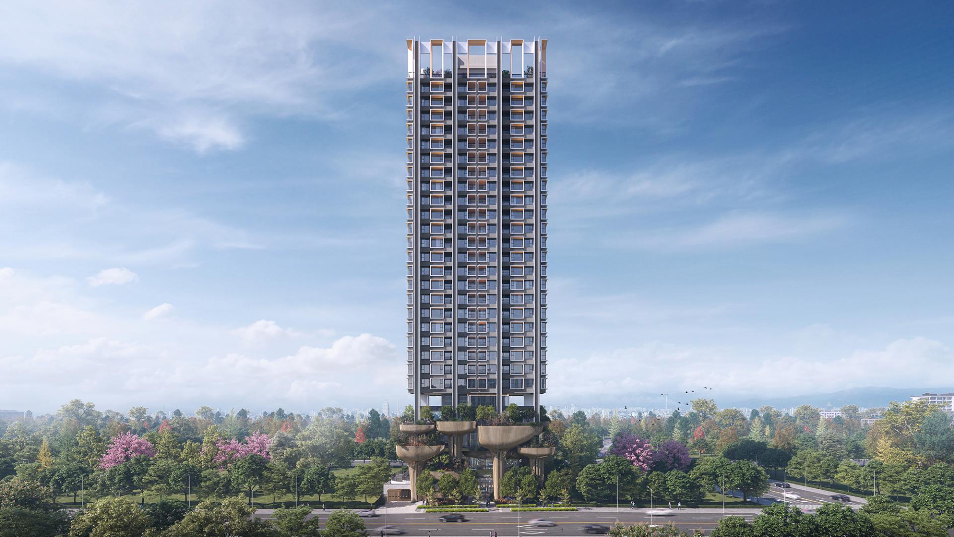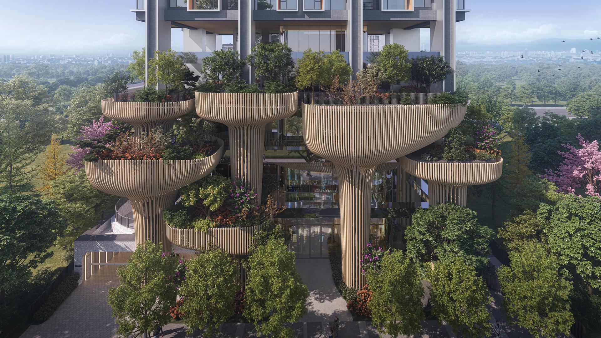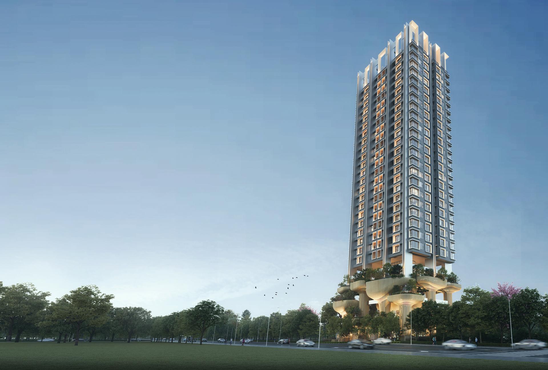 Floors 1 through 4 are designed as full double-height terraces, bringing greenery upward into the vertical dimension of the tower. With terraces soaring up to nine meters high, the building exudes grandeur and a welcoming gesture. Inside, expansive transparent glass weakens the boundary between interior and exterior, allowing residents to feel as though they are in a park while still within their homes.