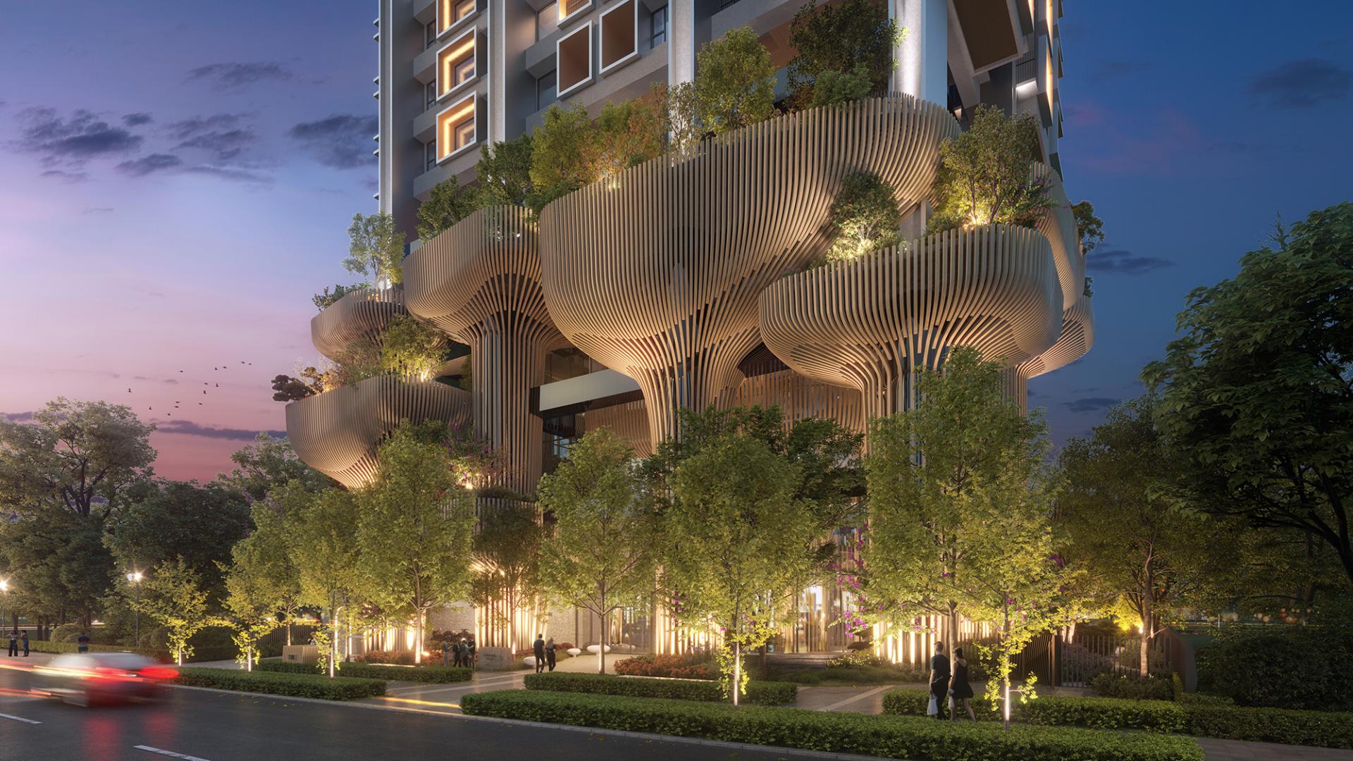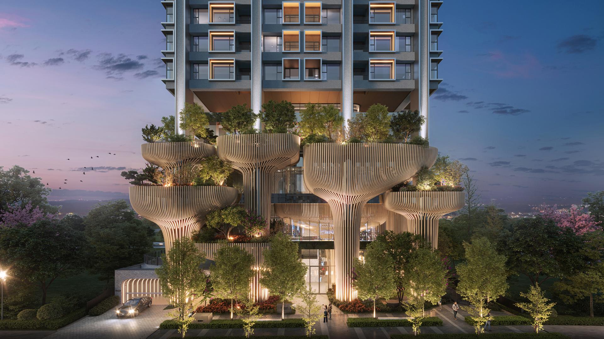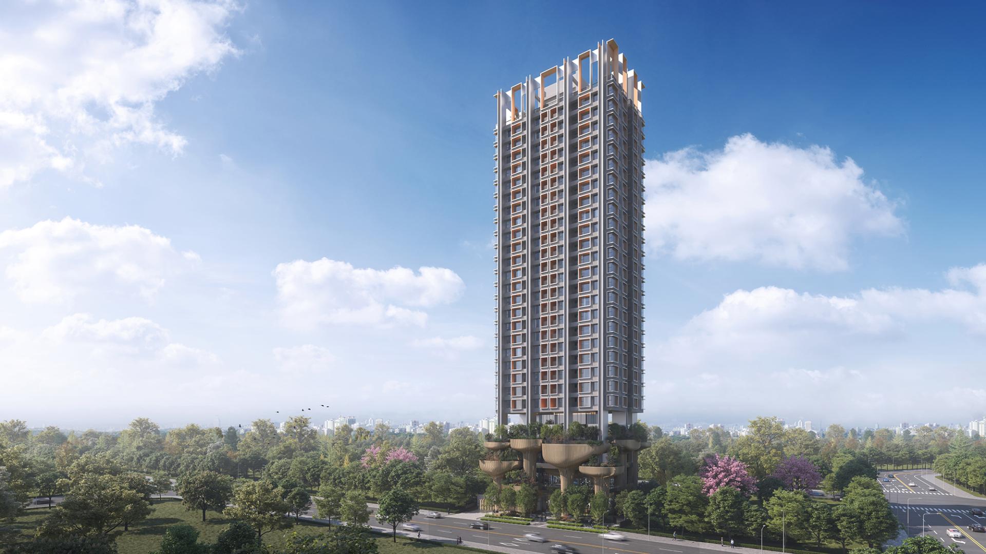 Floors 1 through 4 are designed as full double-height terraces, bringing greenery upward into the vertical dimension of the tower. With terraces soaring up to nine meters high, the building exudes grandeur and a welcoming gesture. Inside, expansive transparent glass weakens the boundary between interior and exterior, allowing residents to feel as though they are in a park while still within their homes.