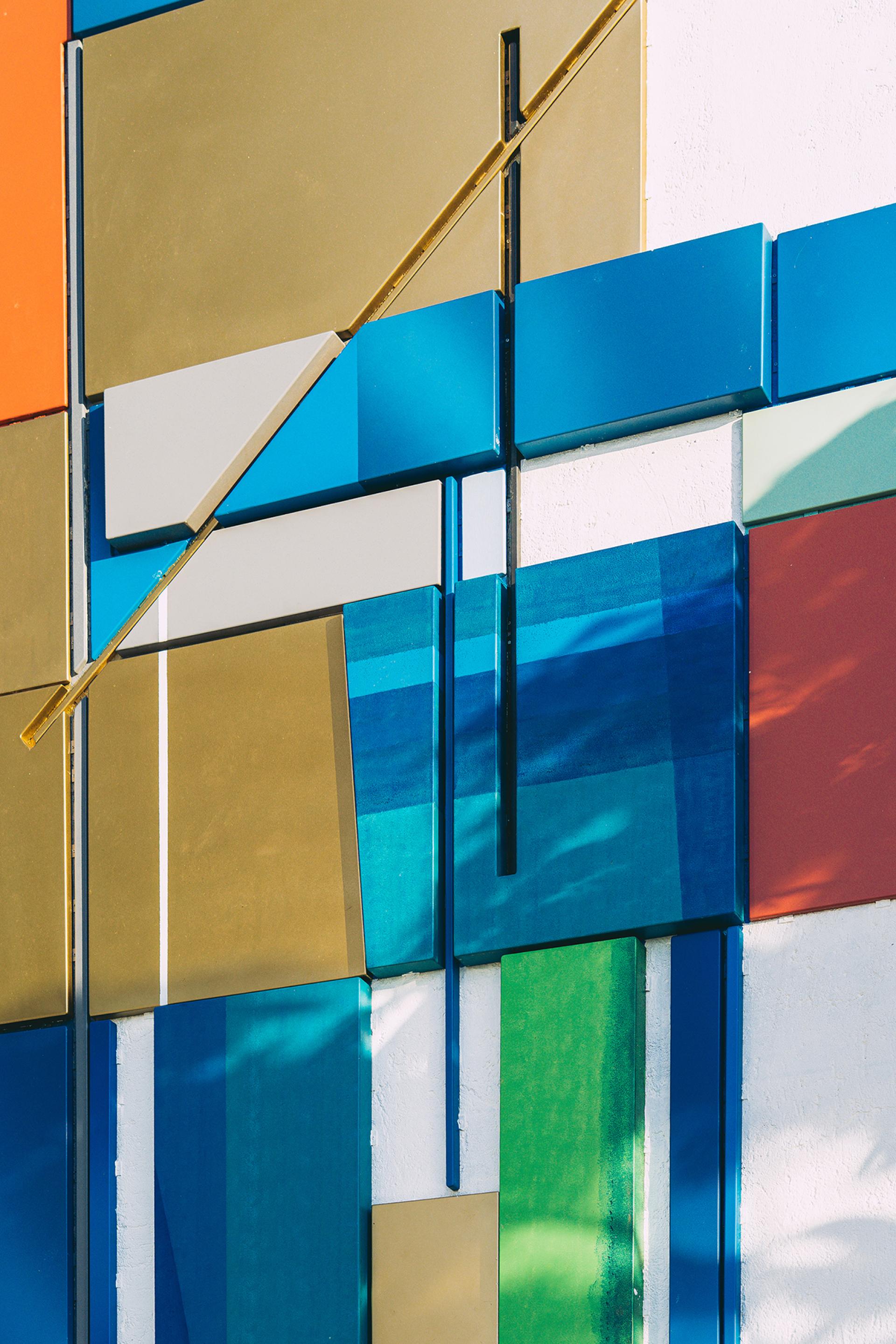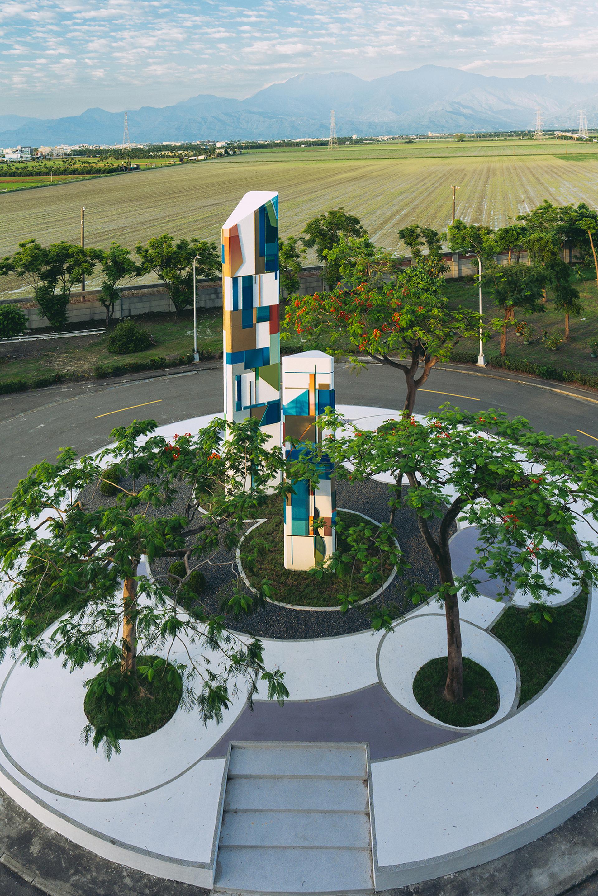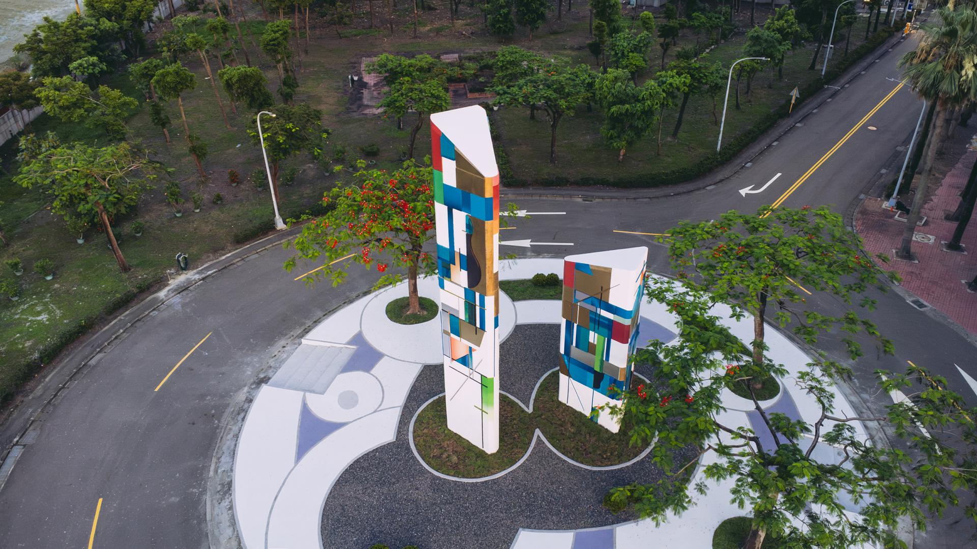 Incorporating post-incineration recycled aggregate with sustainable materials such as stainless steel, aluminum, and ceramic tiles, the triangular columns and sculptural forms bring to life the visual themes found in the artists’ Threshold paintings. The tallest structure stands at 12 meters, demanding precise engineering to meet seismic and wind resilience standards. Functionally, the installation supports environmental education and connects directly to the planned eco-learning center on-site. Through this integration, the facility transforms from a NIMBY site into a space of reflection and social engagement—redefining the role of public art in ecological advocacy.