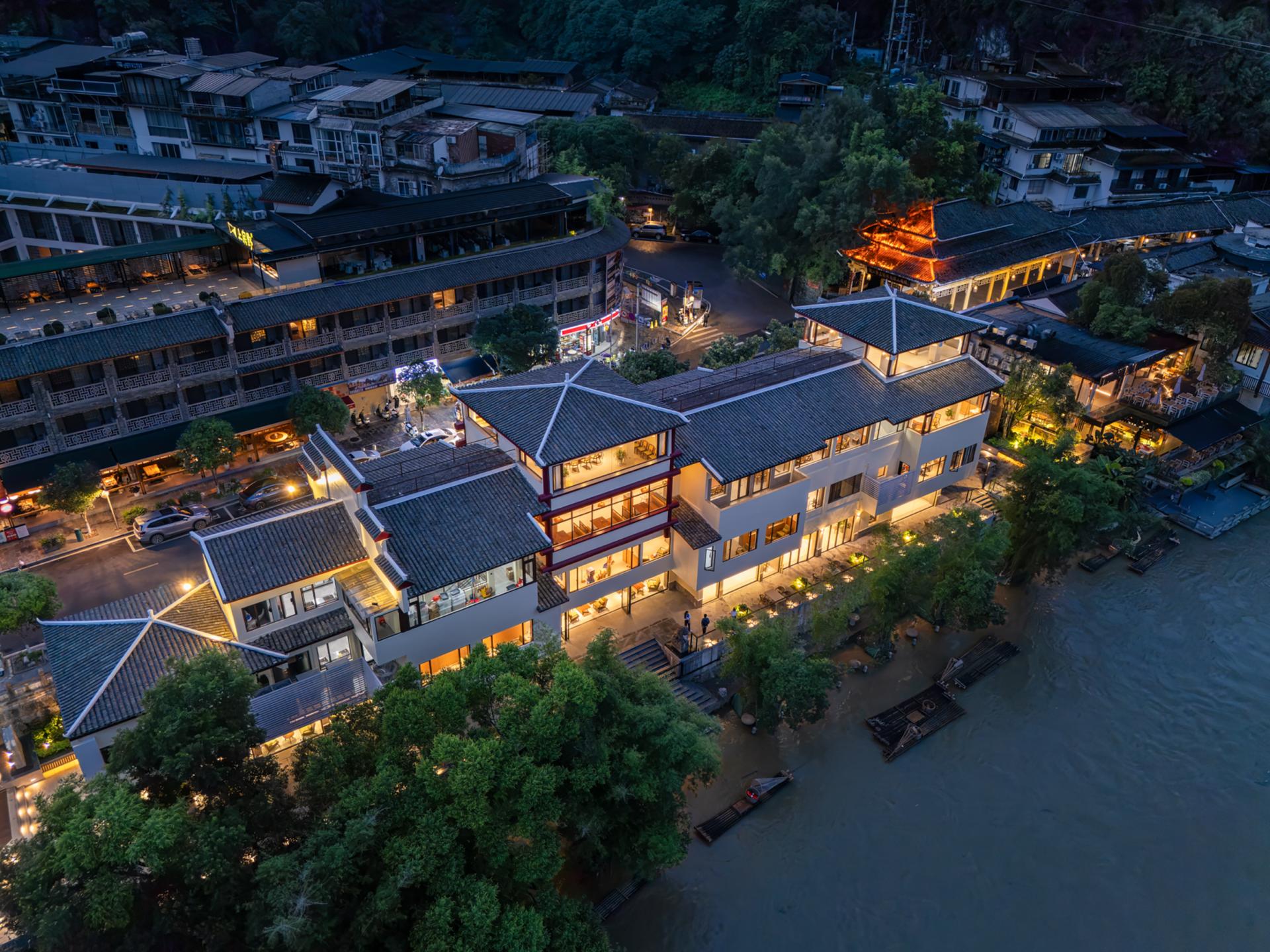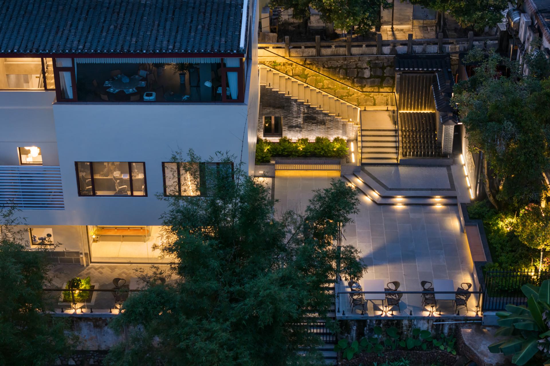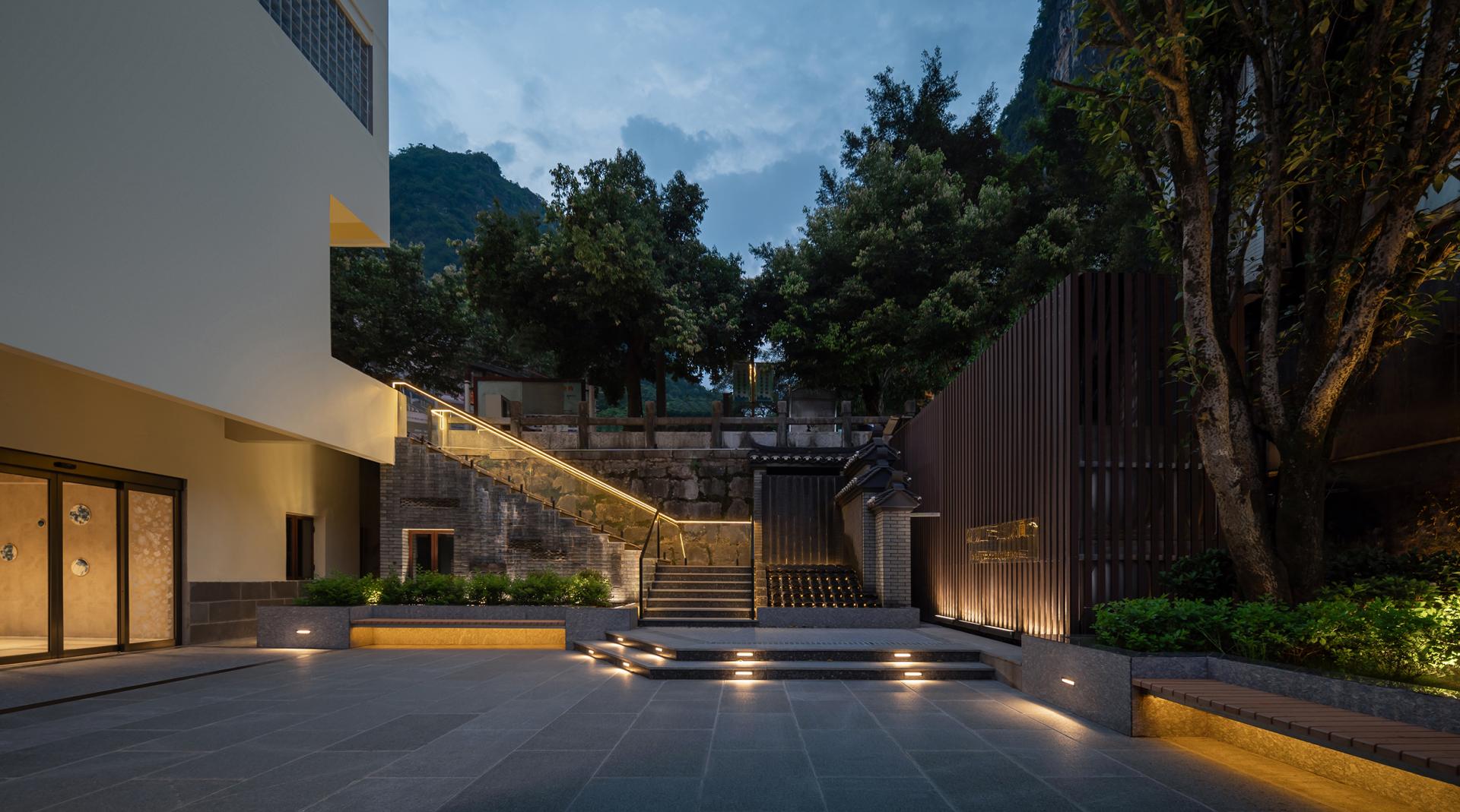 Guilin’s scenery is the best under heaven, and Yangshuo is the best of Guilin.” Inspired by the unique landscapes of Yangshuo, the design team interwove natural scenery with cultural history to shape a public realm rich in both cultural depth and lifestyle aesthetics. The brand name “Indigo Restaurant” derives from the proverb “green is born of blue, yet surpasses blue,” rooted in the craft of indigo dyeing, symbolizing the extension of local tradition into contemporary life. Landscape design here goes beyond greening: it transforms nature into a canvas where ancient walls, cascading waters, stone textures, and light and shadow converge to create a stage for living and interaction, enabling visitors to rediscover the bond between culture and nature amid mountains and rivers.