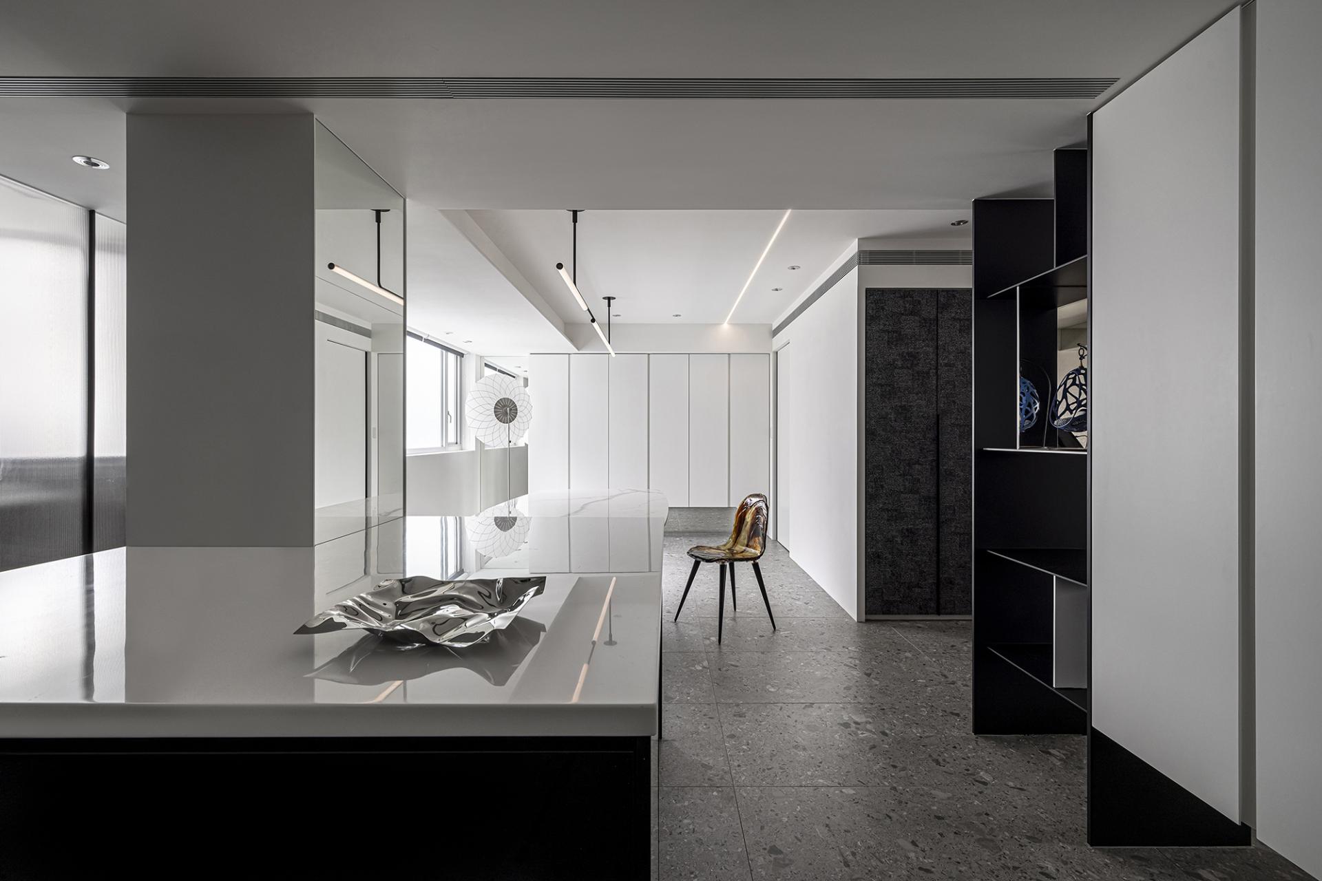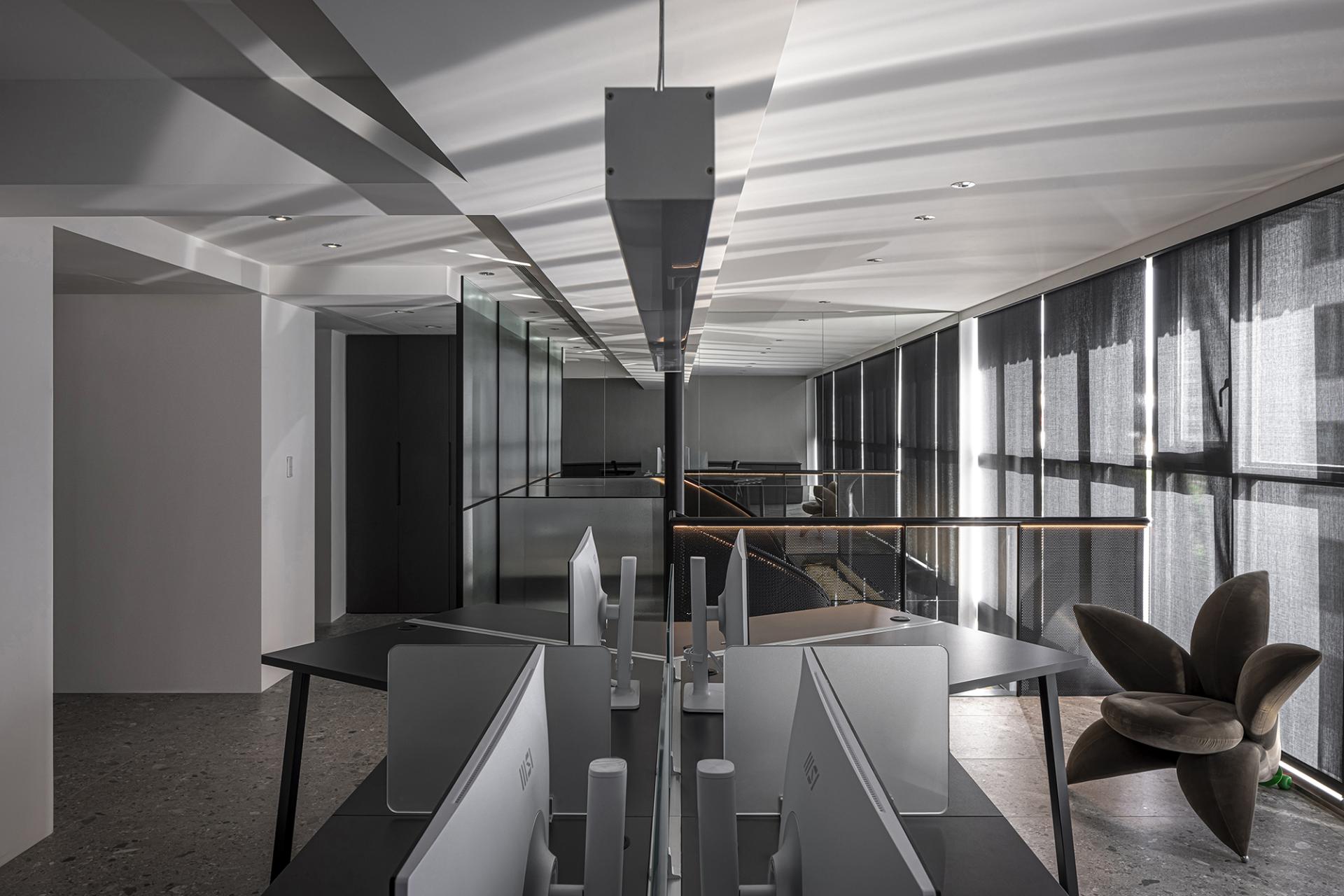 The project reimagines a 40-year-old duplex residence near Ren'ai Road in Taipei into a corporate office. Light serves as the narrative thread and structure as poetry. Raw beams retain their weathered texture, while mirrors and embedded lighting dissolve their mass, making them part of the visual story.