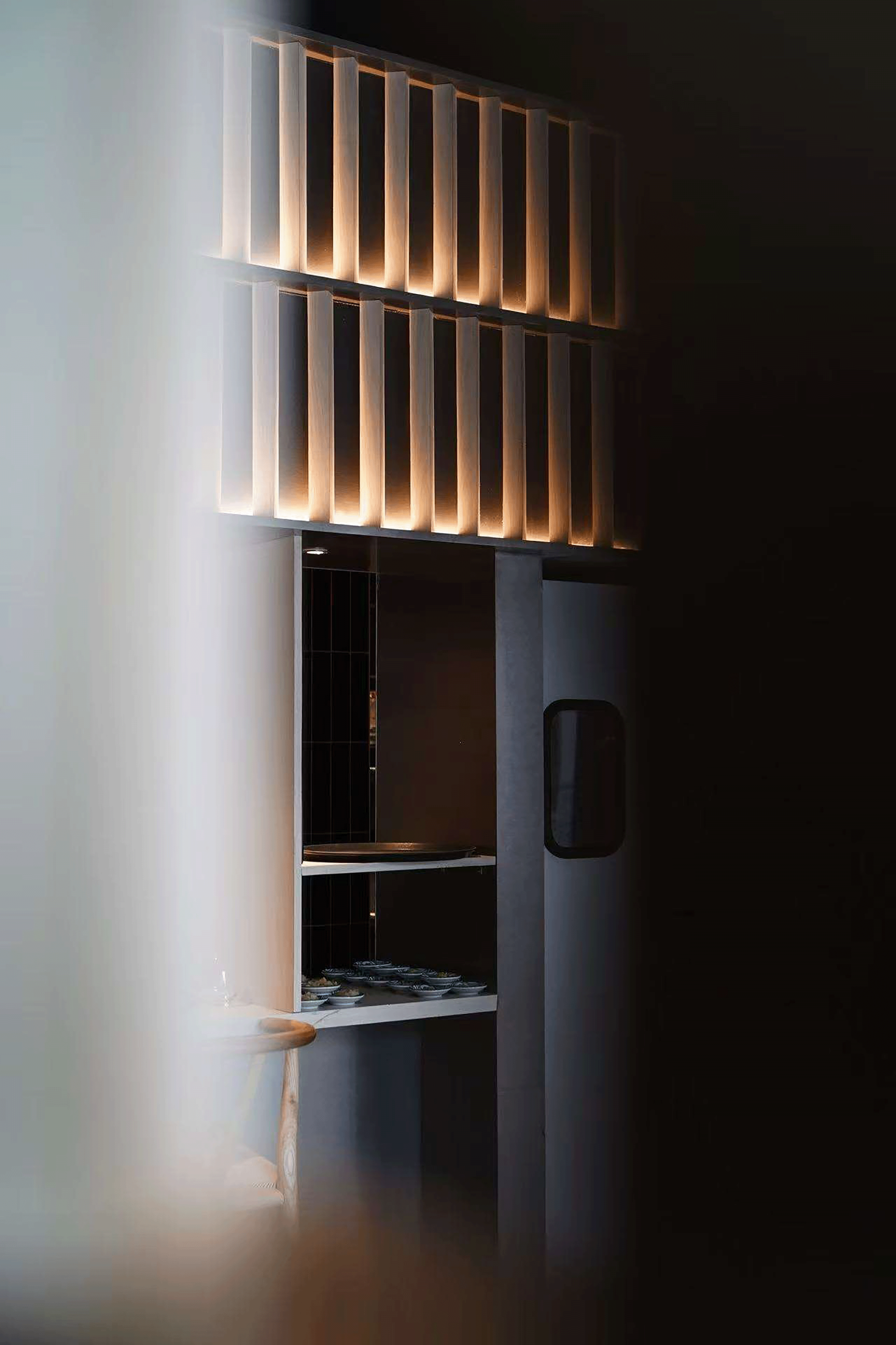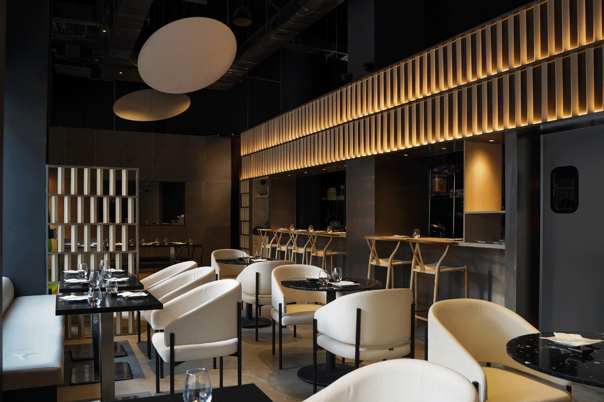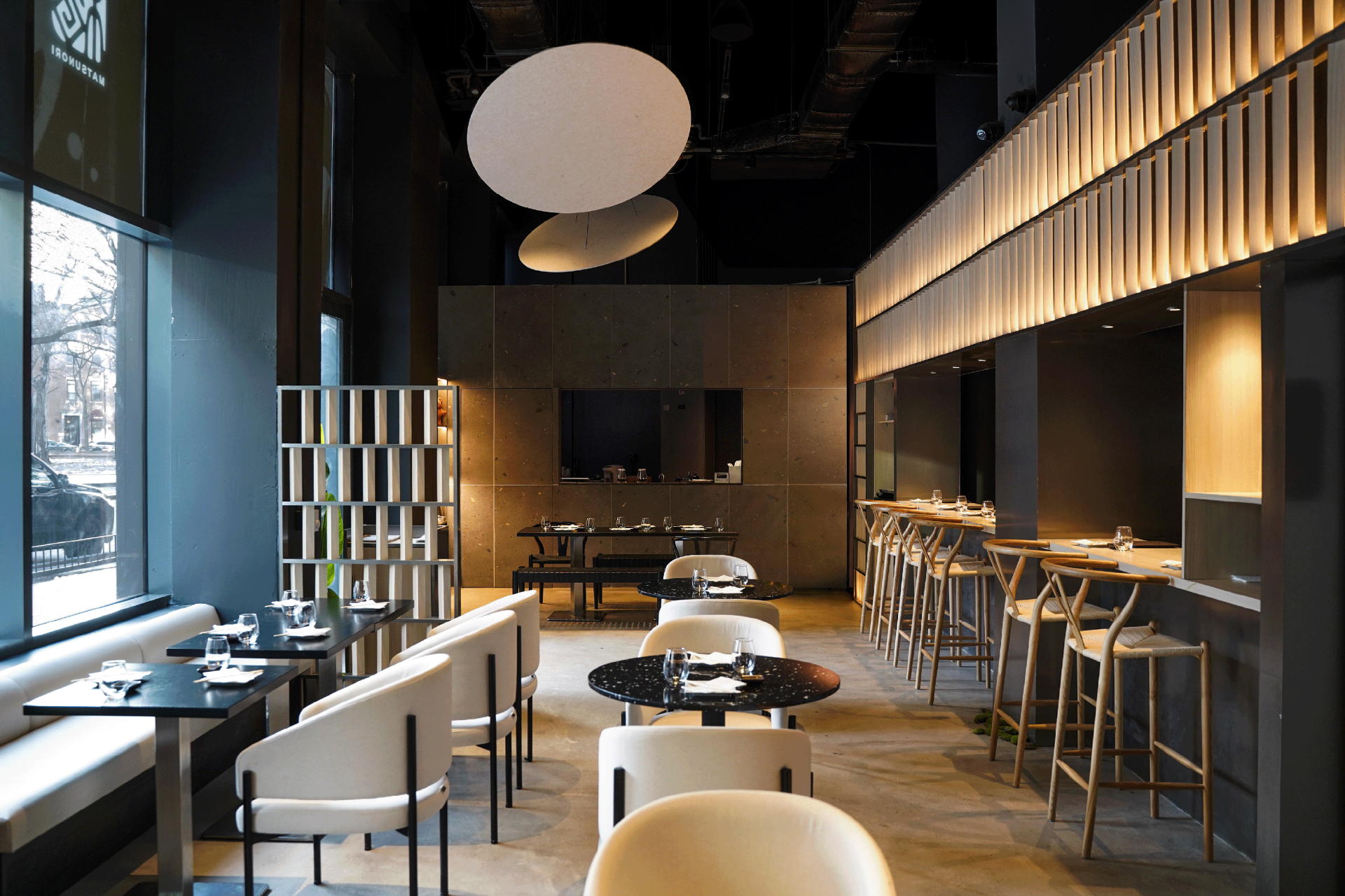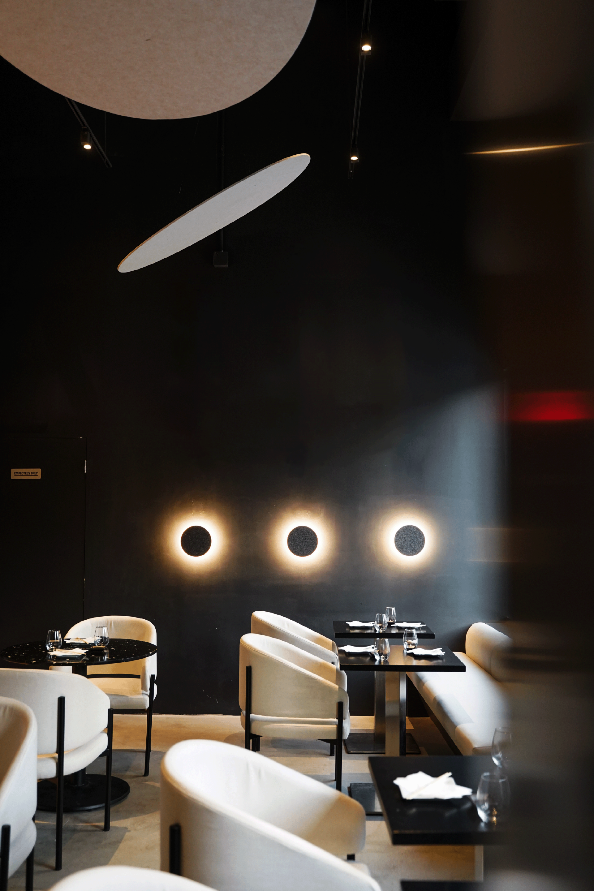 The interior design of Matsunori embodies a sophisticated yet sleek interpretation of modern Japanese aesthetics, guided by a rhythmic layout that gracefully transitions guests through an intimate, moody dining experience. Dark, luxurious design such as rich patterned element and subtle metallic accents create a refined atmosphere, while clean lines and minimalist furnishings convey elegance and contemporary simplicity. Carefully layered lighting enhances the ambiance, crafting pools of intimacy and dramatic shadows that emphasize architectural details. Cultural inspirations, including contemporary interpretations of traditional screens and subtle nods to natural light, illustrate the restaurant’s dedication to authenticity and craftsmanship, resulting in a truly immersive and memorable sensory experience. Together, these thoughtfully curated sensory elements transcend traditional restaurant aesthetics, creating a holistic and memorable dining experience. The sophisticated interplay of lighting, tactile materials, subtle fragrances, interactive visual access to culinary artistry, and carefully managed acoustics work seamlessly together, providing diners with an emotionally resonant journey that engages all the senses.