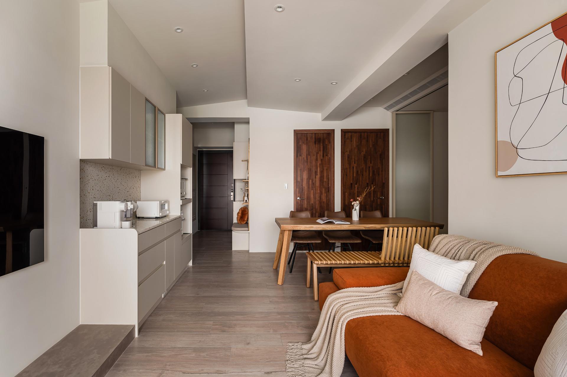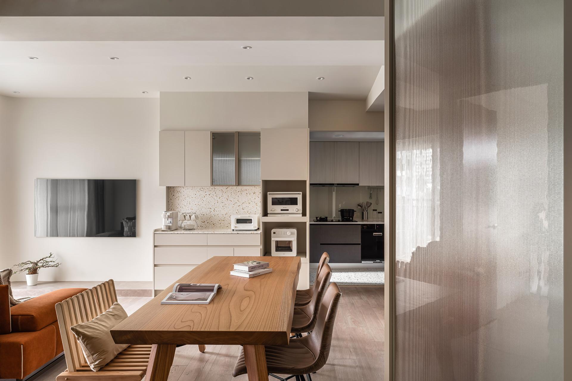 This project showcases a small residential design that meticulously employs a warm milk tea brown color scheme, effectively cultivating a soothing and inviting atmosphere. To enhance visual interest, the design incorporates graceful curved shapes alongside stylish terrazzo textures, creating layers that exude both softness and elegance. Despite the challenge of limited floor space, the design adeptly prioritizes comfort, ensuring a pleasant living experience for its residents. Moreover, the core principles guiding this project—“functional integration,” “color coordination,” and “spatial expansion”—work harmoniously together to maximize utility while maintaining aesthetic appeal. Ultimately, this design not only addresses practical needs but also elevates the overall ambiance of the space.