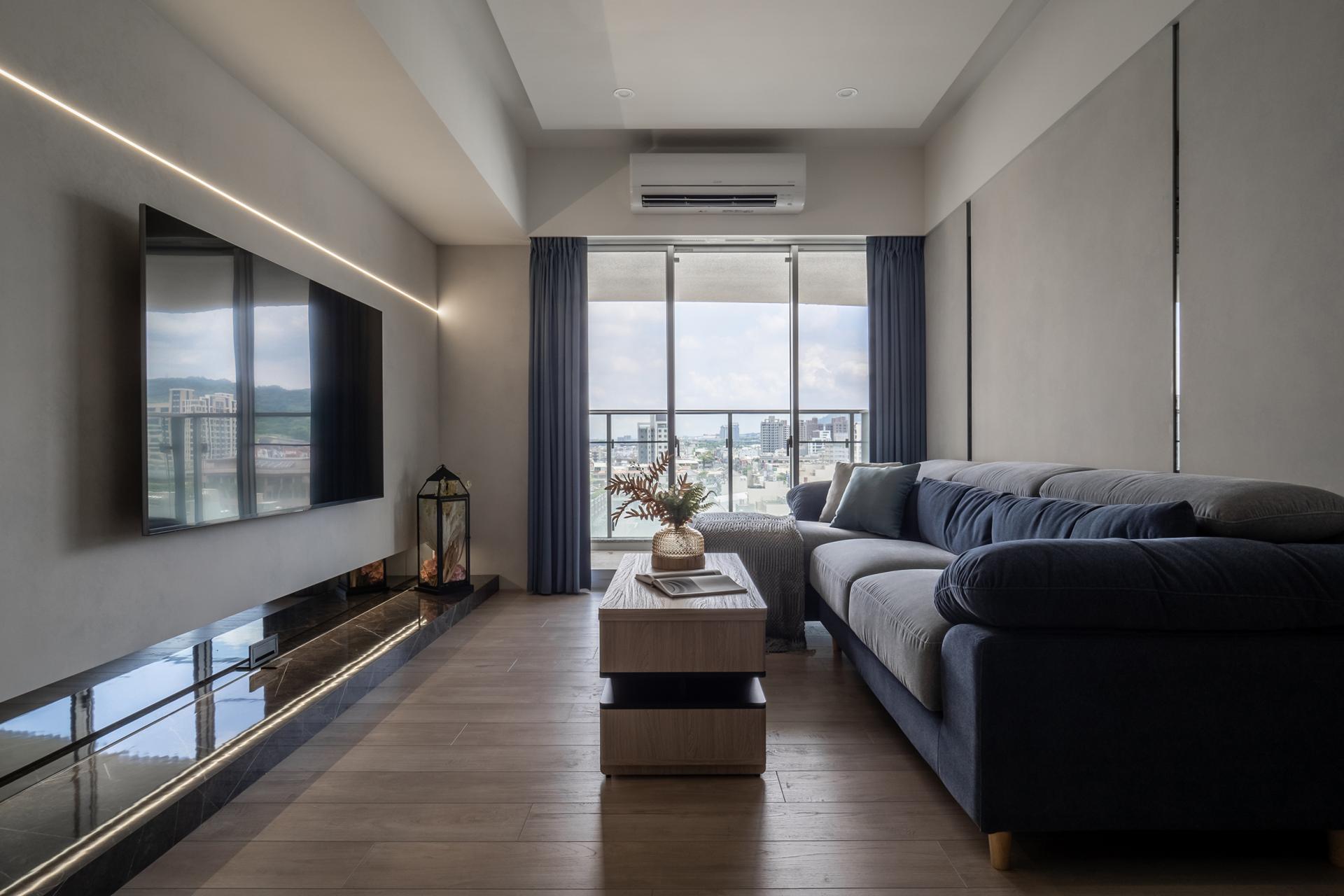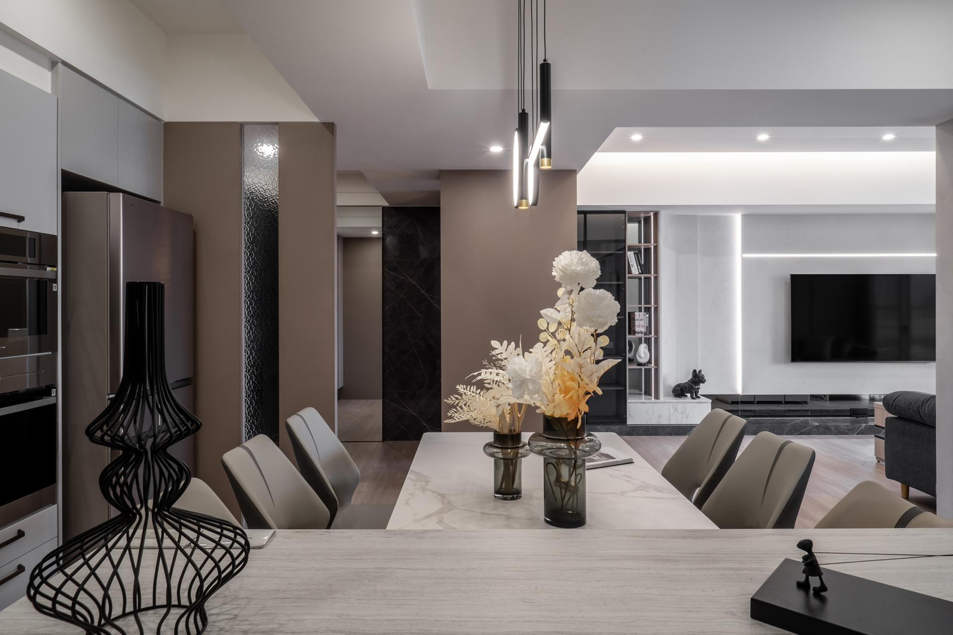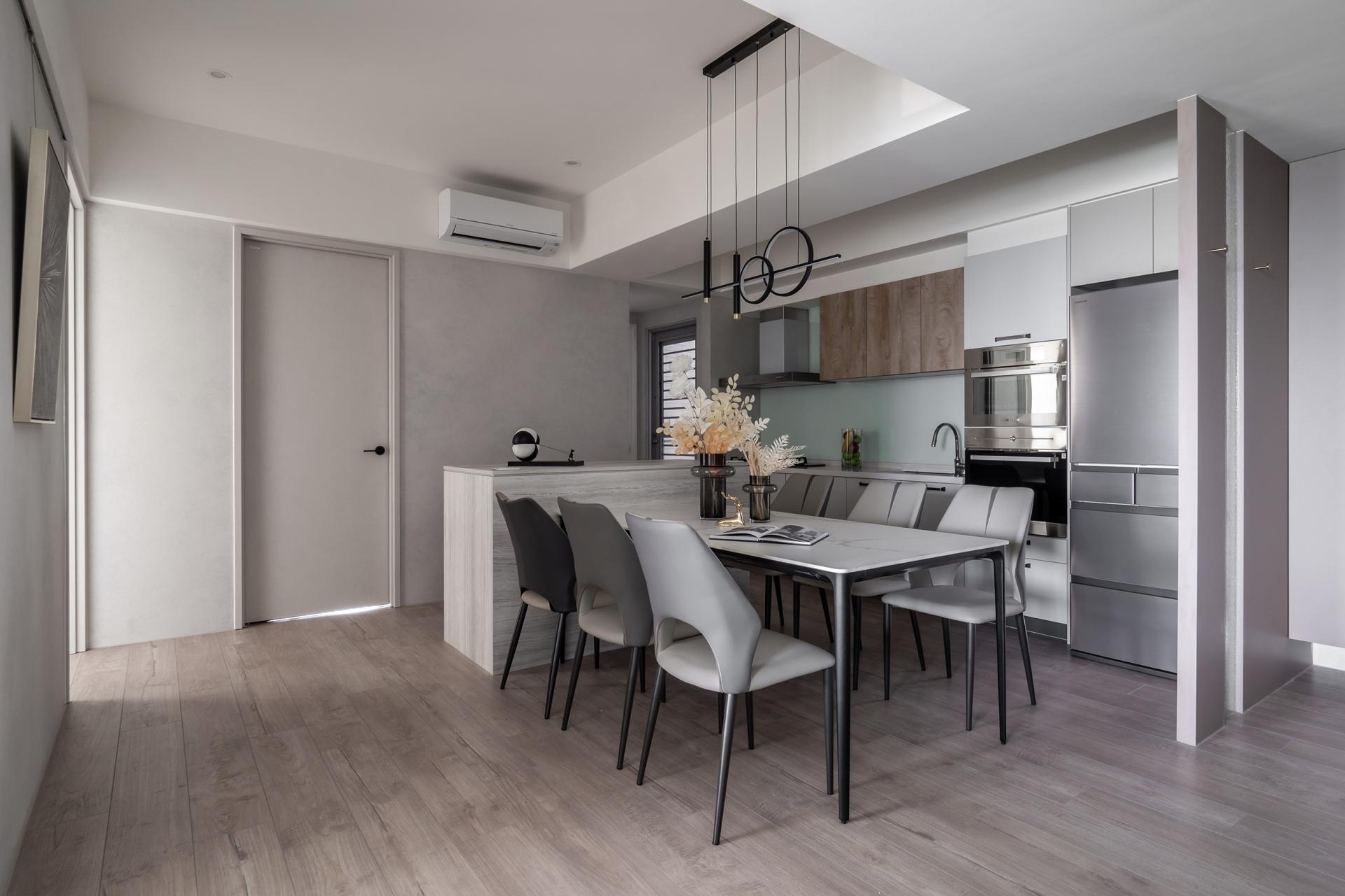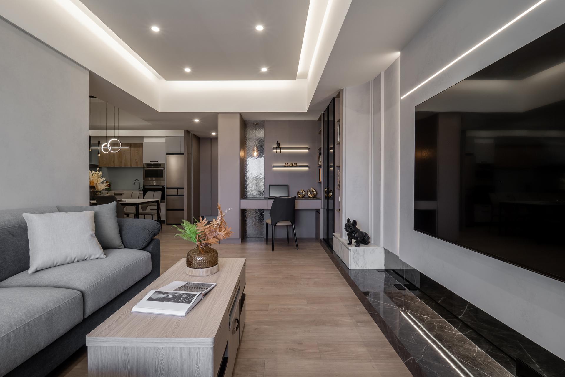 "Veiled Light, Flowing Years" is a holiday home for a family of four, located on a high floor in Taichung’s Beitun District. Rooted in modernist principles, the design layers low-saturation colors with artistic finishes, glass, and metal, to craft a refined and tranquil atmosphere. The TV wall integrates lighting and structure for a clear focal point, while a dual-sided cabinet connects the entry and workspace, forming a fluid, open layout.