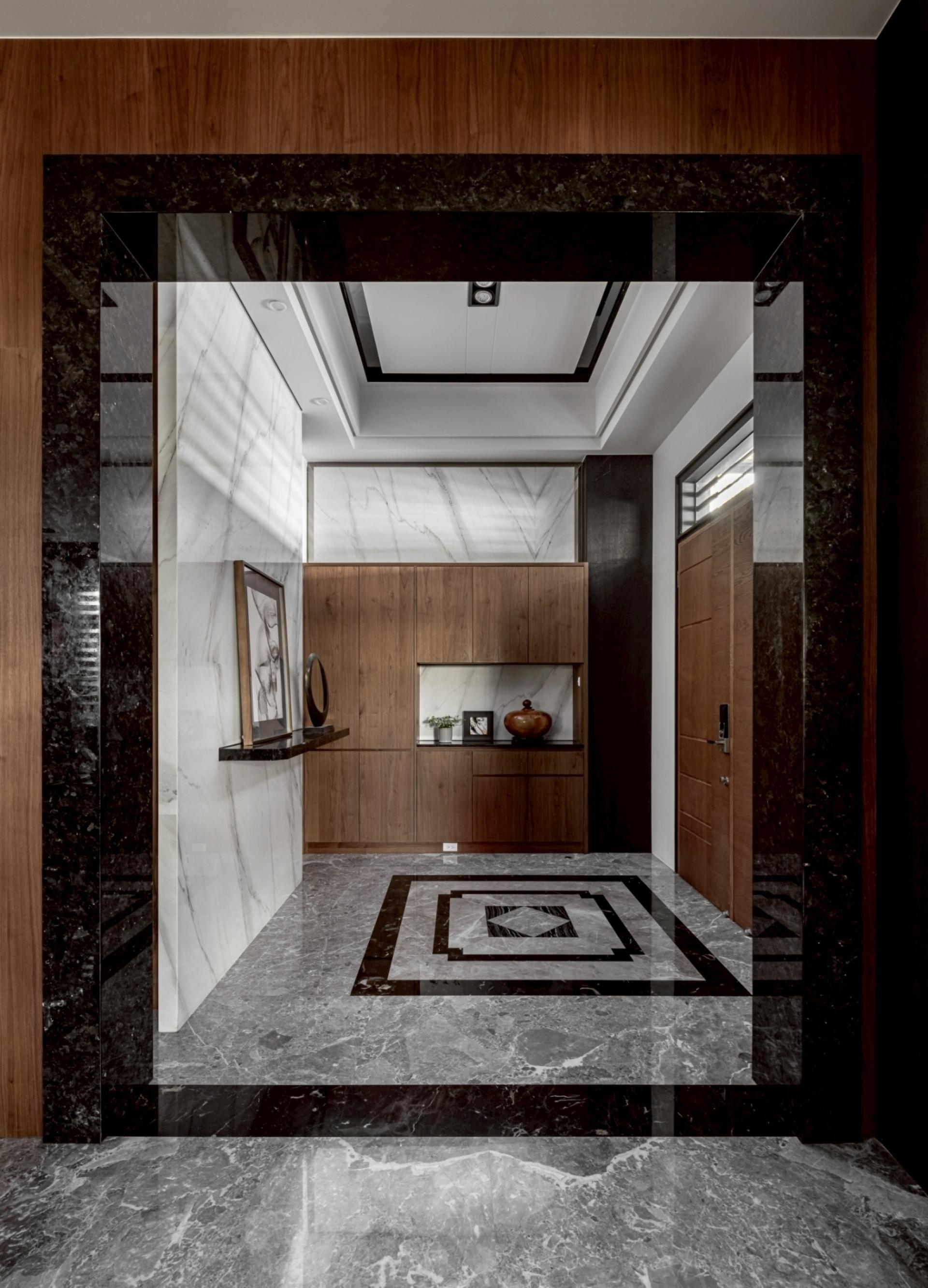 Anchored in the interplay of wood and stone, the design integrates contrast and fusion of materials to create a home defined by calm and grandeur. The natural textures of stone, reminiscent of a splashed-ink landscape painting, establish a foundation of poise and restraint. Meanwhile, the mellow and delicate wood grain softens the rigid stone, achieving a balanced harmony between strength and gentleness within the space.