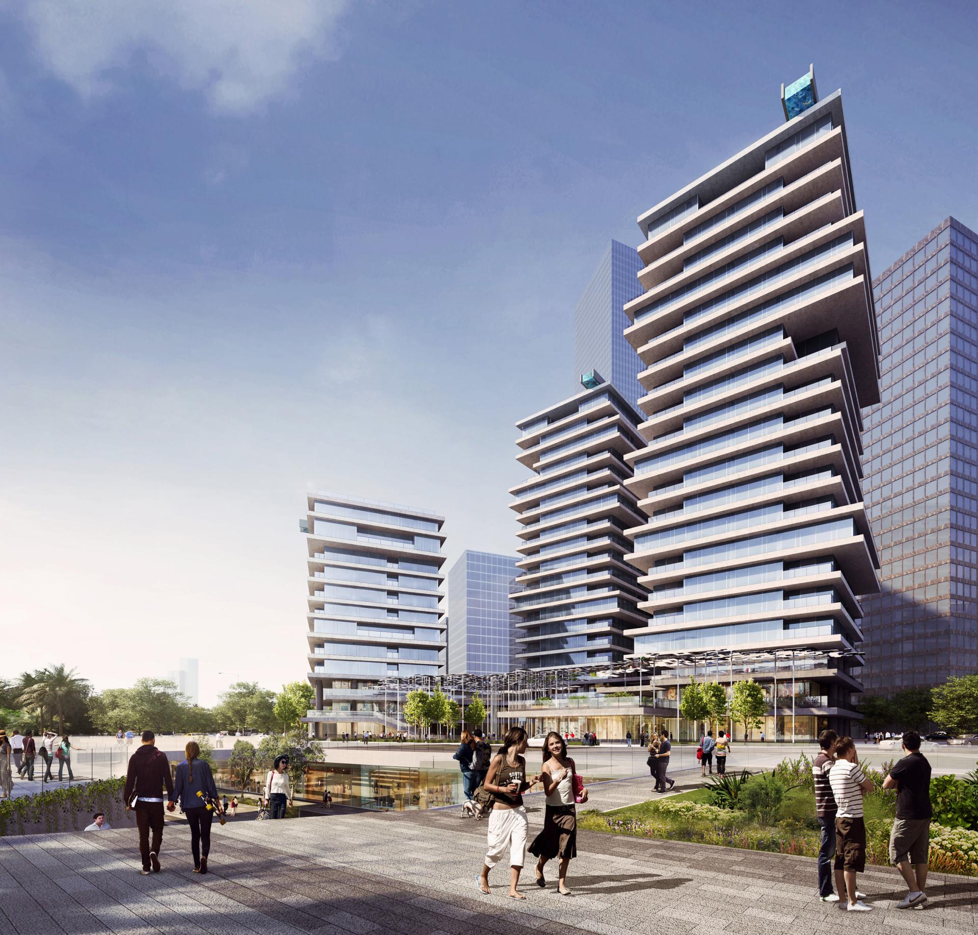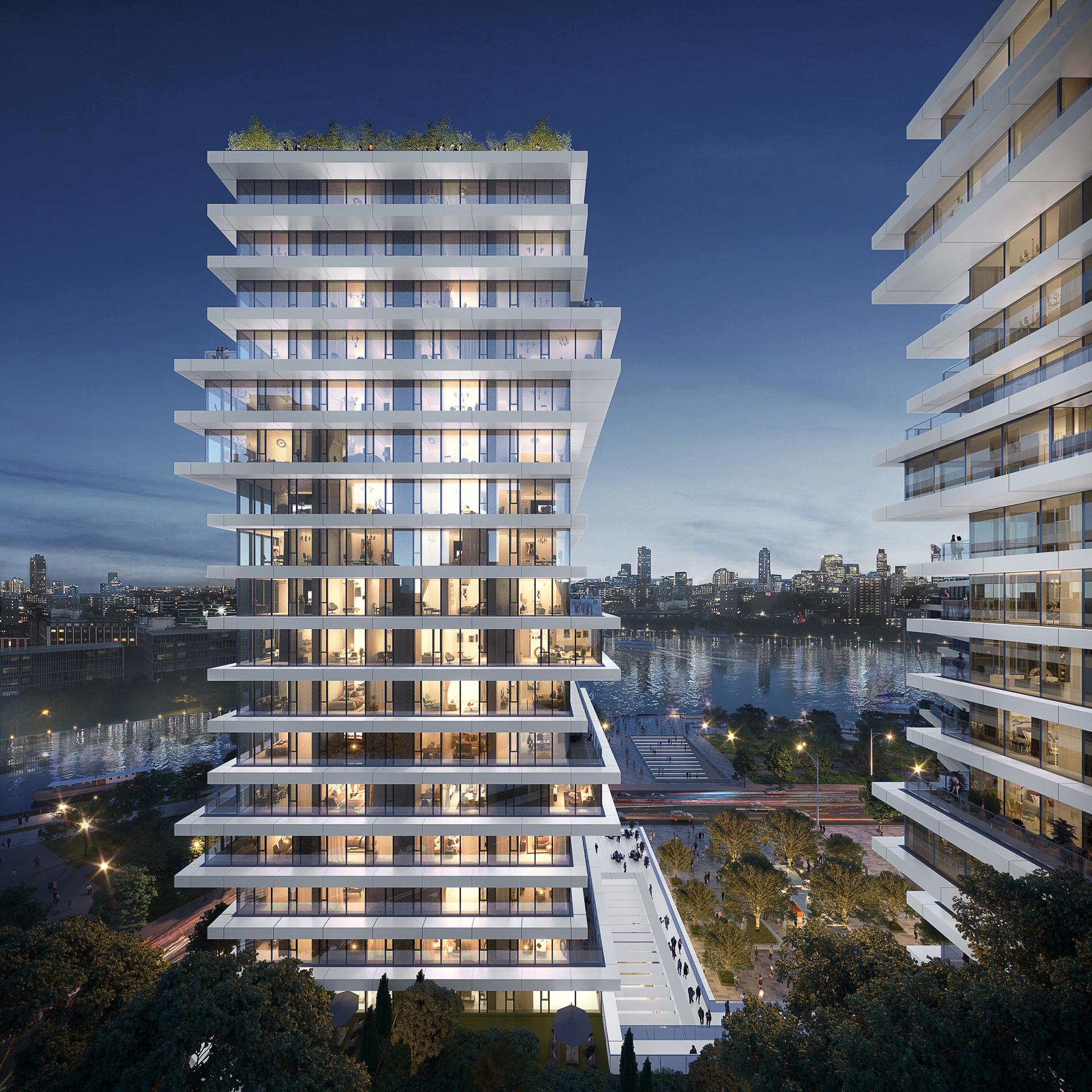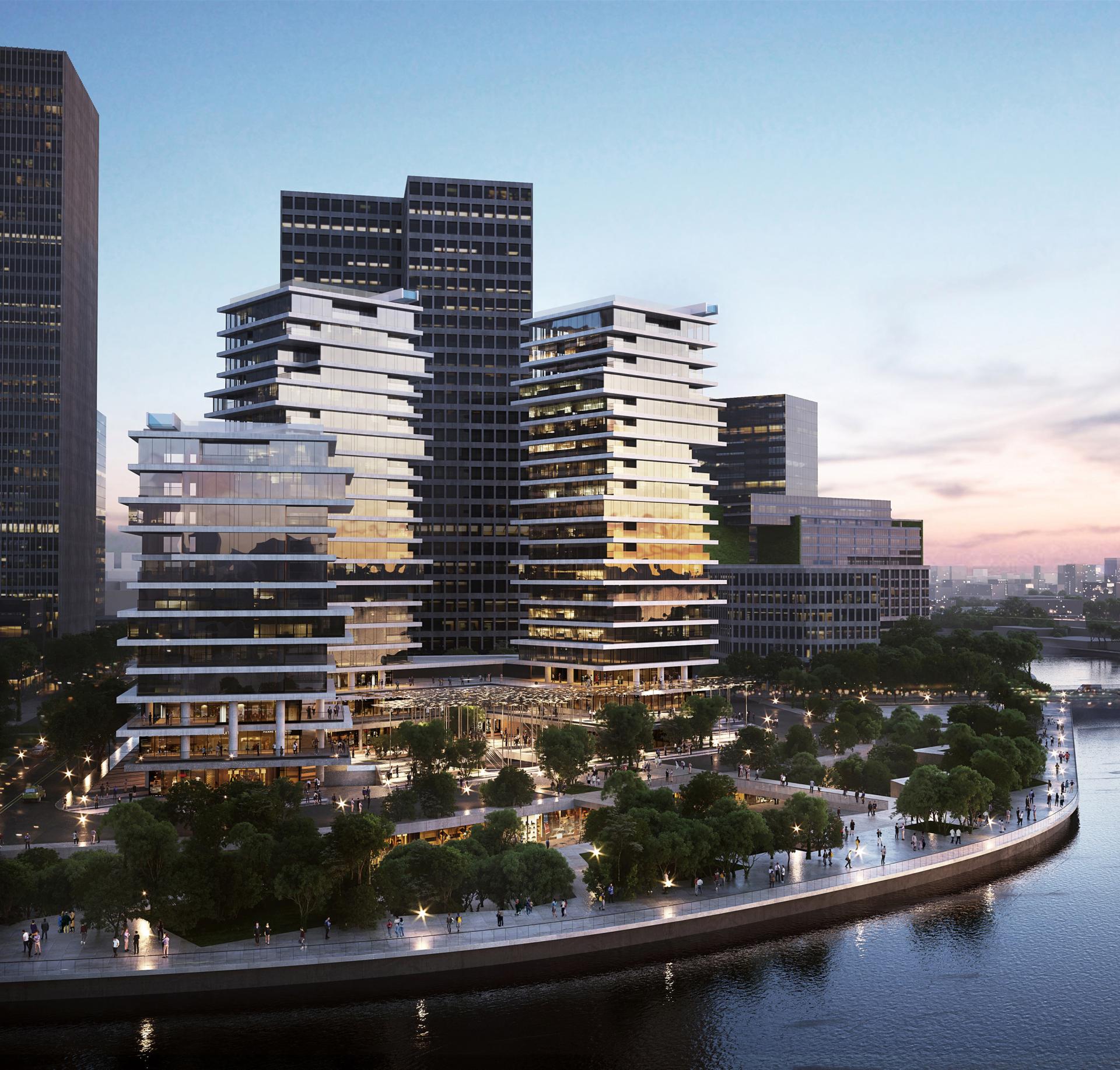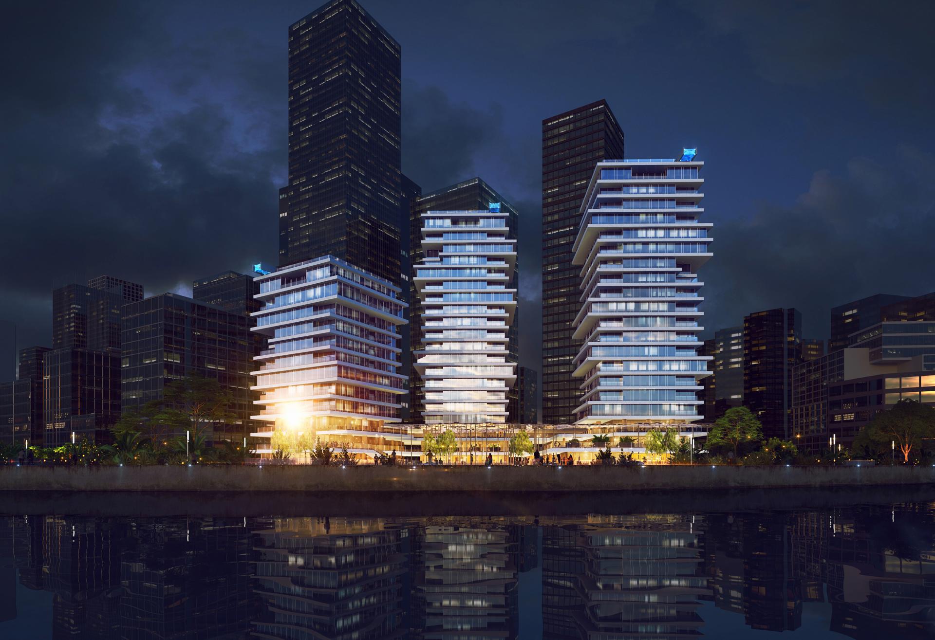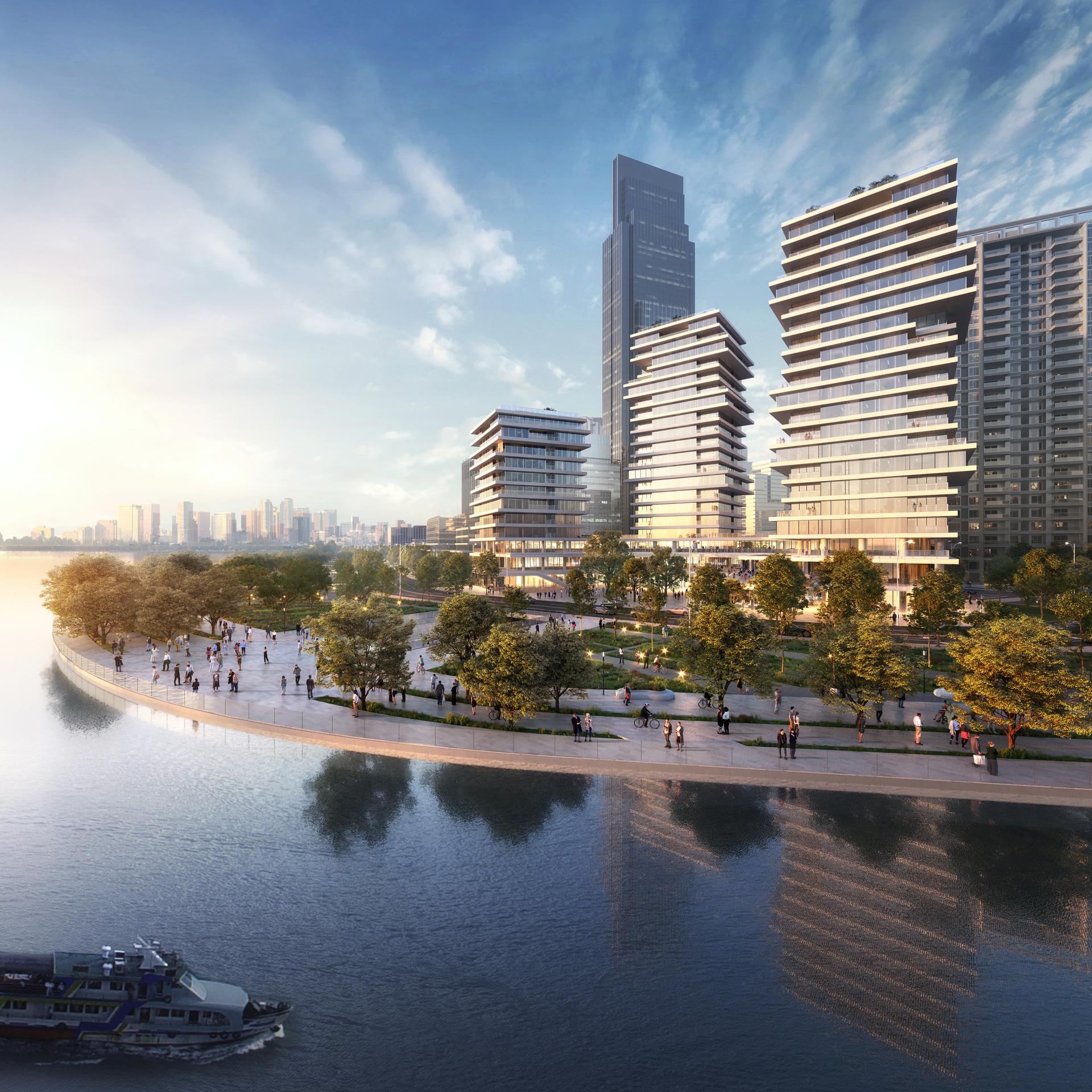 ONE SWAN BAY, Camel’s first real estate project in Guangzhou, stands proudly at the heart of Baietan CBD—the core of one of Guangzhou’s five world-class landmark business districts. Surrounded by premier river views, the convergence of three major rivers, and the Bay Area’s headquarters economic hub, this rare location commands city-wide prestige. Upholding the brand values of freedom, resilience, and innovation, ONE SWAN BAY combines international design expertise with beautiful architecture and exceptional craftsmanship to create a new standard of high-quality living for Greater Bay Area elites. Located on a peninsula-like site, ONE SWAN BAY enjoys distinctive waterfront views. The building arrangement makes full use of the city’s riverside greenbelt, creating a harmonious layering between the urban fabric, architecture, and river scenery—where the unique river views become the architectural anchor. The design centers on human experience, with three towers configured to optimize views: two 80-meter towers set back on the site, and a 50-meter tower positioned along the riverfront. Each tower features a floor plate of about 600m2, resulting in slender building forms with comfortable spacing between them. This arrangement not only offers pleasing aesthetics but also promotes a diverse urban lifestyle by providing public spaces with optimal views, sunlight, and natural airflow. Leveraging the corner location, all towers are rotated 45 degrees to face the waterfront. This positioning avoids direct alignment with other towers and adjacent structures, enhancing privacy for residents. Additionally, the rotation improves views and encourages the natural circulation of wind and light inside the buildings.