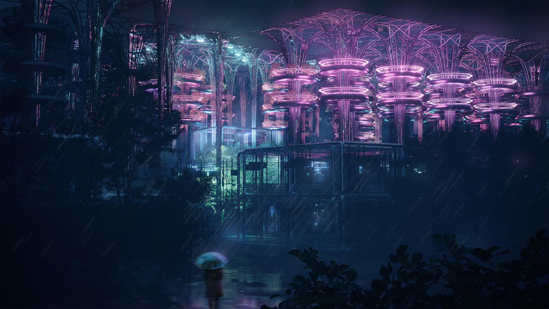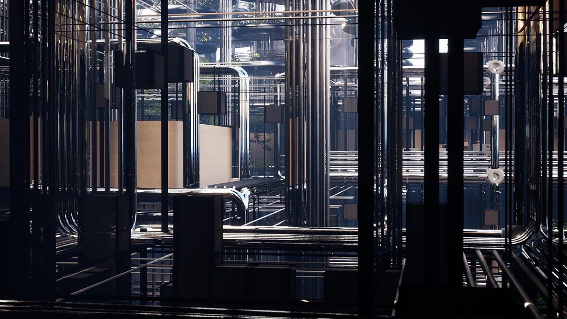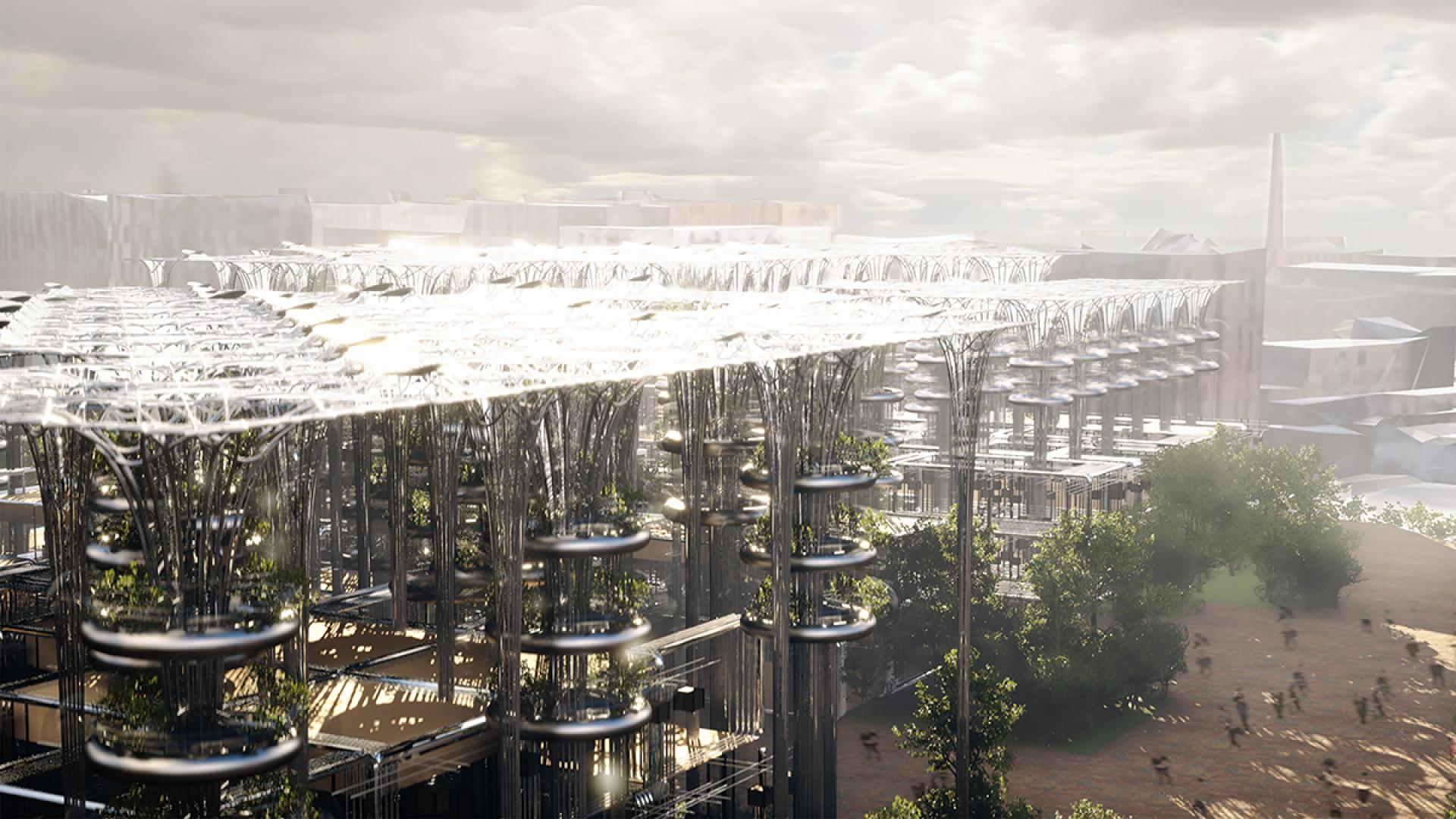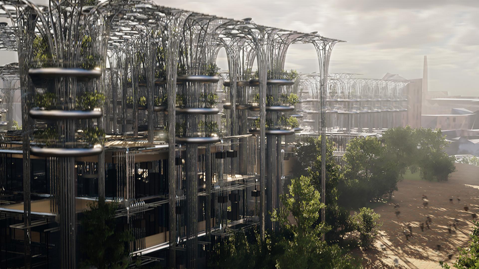 Hydroponic cotton is grown with the aid of supplemental LED lighting and robotic harvesting arms. Once matured, cotton is transferred through vertical pipes into processing areas within the factory below. This closed-loop system models a circular economy, reconnecting agriculture and industry while proposing a new paradigm for sustainable urban manufacturing.