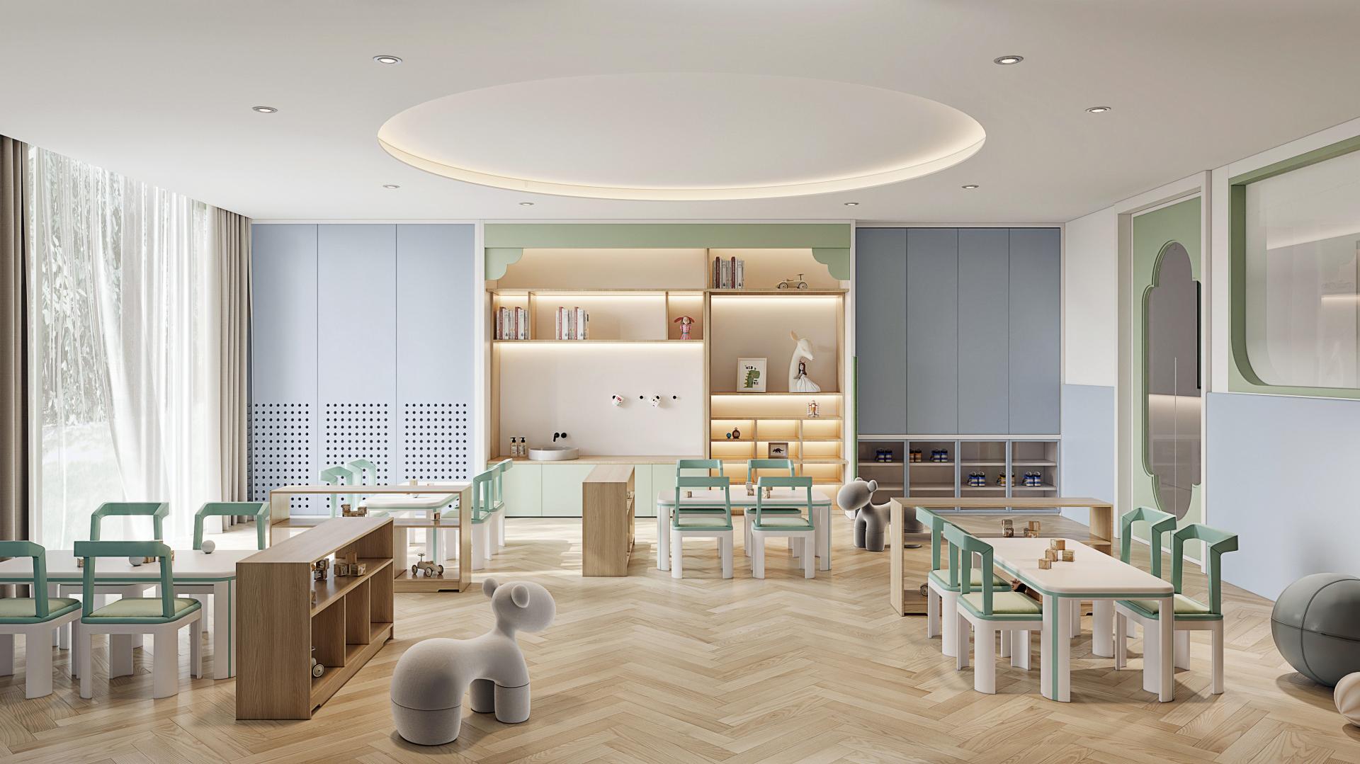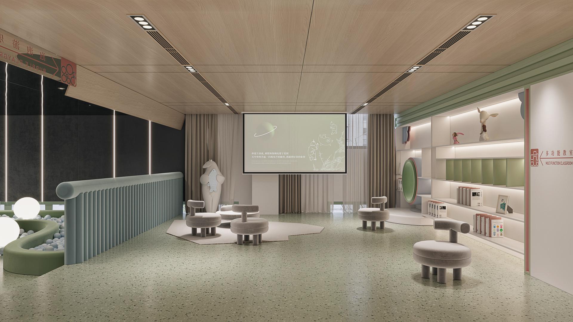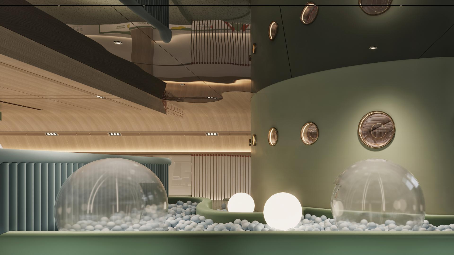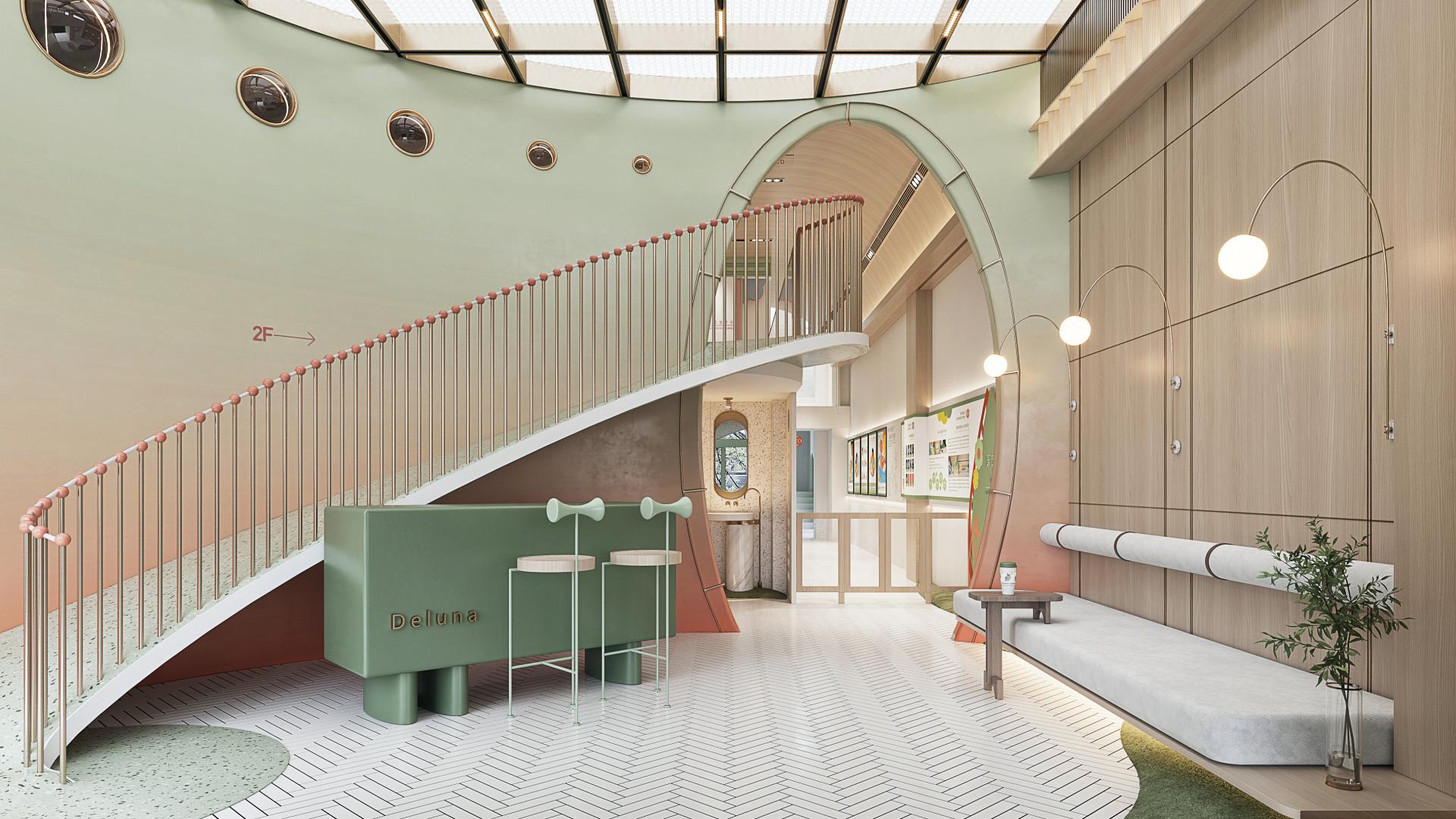 The design inspiration for Deluna Infant Care and Early Education Nursery stems from the fantastical tale of the Deluna Planet: on a midsummer night of a lunar eclipse, children encounter the glowing round boat from the Deluna Planet with Luna in the garden, embarking on an interstellar exploration journey together. This story is translated into tangible elements such as arched doorways, curved staircases, and planet-shaped glass window decorations, creating a multi-layered indoor environment brimming with exploratory fun. The functional layout is meticulously efficient, encompassing zones for reception, morning check-ups, multipurpose activities, public displays and events, service management, and living units for children of different age groups. Outdoor areas are designated for play, sandpits, planting, and sunning, comprehensively meeting the professional operational needs of the childcare institution and the physical and mental development requirements of children.