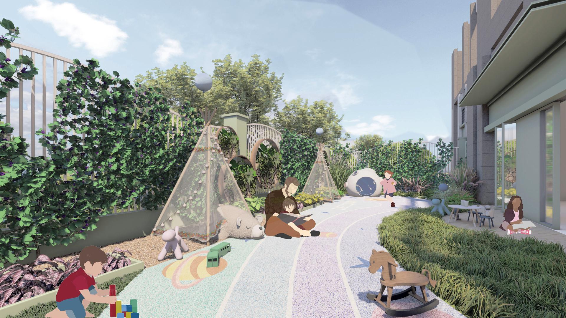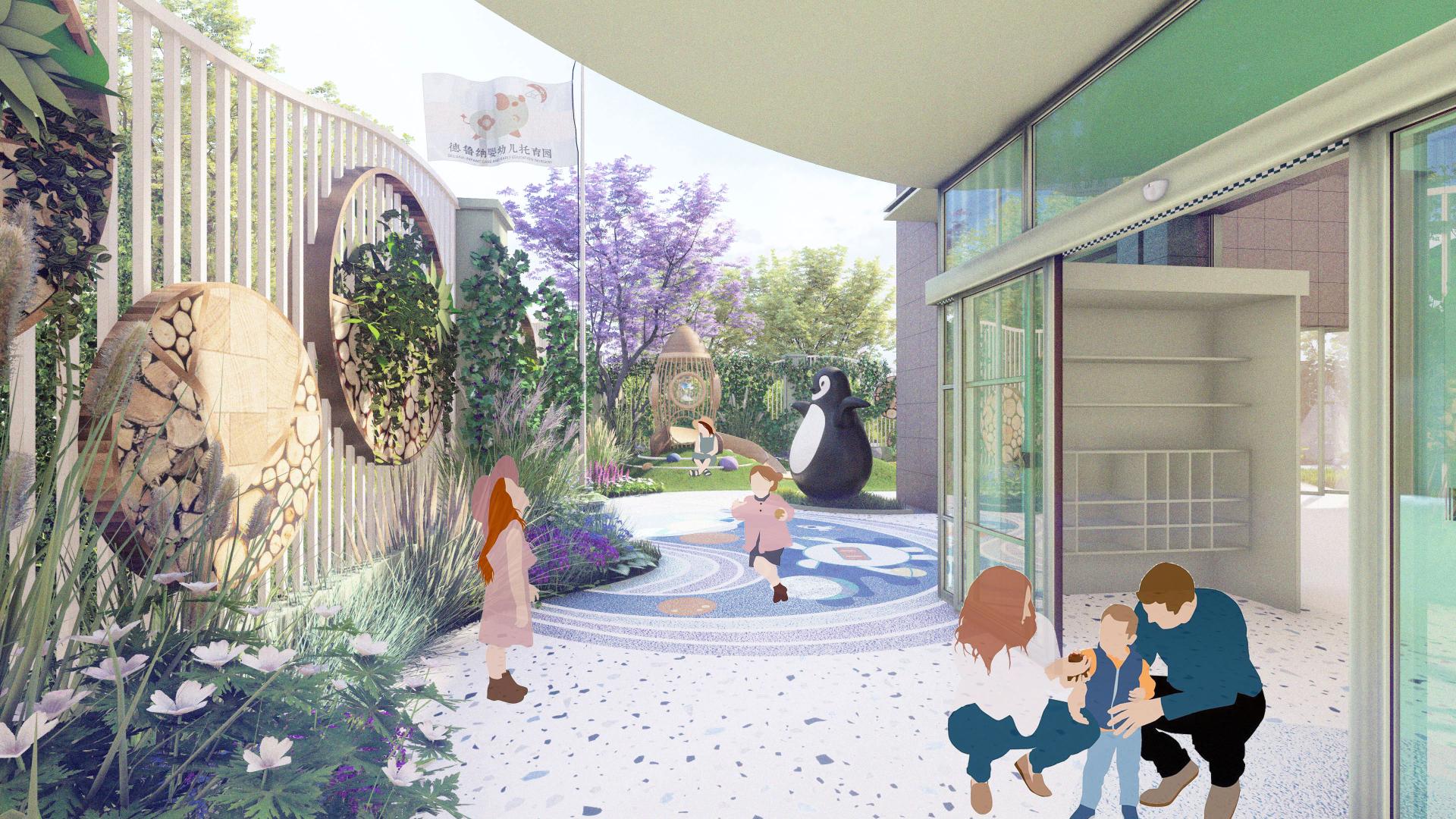 The interior design elements are deeply rooted in Chengdu's local cultural DNA. Drawing from its nickname "Jincheng" and the nationally recognized intangible cultural heritage "Shu Brocade", the core scenographic concept of "Flowers Blooming in Jinguancheng" is proposed, creatively blending the two elements of "brocade" and "courtyard". The "brocade" is manifested through the extraction and application of Shu Brocade's colors, showcased on walls, furniture, and decorations. The "courtyard" focuses on constructing a spiritual space that connects children, families, and the community, providing a social haven for peers and professional childcare support for parents, and serving as a nexus for community-family interaction. Through an in-depth exploration of local culture, the construction of unique narrative scenes, and a spatial expression filled with childlike whimsy and artistry, a childcare space with remarkable distinctiveness and emotional warmth is crafted.