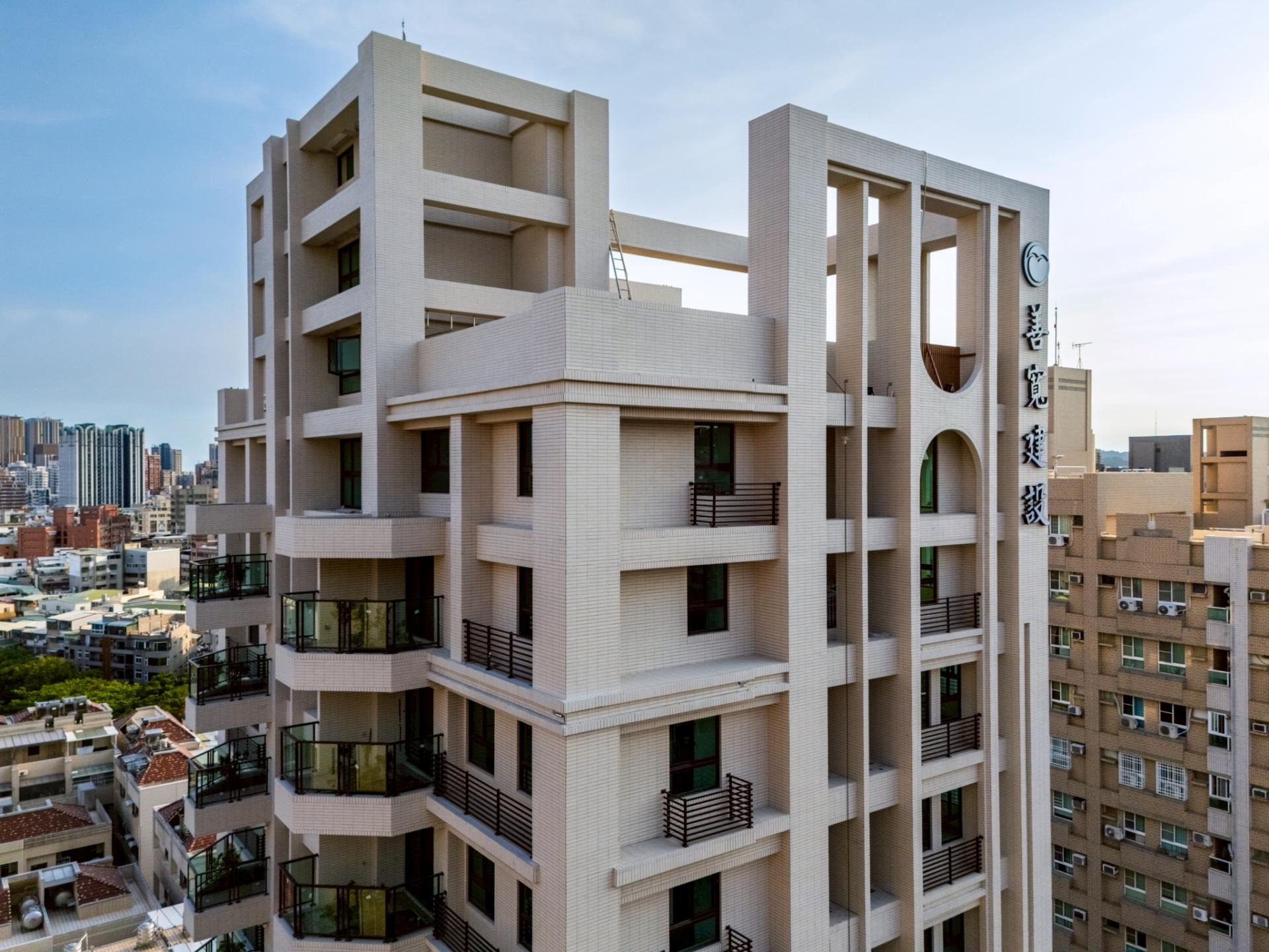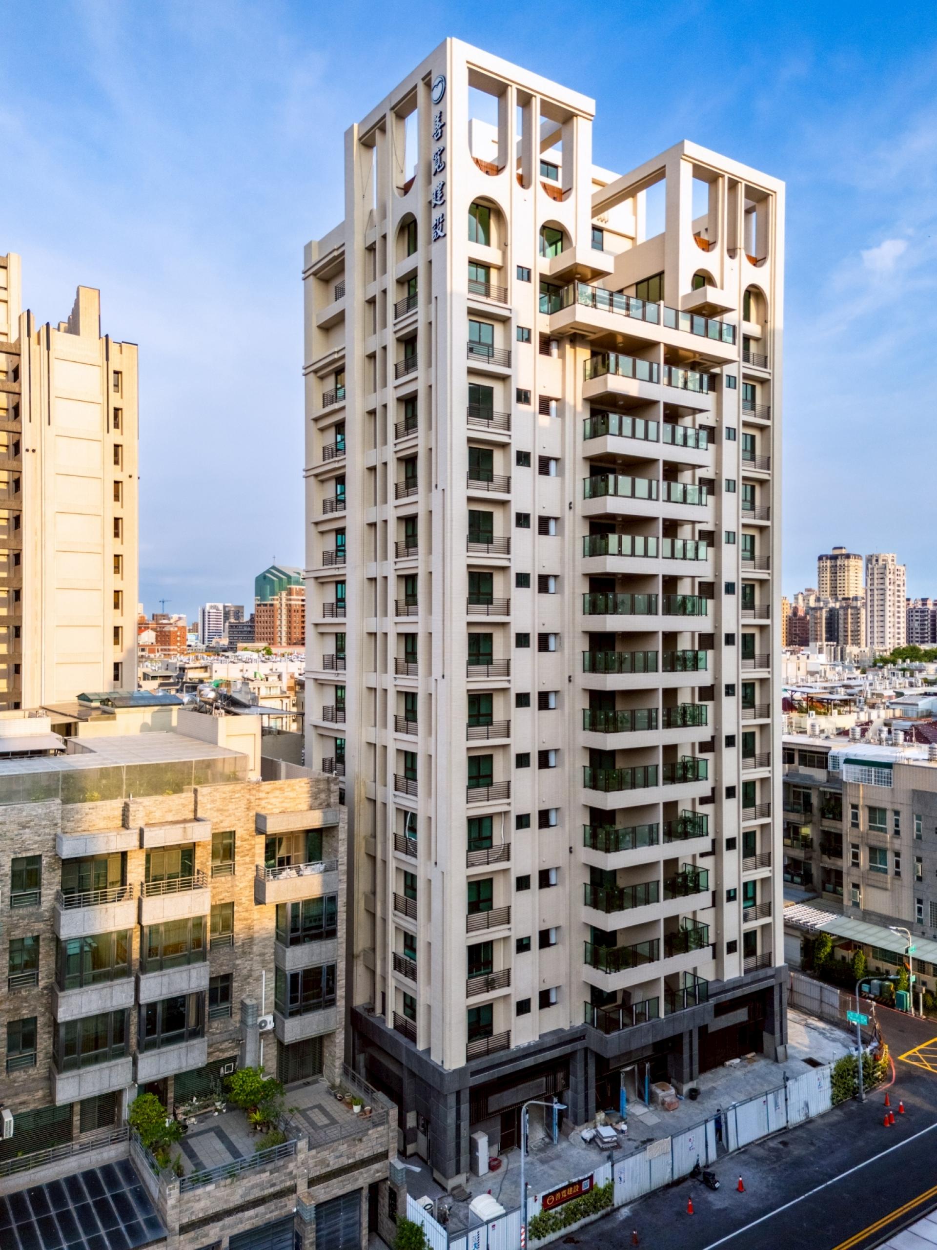 This project presents an innovative proposal for a residential building situated at the bustling intersection of Wenyu Road and Wencai Street in the vibrant Zuoying District of Kaohsiung city in Taiwan. The site is ideally positioned amidst lush urban green corridors, well-established school districts, and a dynamic commercial hub, all of which contribute to its excellent accessibility and rich living amenities. To create a harmonious integration with the surrounding environment, the design employs a sophisticated modular approach that establishes a stable spatial order. Notably, the building's exterior boasts an elegant off-white base color, which serves as a canvas for the striking architectural features above. The top floor is particularly eye-catching; it skillfully combines frames, horizontal beams adorned with grooves, and graceful curved elements, culminating in a transformed landscape balcony that is both distinctive and inviting. Moreover, this thoughtful design not only introduces a compelling visual focal point but also showcases a modern urban facade that brilliantly balances sleekness with warmth. This project is thoughtfully designed with a strong emphasis on traffic flow efficiency and community connectivity.
