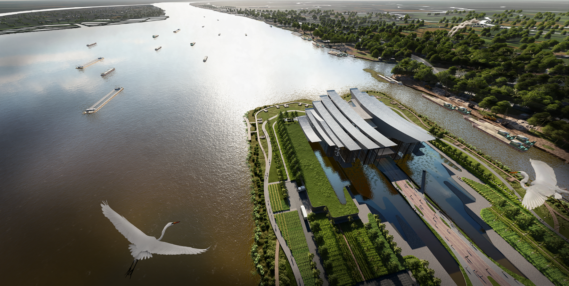 The Mekong Delta Geological Museum was formed from that need. This project is not simply a place to display artifacts, where each layer of geological strata becomes a language, and alluvium becomes a material for people to better understand the place they live. Through the museum, the journey of thousands of years of land formation will be looked back on.