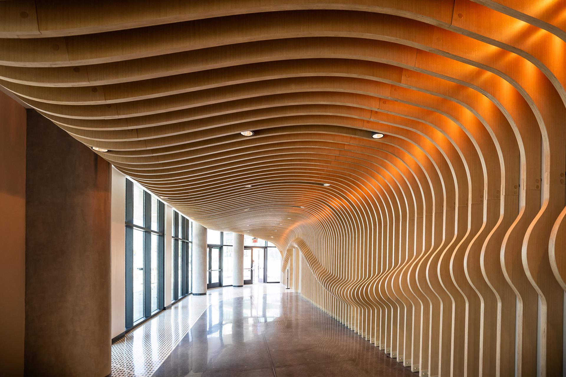 The Dome rises on the Virginia Beach oceanfront like a cresting wave, its fluid architecture echoing the rhythm of the Atlantic. Organic curves, open-air pathways, and sweeping sightlines blur the boundary between structure and shoreline, creating a seamless flow from intimate interiors to the open expanse of the outdoors. Retractable walls invite the salt air inside, transforming the 3,500-capacity hall into a vast 5,000-capacity amphitheater bathed in natural light. Every vantage point offers a unique connection between music, audience, and environment. Current, a VIP sanctuary within the venue, provides refined spaces while framing views of the park and ocean. The Dome fuses organic form with state-of-the-art acoustics, honoring a storied past while shaping a visionary future where sound, space, and the ocean move as one.