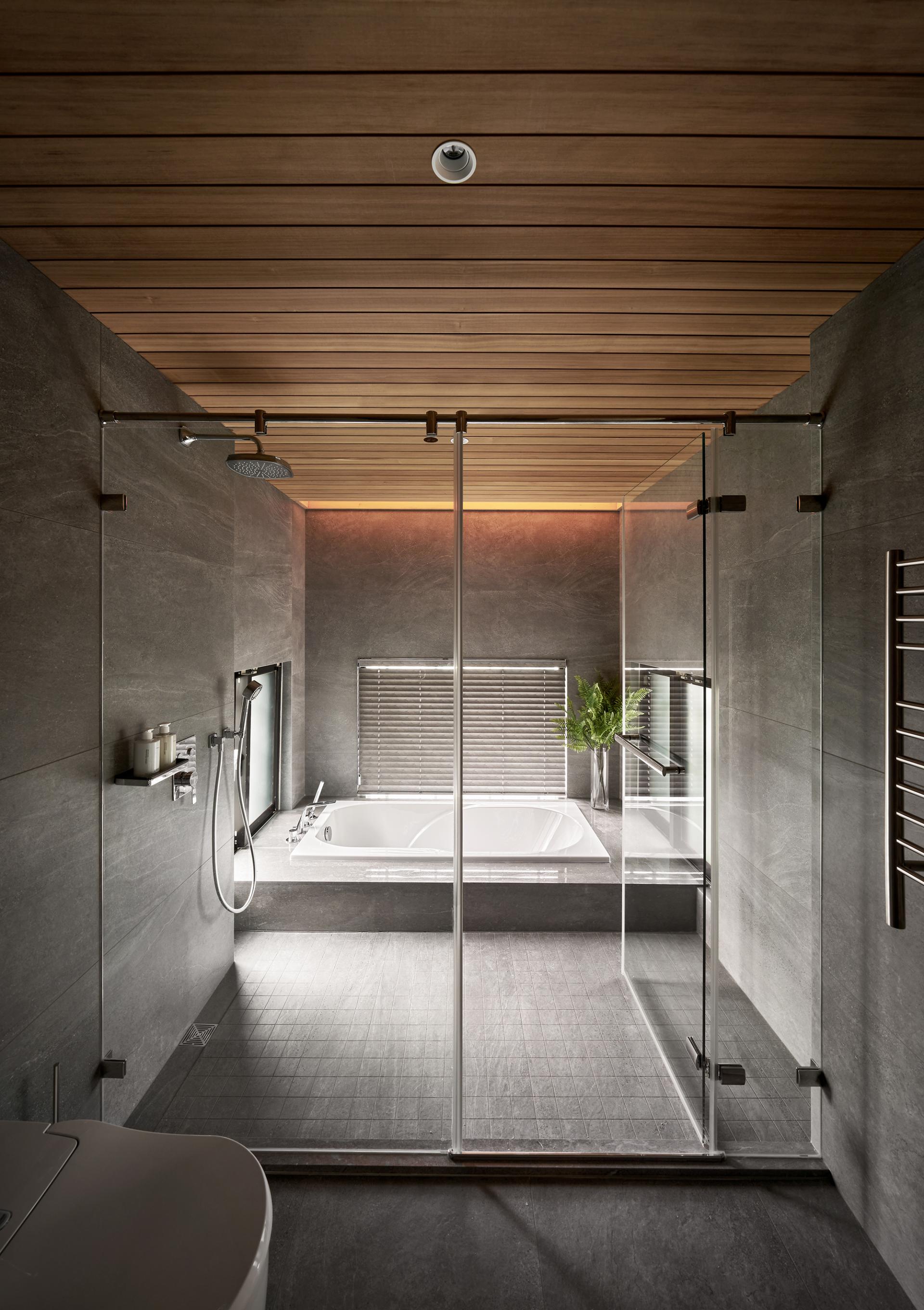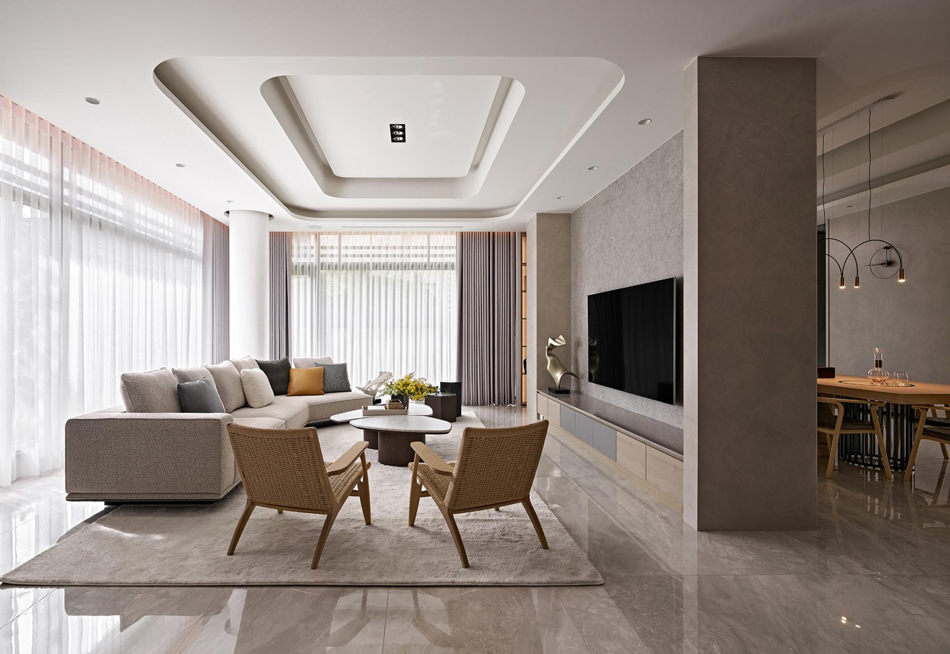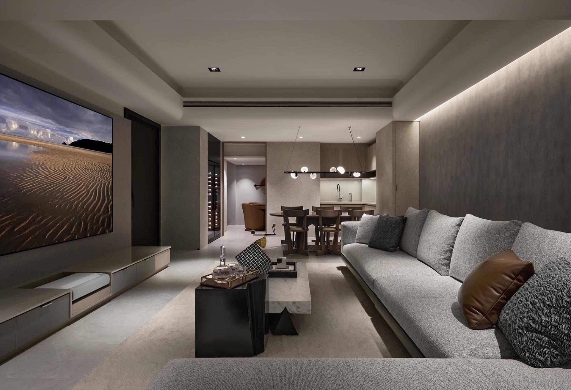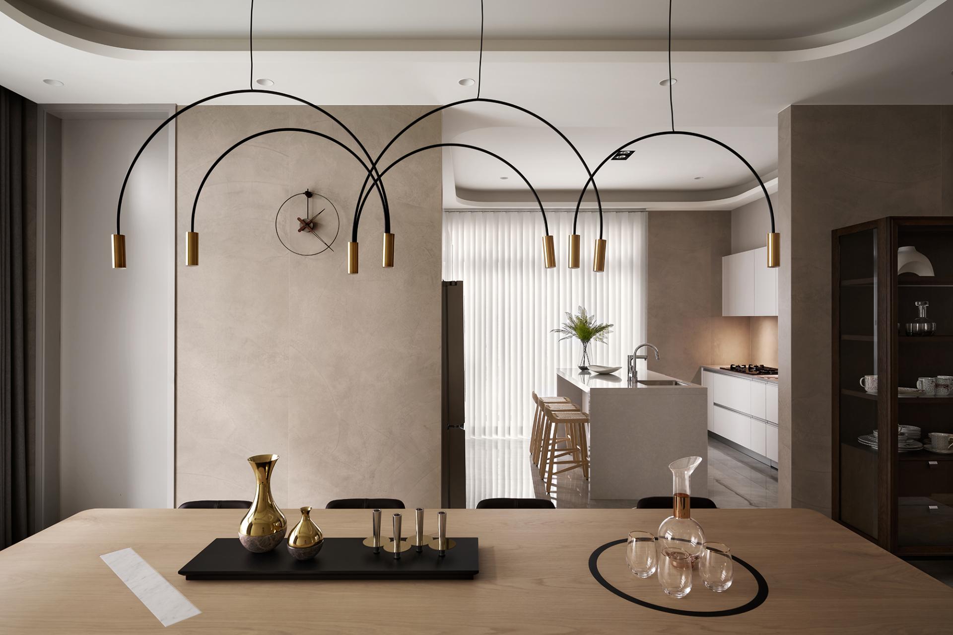 Spatial functionality is achieved through layout reconfiguration, wiring and plumbing upgrades, and climate control planning for seamless operation and easy maintenance. The open-concept dining area and kitchen are designed to feature a long wooden table, enhanced by minimalist pendant lighting. An island is included to improve cooking efficiency, while the overall light color palette fosters a bright and clean atmosphere. The studio is equipped with wooden modular cabinets and a substantial wooden desk. Vertical-grain wood paneling on the walls adds depth and seamlessly combines practicality with a warm aesthetic. The master bedroom incorporates light tones and distinctive wallpaper. A balcony situated adjacent to the floor-to-ceiling windows provides a tranquil retreat. The master bathroom is distinguished by gray-white textured stone walls that create an elegant and layered visual effect. The boy's bathroom utilizes solid gray stone in conjunction with warm wooden ceilings, which evoke the calming ambiance of a traditional Japanese bathhouse. Both bathrooms feature wet/dry separation to significantly enhance usability. The media room functions as a multifunctional entertainment area, serving as both a home theater and a board game space to facilitate family bonding. It is also equipped with a dining table and a wine cabinet to accommodate light meals and the appreciation of wine. The dressing room showcases wooden elements, featuring a vanity and a long sofa bench. Open-sided wardrobes on both sides allow natural light to illuminate the clothing, offering convenient storage while maintaining visual openness. Additionally, the basement serves as a versatile entertainment area. Each space thoughtfully integrates practical habits with comfort, striking a balance between functionality and aesthetics to foster an ideal lifestyle.