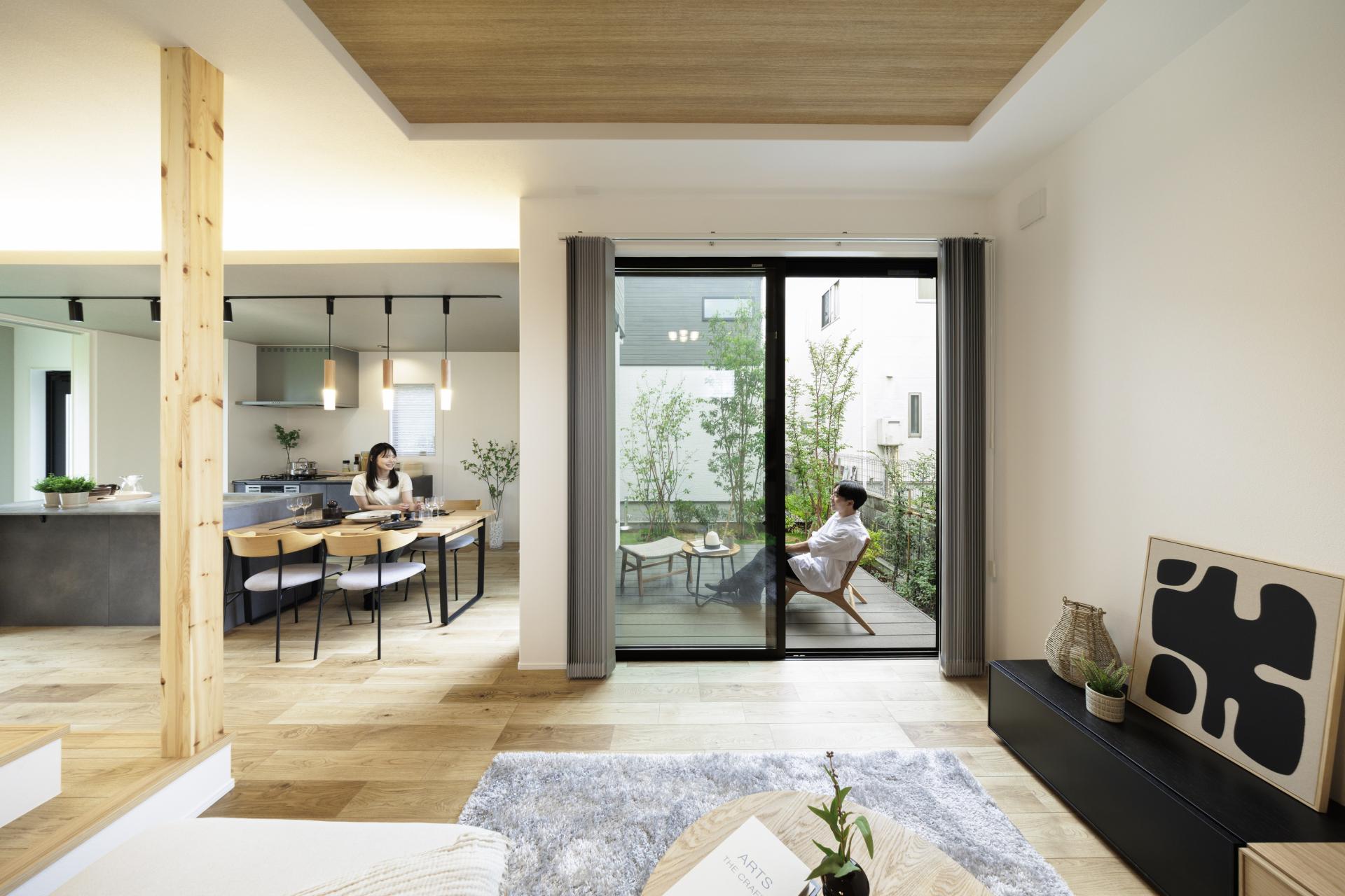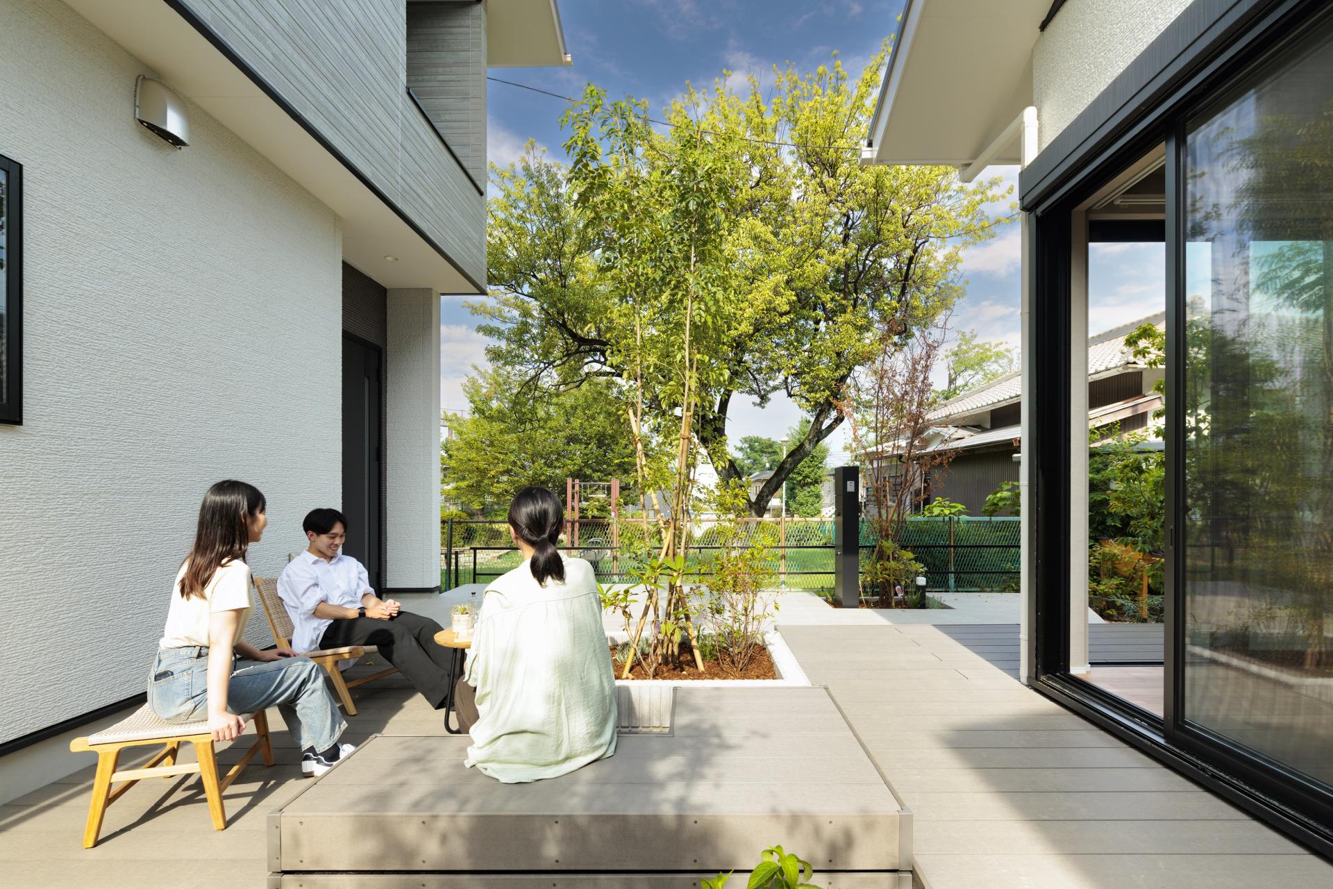 Using the legally required setbacks and the flag lot's long pathway, we designed a shared "passageway garden" for residents. This garden not only borrows the magnificent scenery of the neighboring park, but also naturally encourages residents to connect with one another.