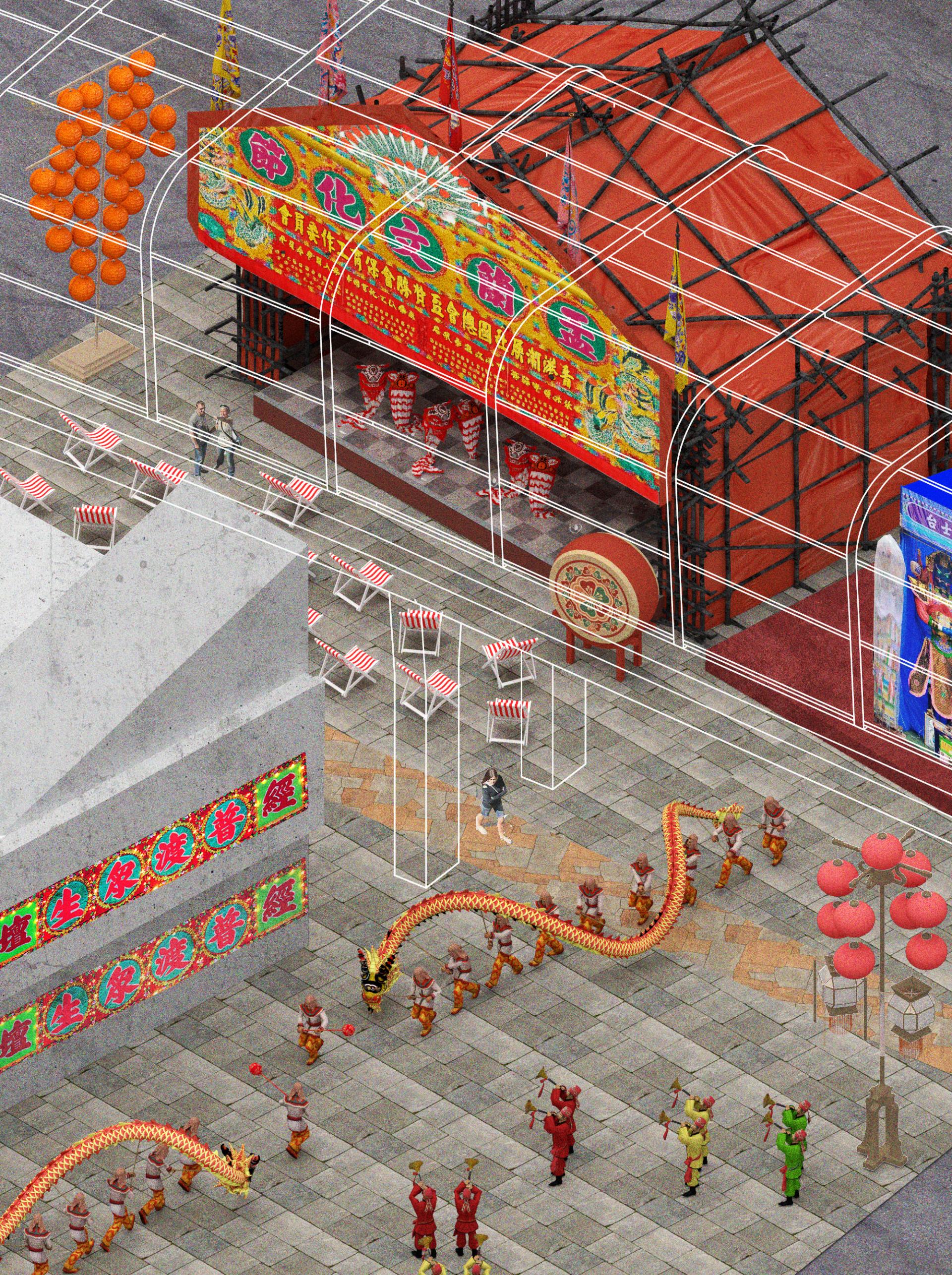 The Heritage Park project reimagines a key urban site in Yau Ma Tei, Hong Kong, as a cultural and material testing ground where history, community, and innovation converge. Rooted in the area’s distinctive urban fabric—marked by its maritime trade legacy, mixed-use neighborhoods, and vibrant street culture—the design seeks to transform the site into a dynamic hub for collective memory, public activity, and intergenerational exchange.
