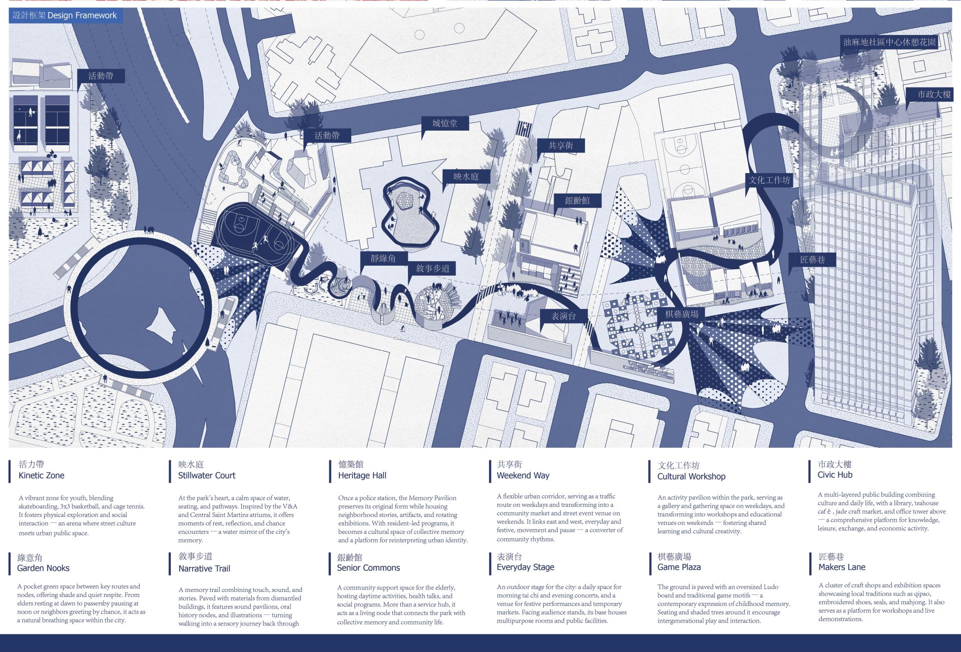 Material culture anchors the proposal. The park surfaces and structures integrate vernacular patterns, tiled floors, and modular assemblies that reference local craftsmanship. These design elements support a “cultural material plate” concept, where architectural details double as catalysts for storytelling and communal identity. Overlay strategies further coordinate circulation, density, and accessibility, ensuring the site supports both spontaneous play and large-scale gatherings.