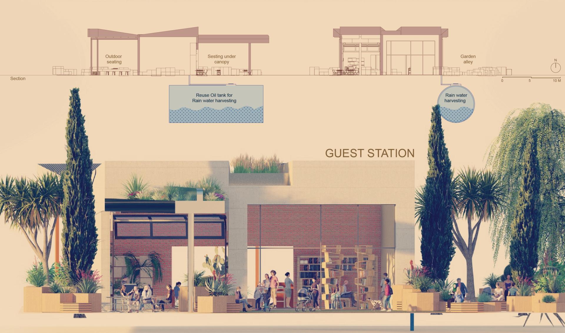 From “Gas Station” to a “Guest Station” The station house, formerly transactional and utilitarian, evolves into a flexible “city living room”, a welcoming space for workshops, conversations, and the simple joy of being together.