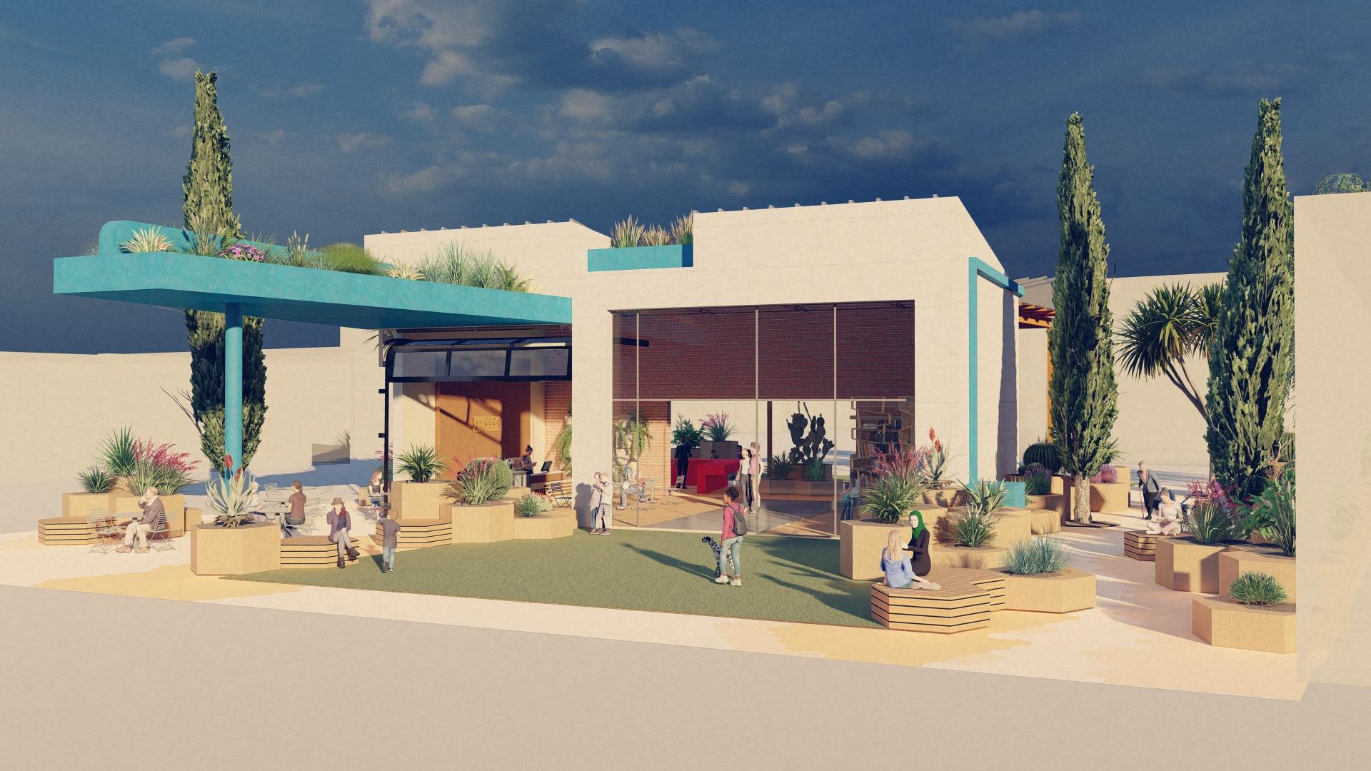 Landscaping softens the site’s hard edges, replacing asphalt with gardens, trees, and seating that invite people to pause, connect, and linger. Traces of the original structure are preserved, honoring the memory of the place while signaling its renewal. Through this transformation, a once forgotten relic becomes a civic anchor: a space that embodies resilience, reinvention, and the promise of community