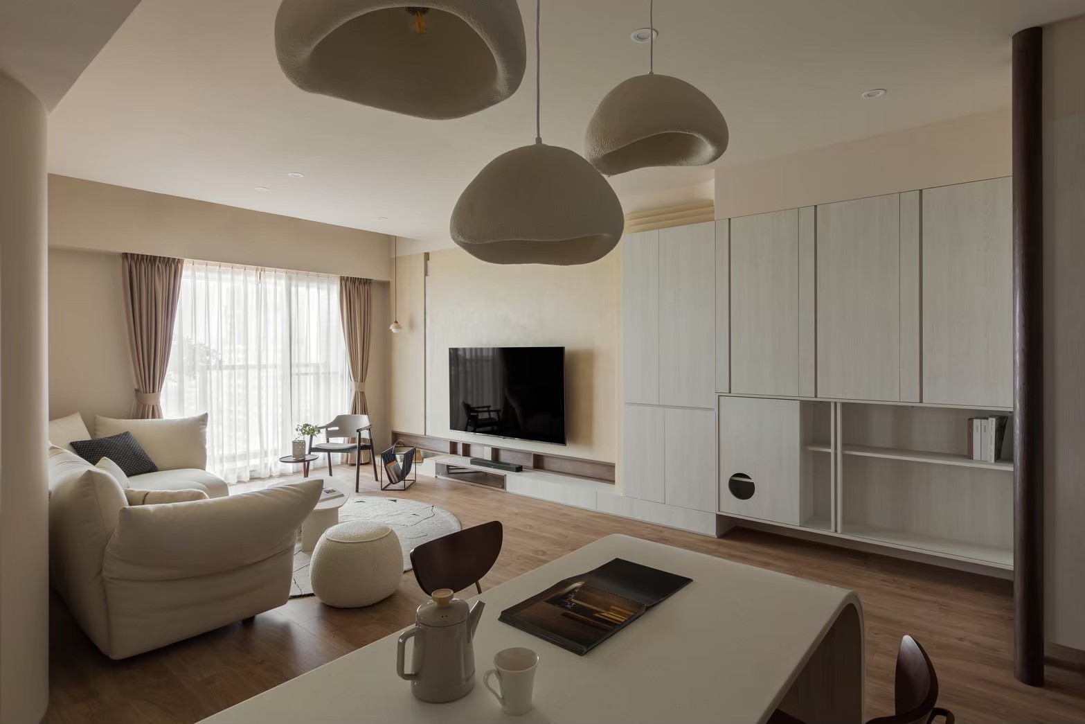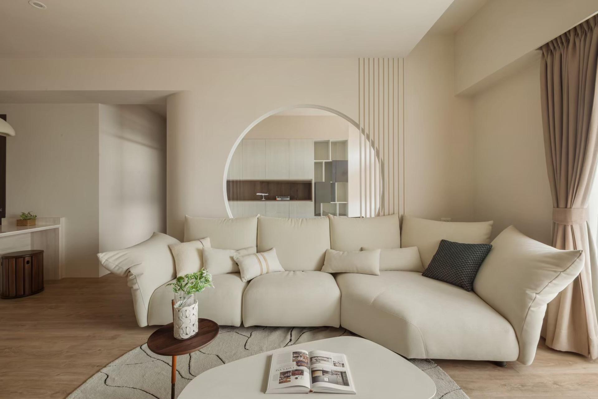 The generous space frames a comfortable “dust-catching” zone,