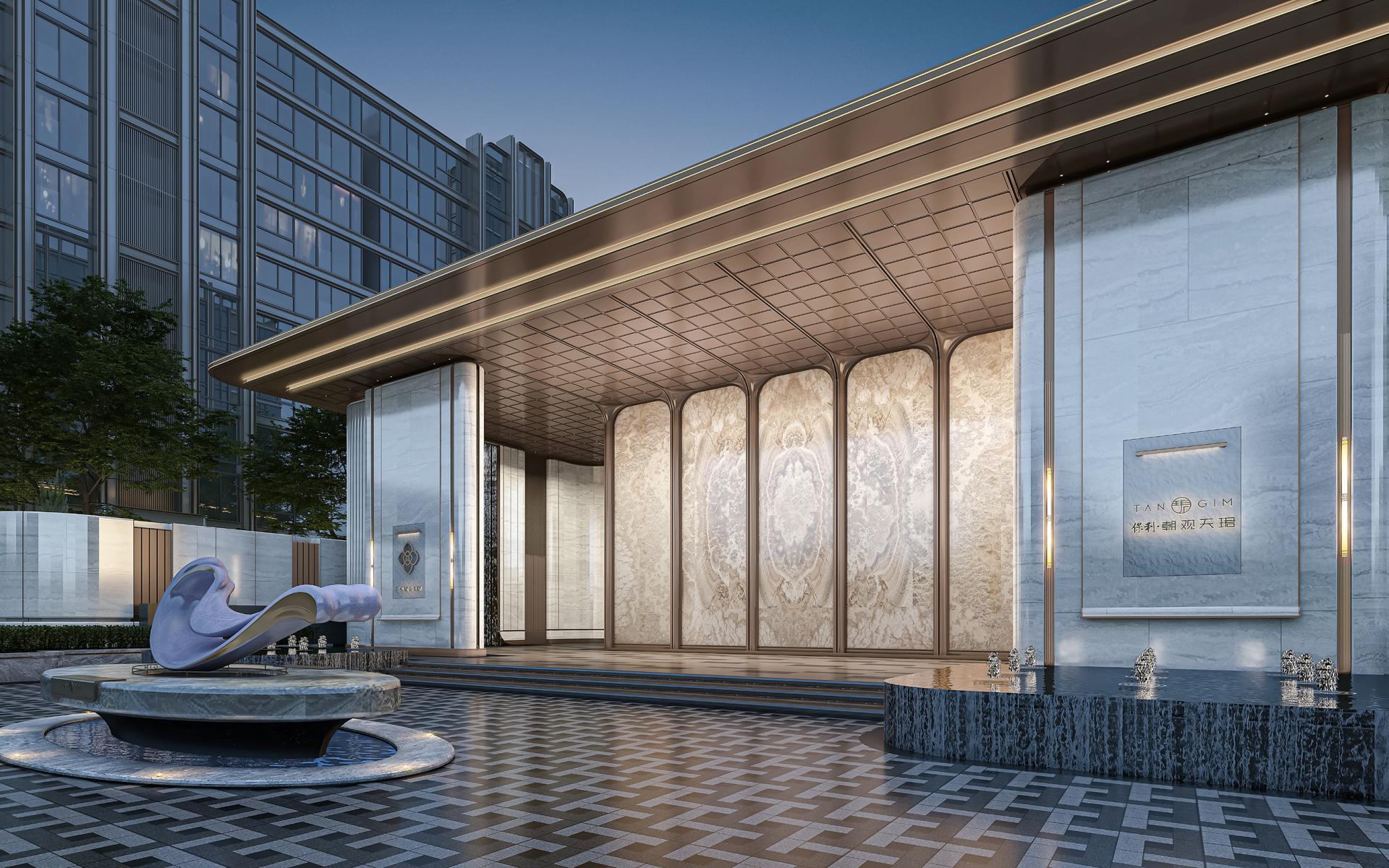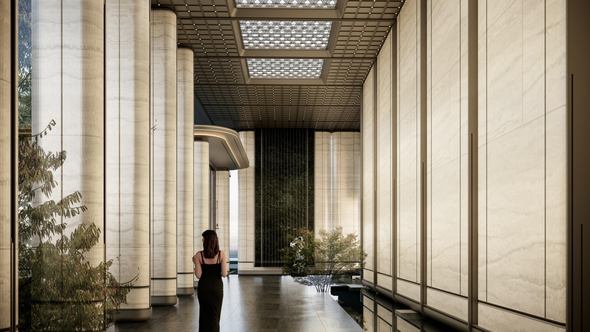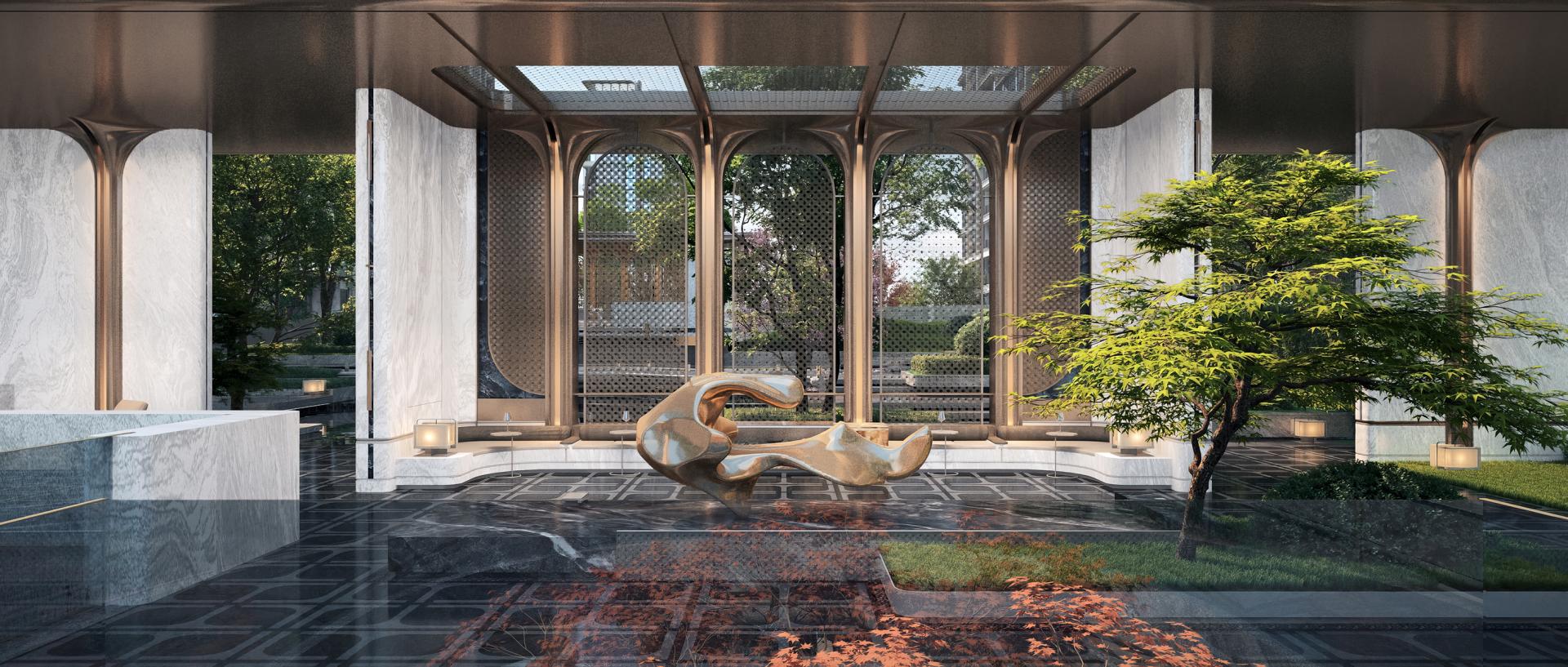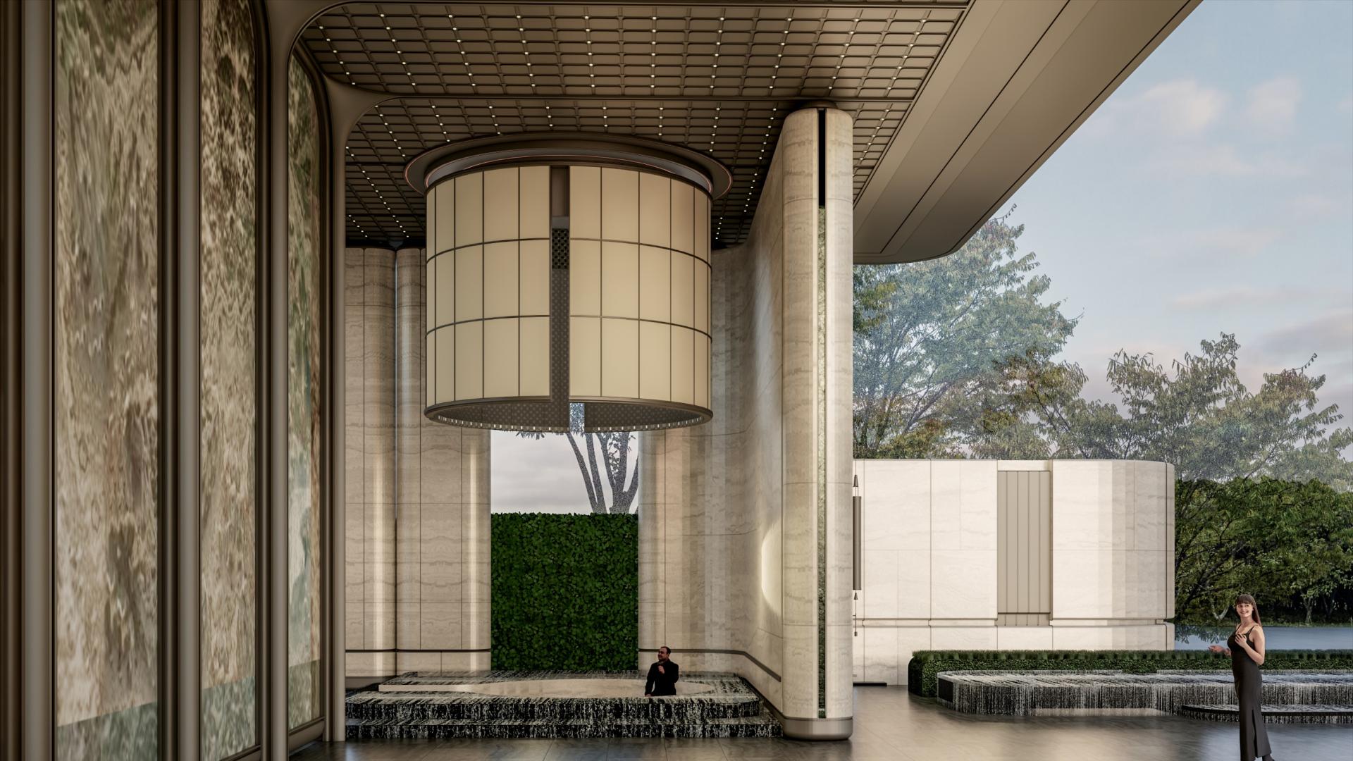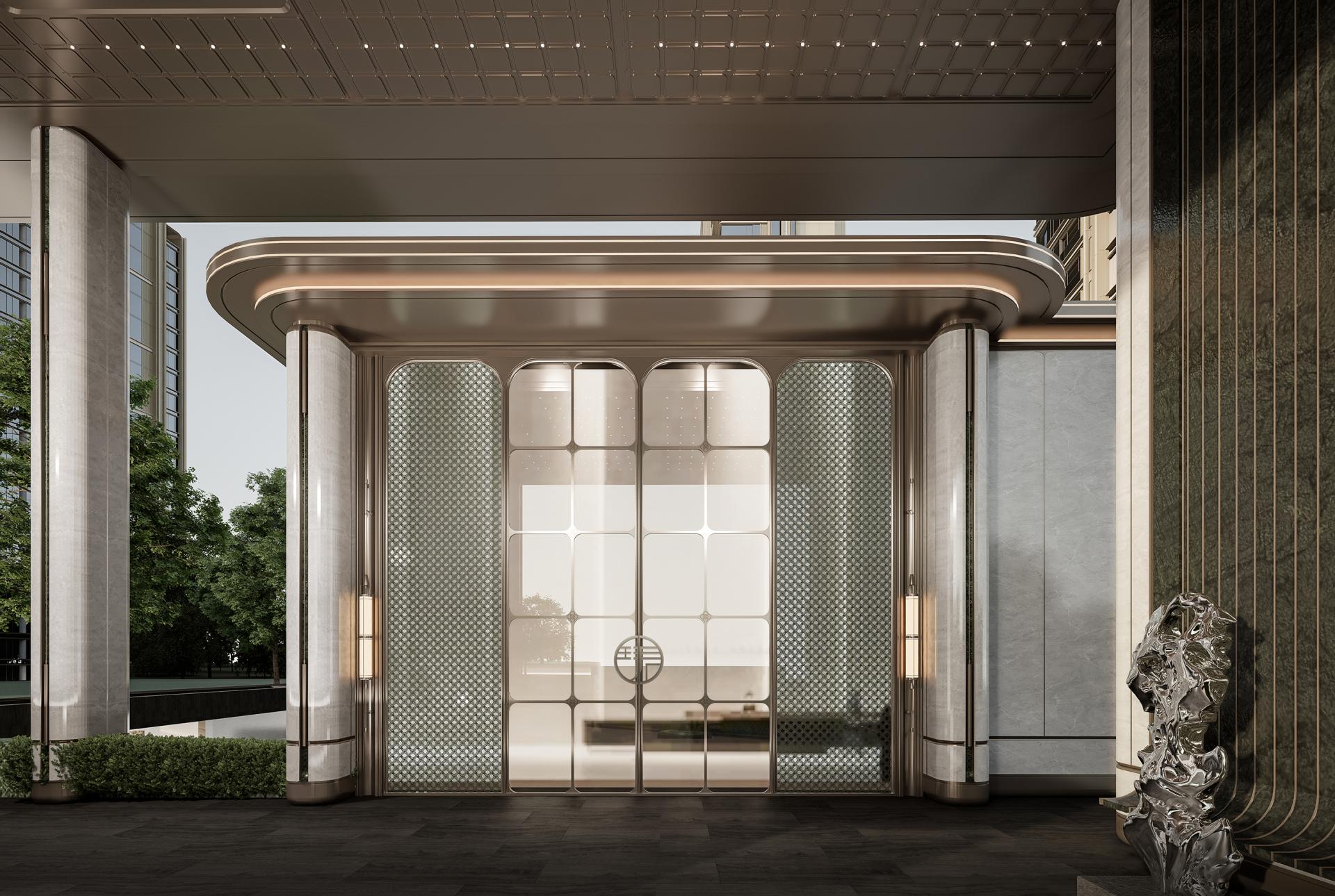 Beginning embodies the Chinese inherent sentiment for "high walls and spacious courtyards": The drop-off courtyard enclosed by a 4.5-meter-high wall recreates the visual sense of the high walls and large courtyards of ancient royal mansions, isolating the hustle and bustle of the outside city. "The etiquette of a mansion begins with the lintel" – the gate of Chaoguan Tianjun is our contemporary interpretation of Eastern etiquette. This 34-meter-wide and 9-meter-high Eastern ceremonial gate is modeled after the triple eaves of the Forbidden City, integrating modern materials with intangible cultural heritage craftsmanship, vividly demonstrating the majesty of Eastern family etiquette.
