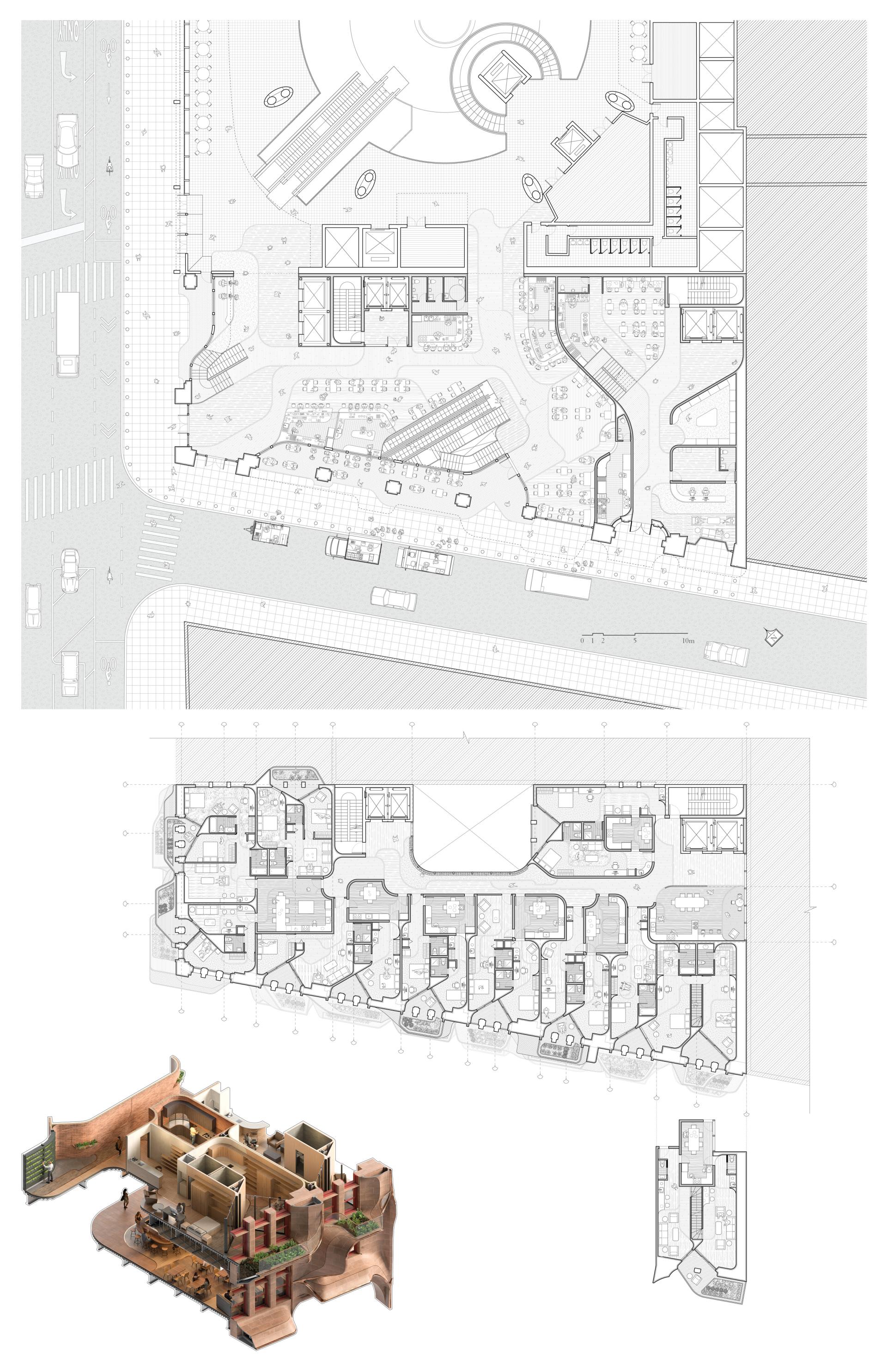 Through its layering of balcony gardens, shared kitchens, community dining halls, food courts, and rooftop spaces, the Dissolving Corbin Building dissolves barriers between private and public, old and new. It proposes a model of mixed-use development rooted in history yet oriented toward a sustainable, collective urban future.