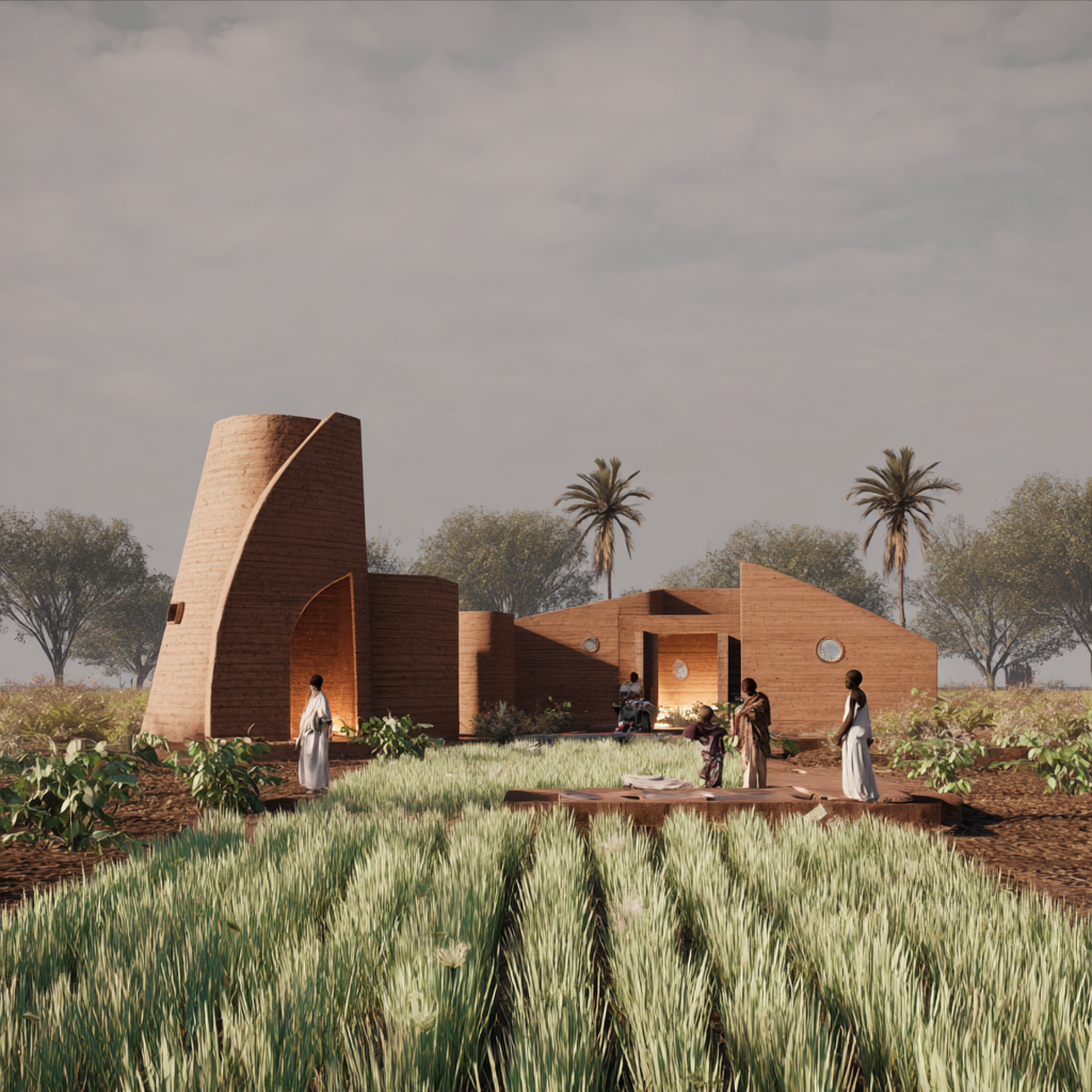 Technically, the project emphasizes the integration of local resources and passive environmental responsiveness. Building orientation and strategically arranged openings maximize natural ventilation, while deep overhangs control solar radiation and heat gain, reducing reliance on mechanical cooling systems. Rammed earth and other locally available ecological resources are prioritized for their low embodied energy, minimal transport costs, and reduced carbon emissions. Beyond their environmental benefits, these materials establish a replicable, low-cost construction model that reinforces both sustainability and community self-sufficiency.