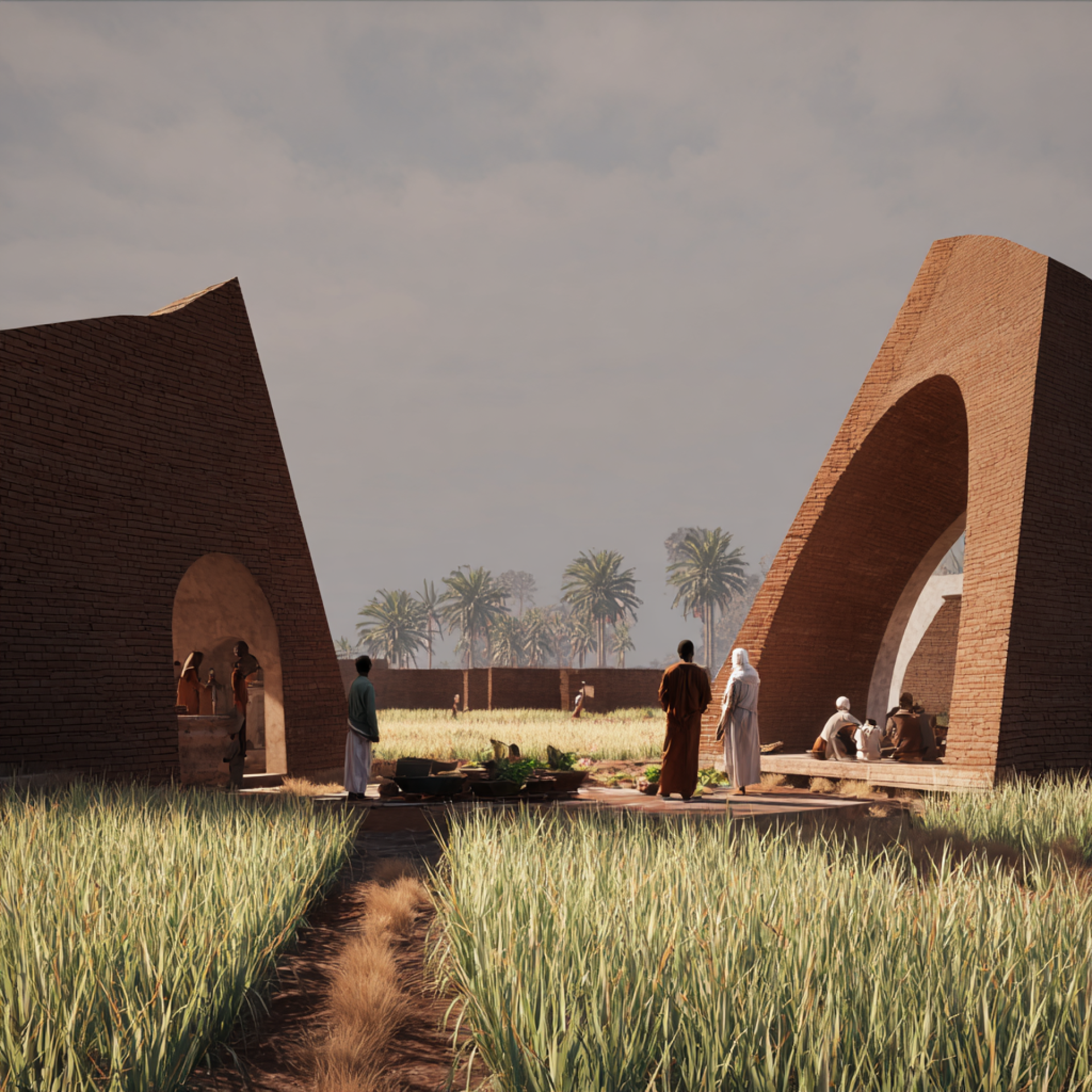 The project challenges the male-dominated hierarchy of traditional mosque typologies by overlaying an orthogonal grid aligned to Mecca upon the marginalized ‘forgotten spaces.’ Positioned next to farmland, the design supports the religious and communal life of female laborers by providing prayer halls, classrooms, and gathering areas. This female-centered spatial network functions as a new type of ‘agora,’ where knowledge-sharing, skills training, and collective empowerment take place. Drawing on the framework of critical regionalism, the design aims to reconfigure gendered spatial dynamics and offer women a tangible platform to renegotiate their socio-religious roles.