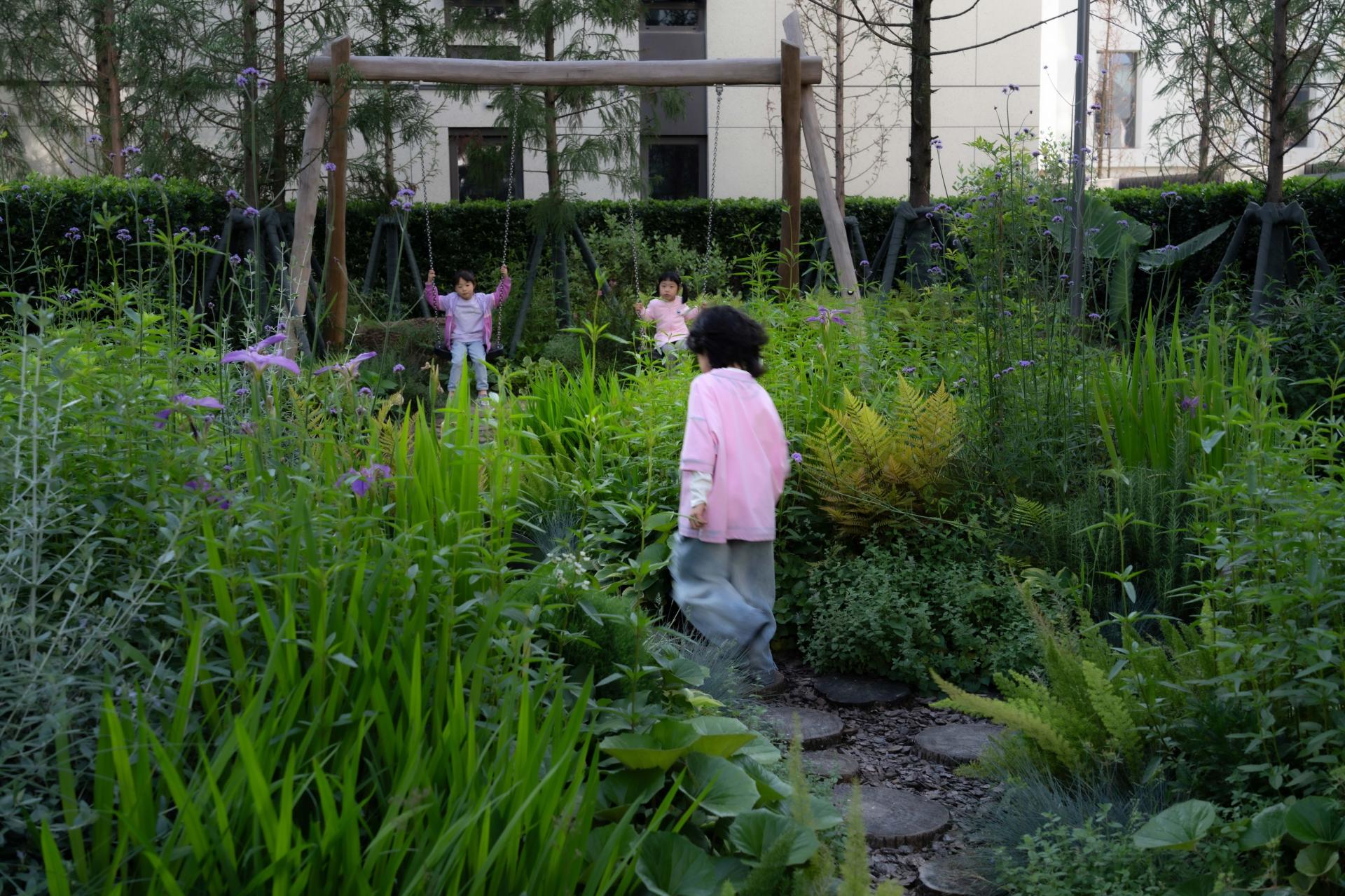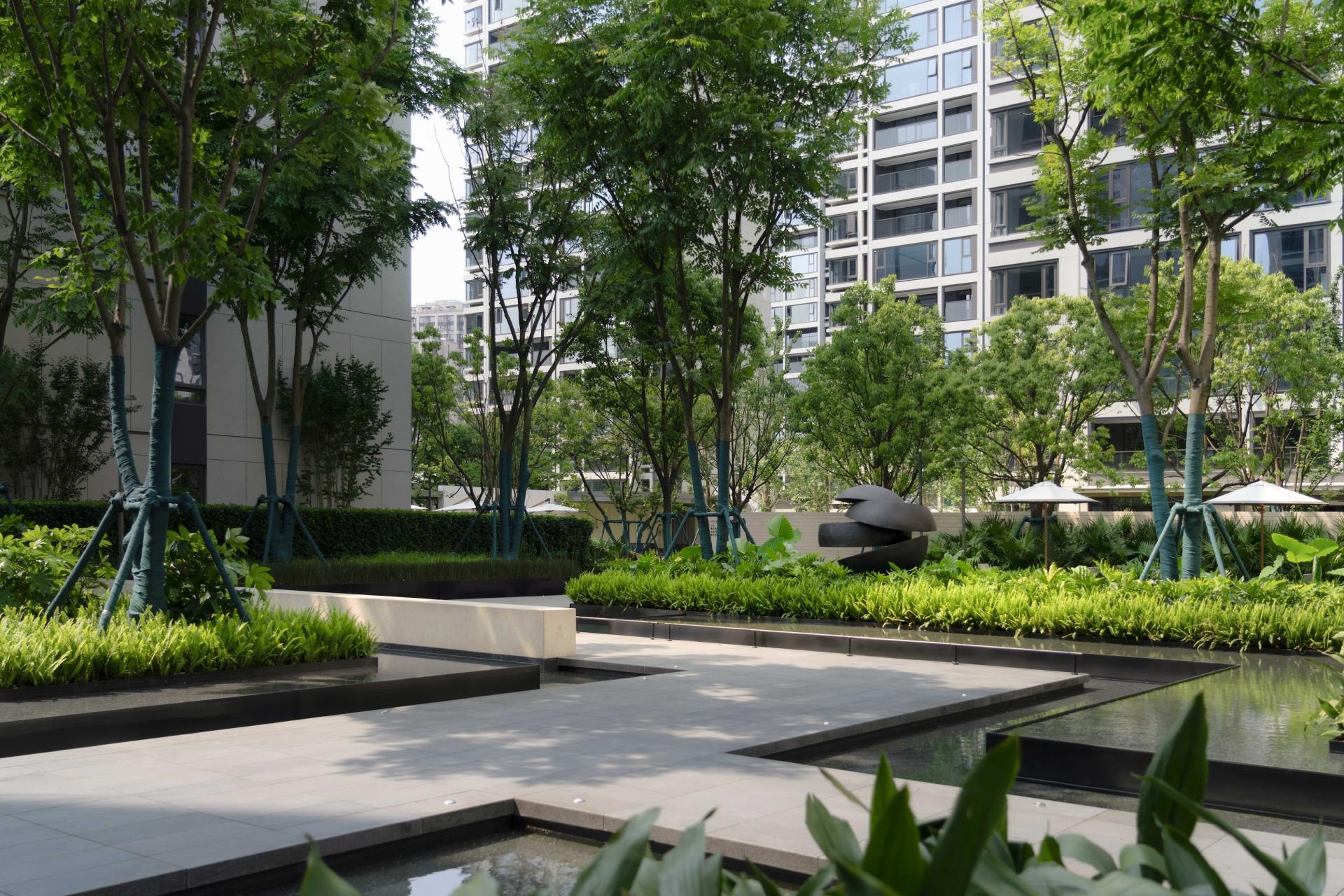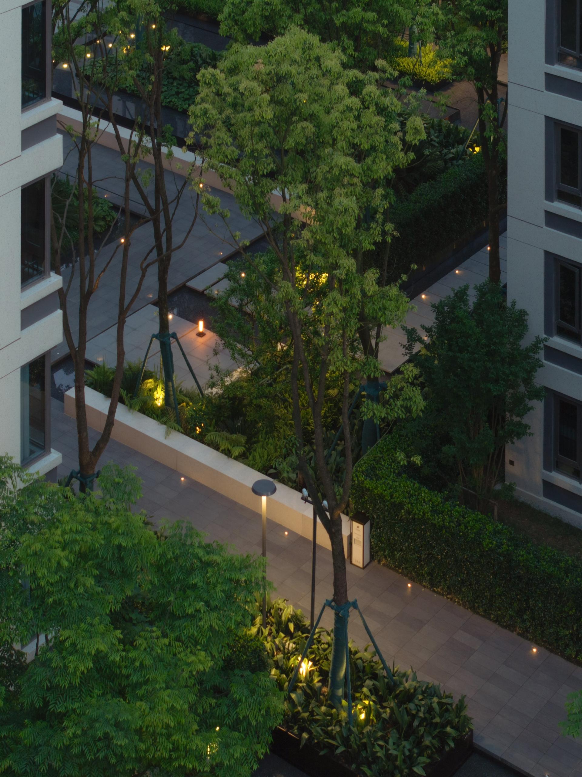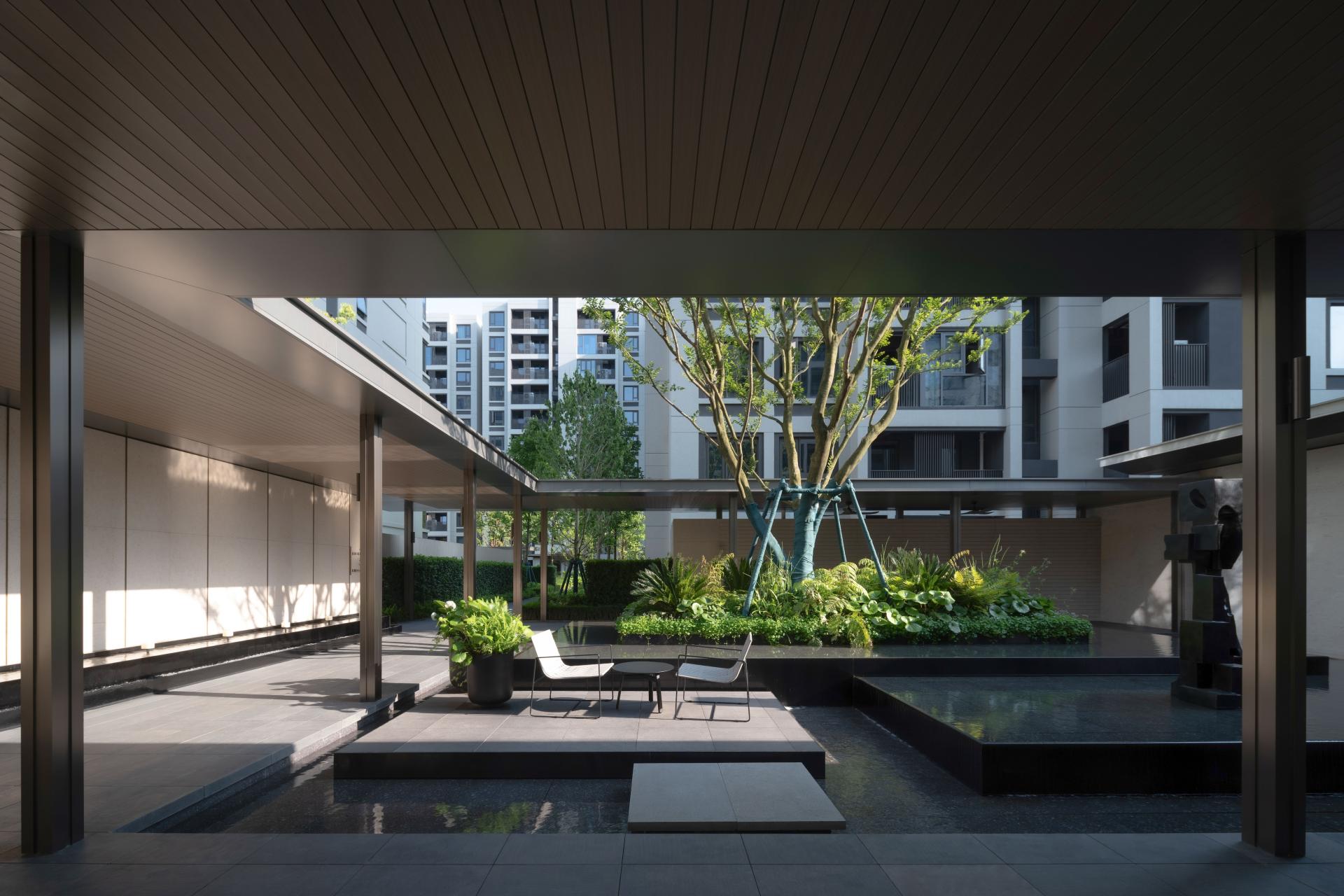 Ningbo Mushi, the inaugural project of Vanke's "Shi" series, embodies a vision of crafting serene, artistic communities immersed in nature.The design pursues a dual experience: "secluded privacy" and "a ritualistic journey home." An understated entrance, screened by layered greenery, replaces grandiose gateways, ensuring privacy and a tranquil arrival.To counter the cramped scales of large communities, we introduced the "Water among the Woods" concept. A continuous water system forms the spatial backbone, organically linking building clusters and functional areas into a cohesive landscape.Within the aquatic realm, winding paths meander beneath metasequoias and willows. Their vertical trunks and filtering canopies soften the surrounding high-rises, drawing eyes upward to the foliage and downward to the reflective water, fully immersing residents in nature.The "Breezy Lawn" is a central open space seamlessly connected to play areas and social platforms. Its name comes from the building layout that guides wind across it. Linked to a secondary courtyard by a landscaped corridor, it forms a continuous landscape sequence.Corridors are redesigned as multi-functional spaces, not just passages. Their gently curving paths, lined with wooden seats and pergolas, encourage pause and interaction.This project transforms functional landscapes into deeply human-centered environments, redefining community living through a balance of seclusion and connectivity.
