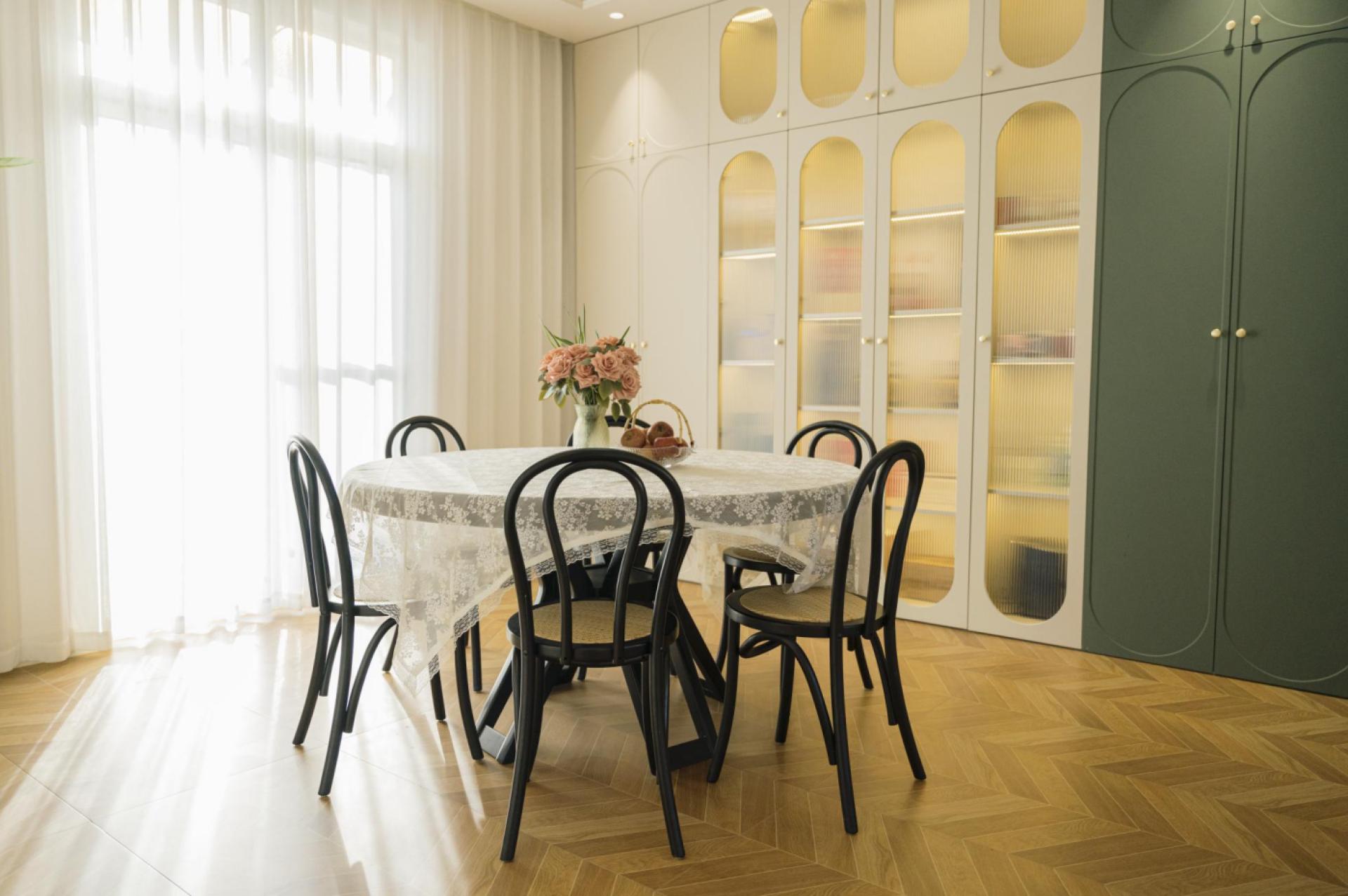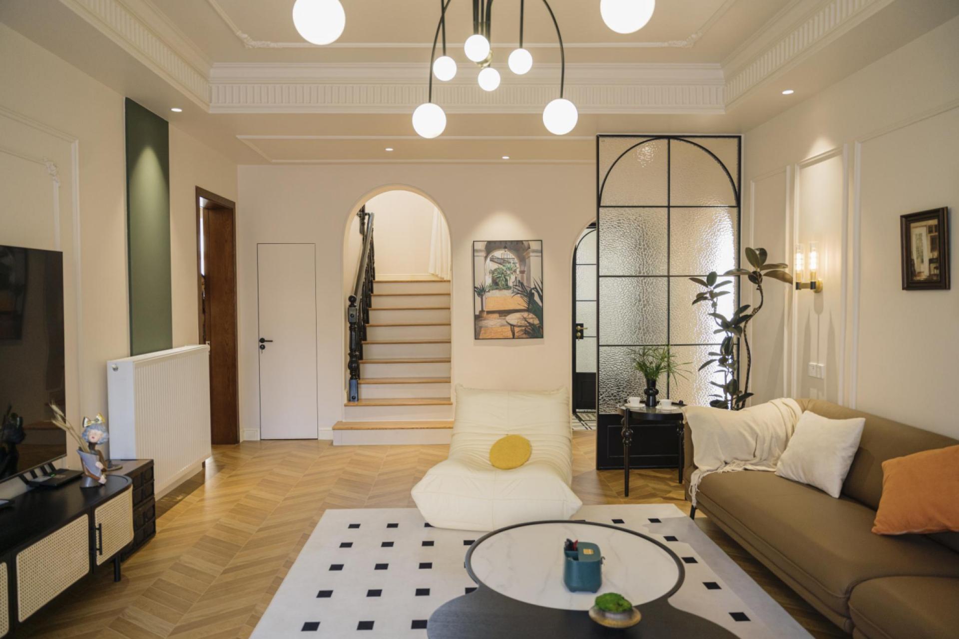In terms of material, the designer chose eggshell finish artistic paint. Combined with the enlarged windows, it incorporates the outdoor greenery into the interior view for a natural integration of indoor and outdoor spaces. After the renovation, not only have issues such as poor indoor lighting, unclear traffic flow, small rooms, and low door heights been resolved, but the entryway traffic flow and the traffic flow of the master bedroom on the second floor have also been replanned, making the entire space smoother and more rational.