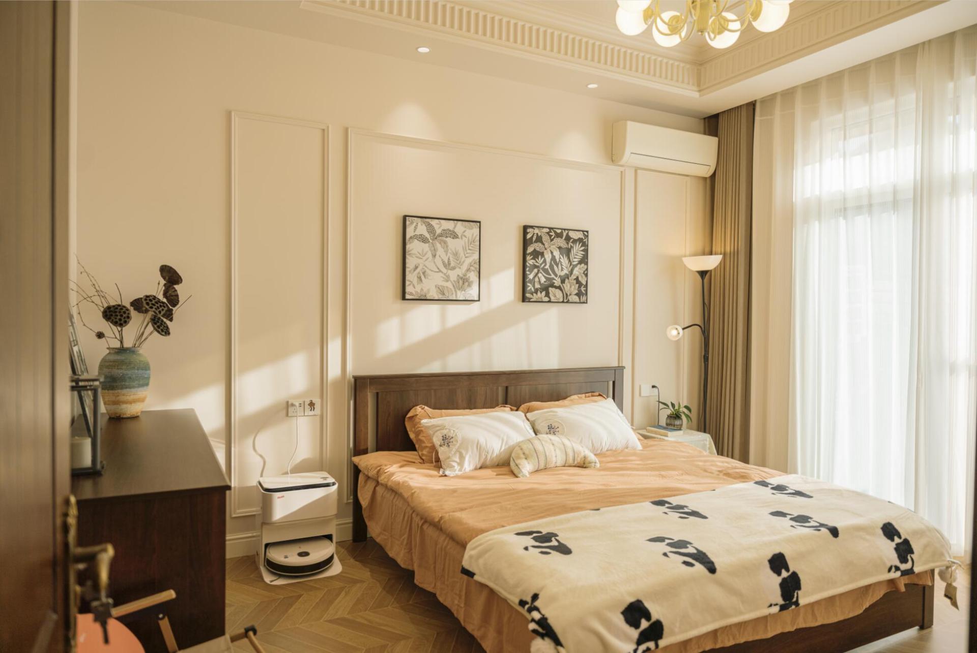 To create an ideal residence that aligns with the homeowners’ retirement lifestyle, the designer drew inspiration from French country villas and carried out a comprehensive renovation. Targeting the original flaws, a series of effective measures were implemented: the position of the main entrance was adjusted, and the existing structural columns were relocated; meanwhile, the windows were enlarged with some of them were transformed into floor-to-ceiling windows based on the angle of sunlight, introducing ample sunlight inside and creating a warm and elegant atmosphere. Additionally, the location of the bathroom was redesigned; a new kitchen was built, with its ceiling serving as a balcony for the rooms on the second floor; two adjacent small rooms were merged, and a new bathroom, equipped with a double-basin sink, an independent bathtub, and a separate shower cubicle, and a walk-in closet.